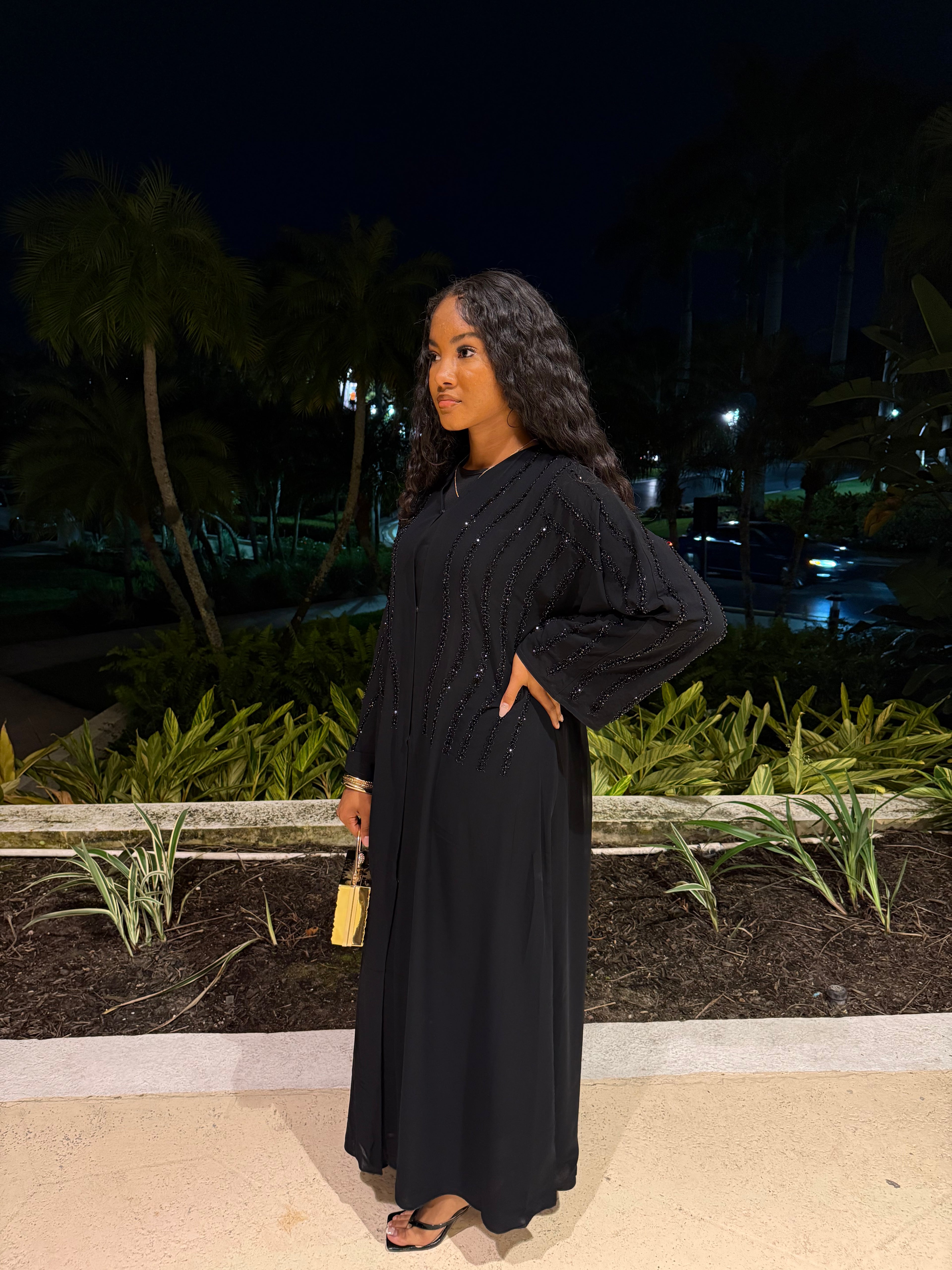 Amira Black on Black Abaya Set