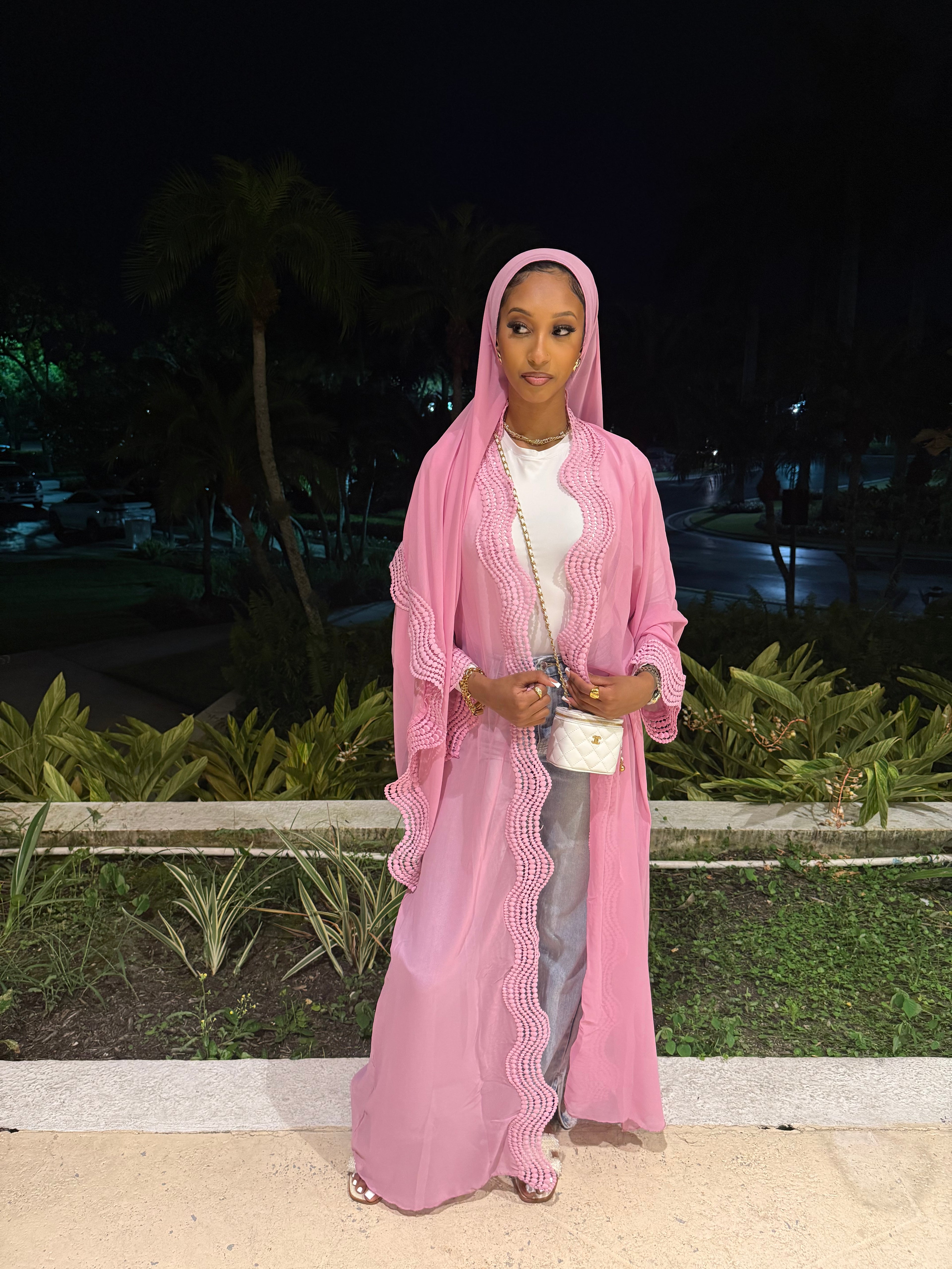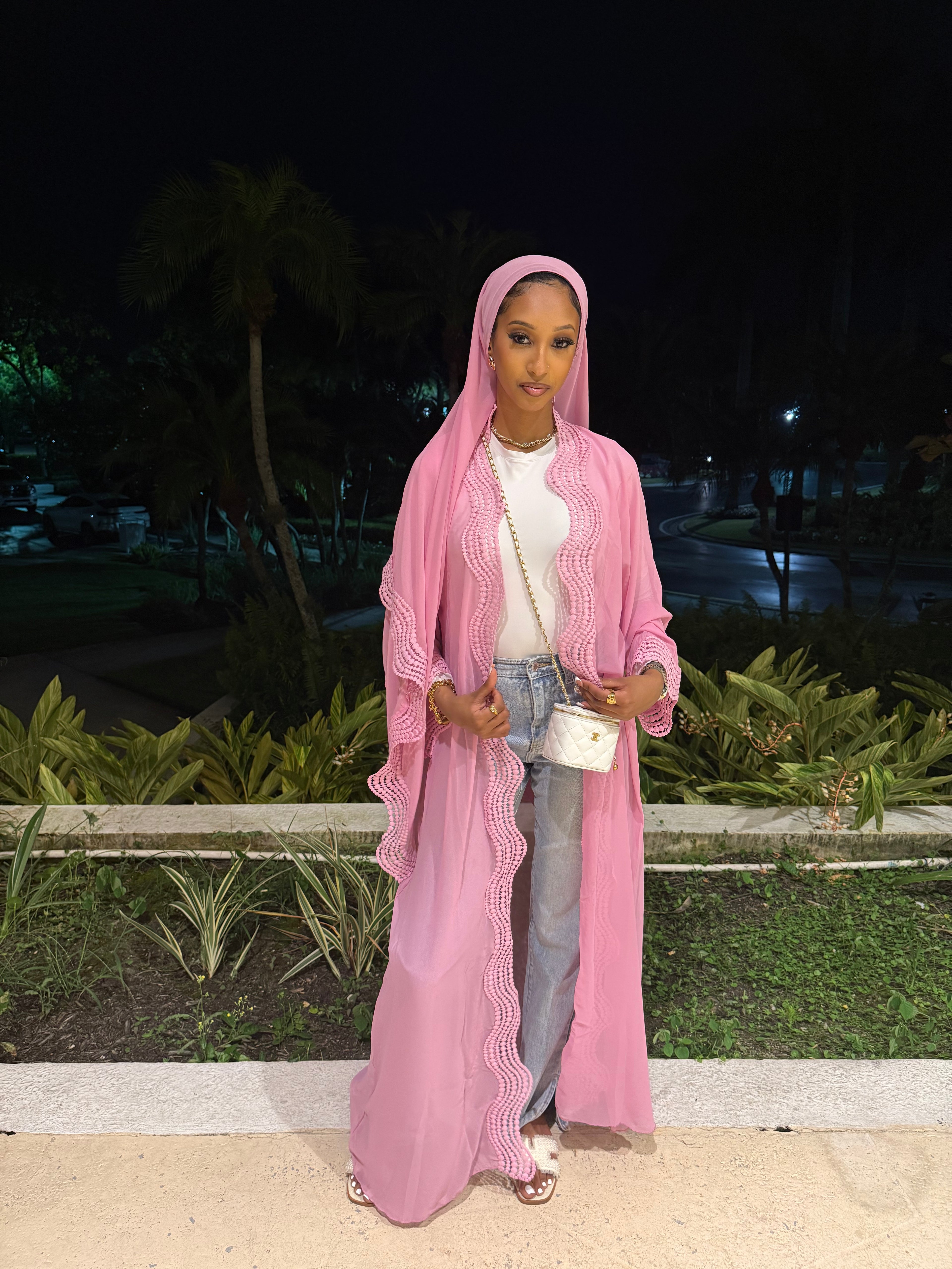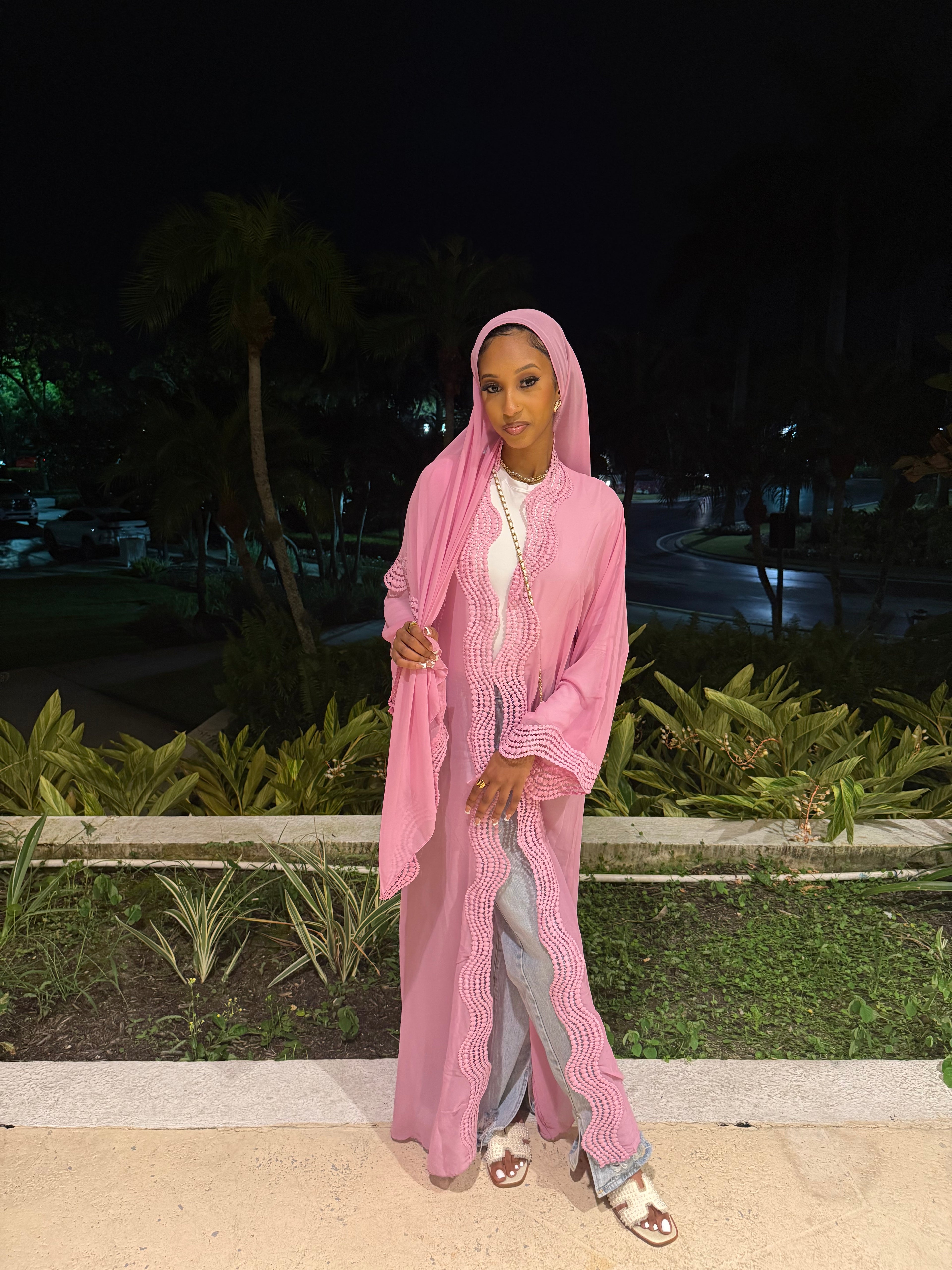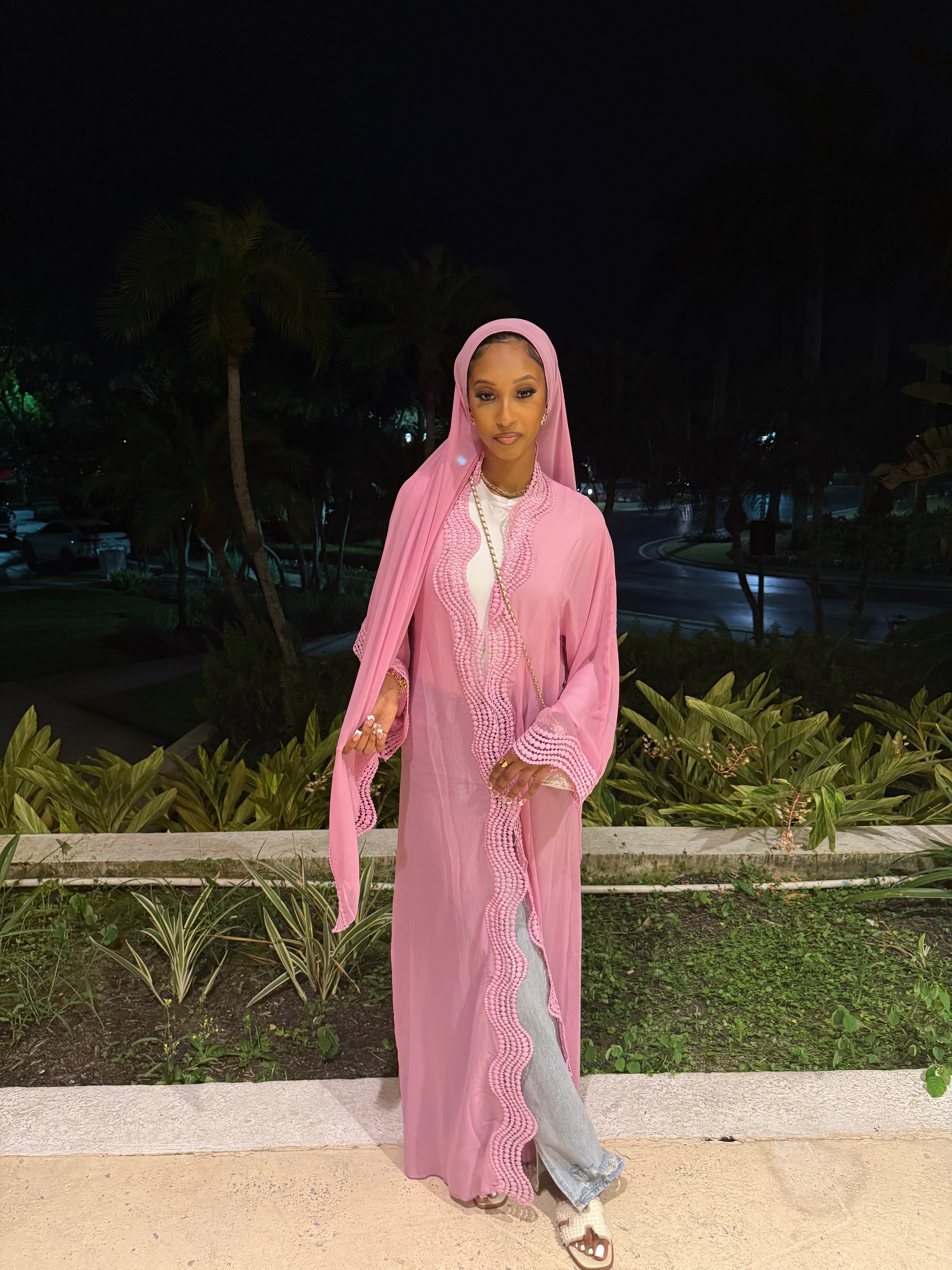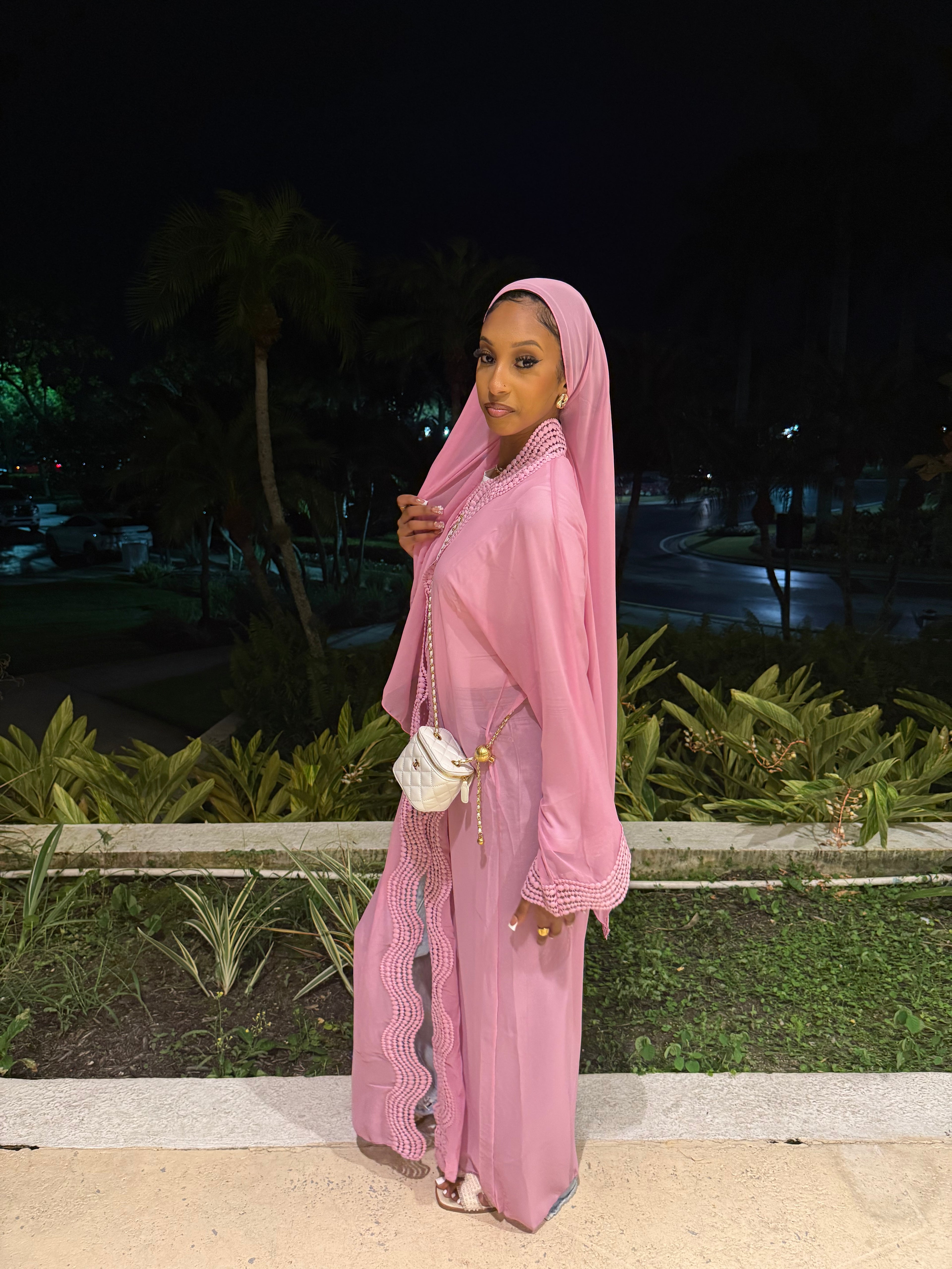 MATERIAL IS SEE THROUGH. Elevate your modest wardrobe with timeless elegance in the Amara Abaya Set. Designed with delicate, floral-inspired embroidery along the front, Amara embodies grace and femininity in every stitch. Its flowing silhouette, lightweight fabric, and coordinated three-piece design make it a refined choice for any occasion — from everyday wear to special gatherings.