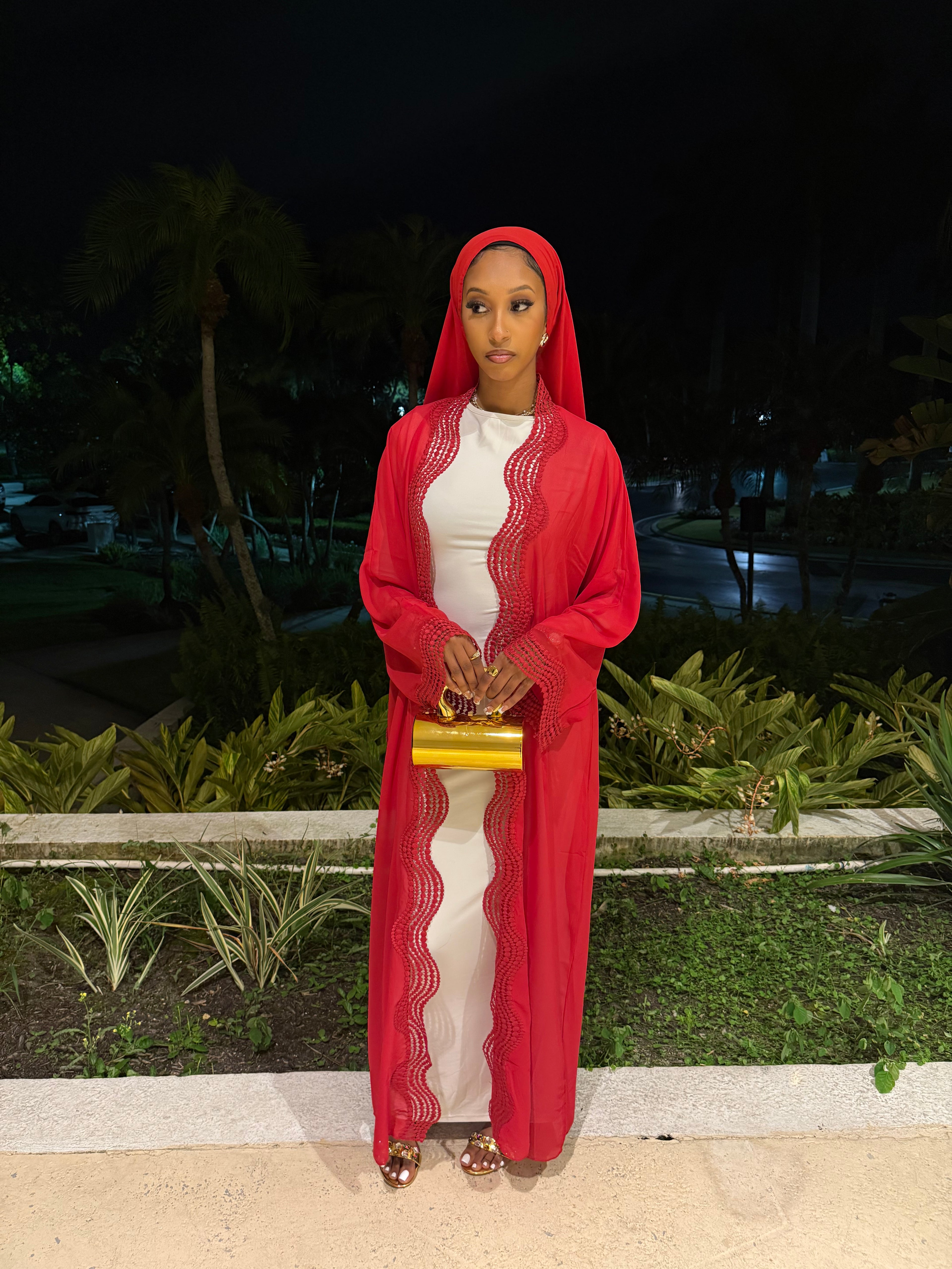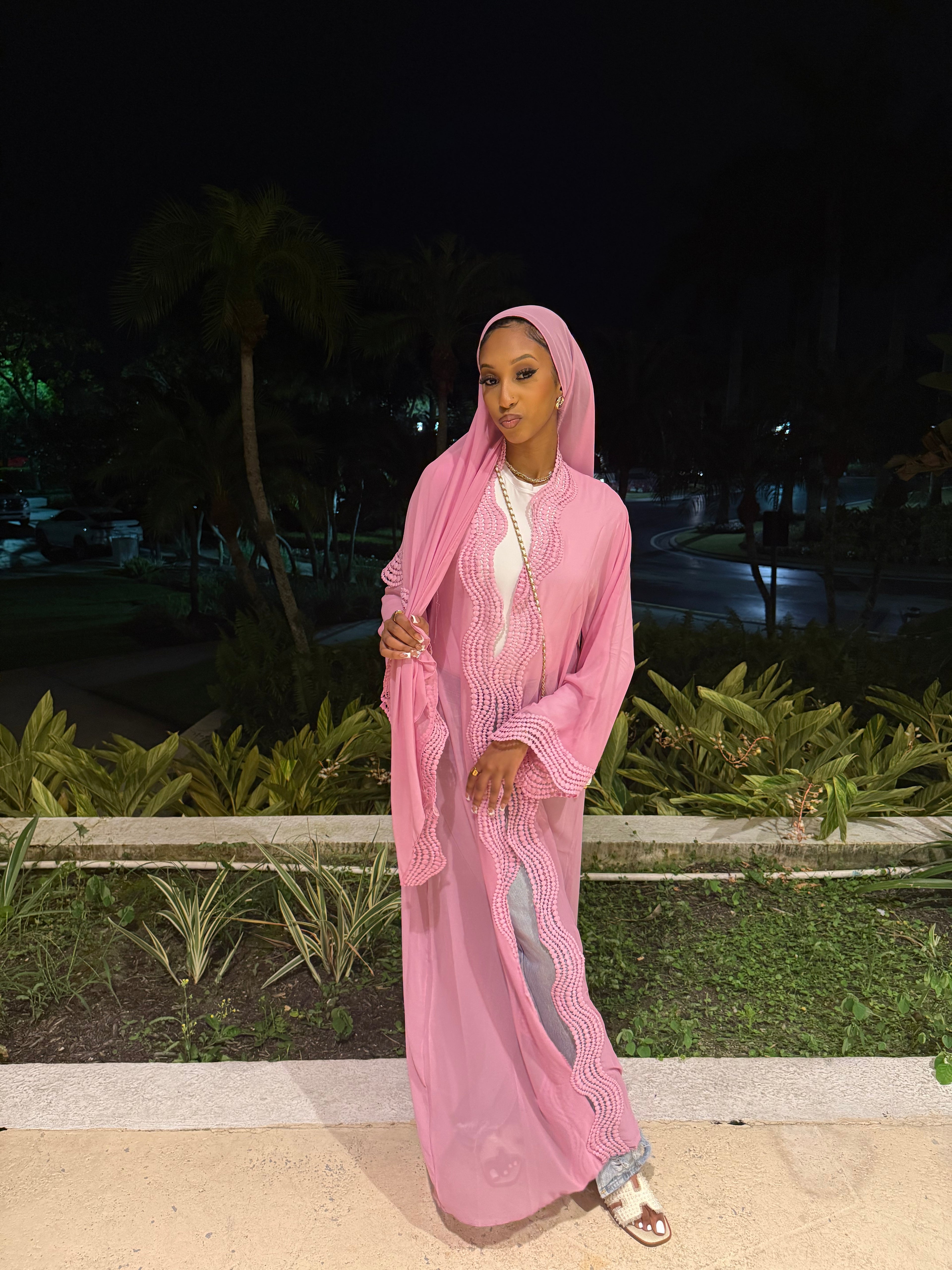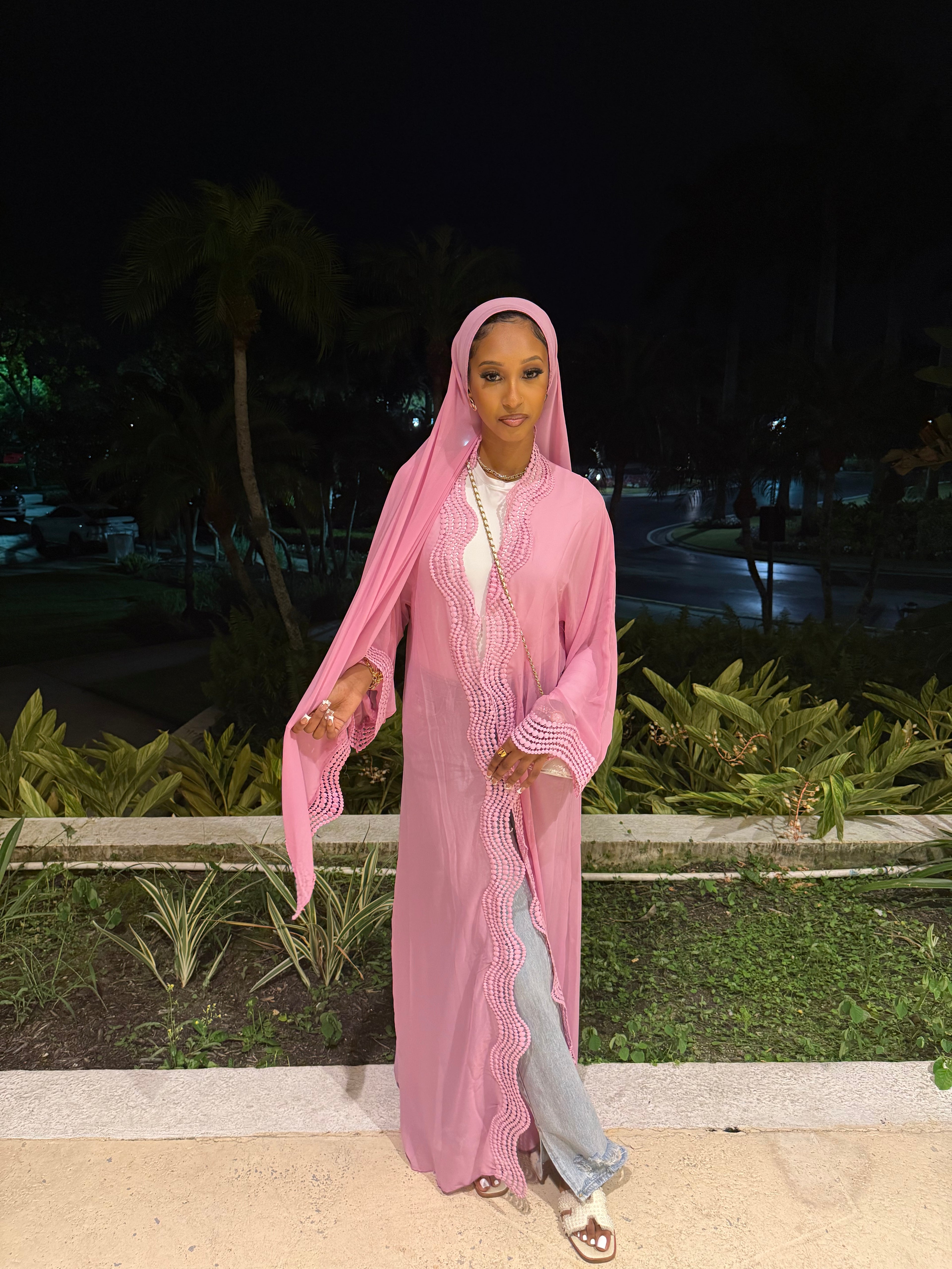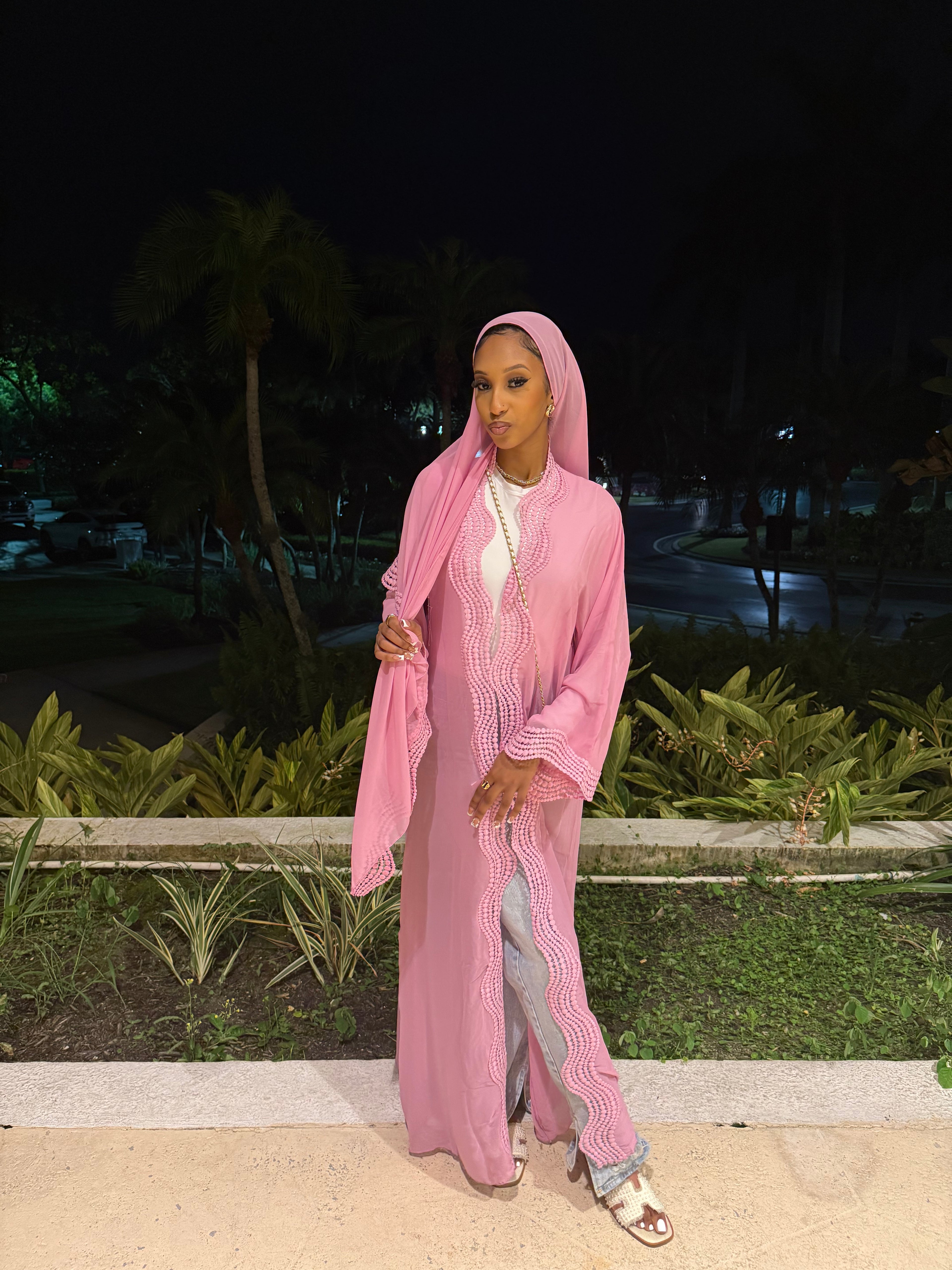 MATERIAL IS SEE THROUGH. Elevate your modest wardrobe with timeless elegance in the Amara Abaya Set. Designed with delicate, floral-inspired embroidery along the front, Amara embodies grace and femininity in every stitch. Its flowing silhouette, lightweight fabric, and coordinated three-piece design make it a refined choice for any occasion — from everyday wear to special gatherings.