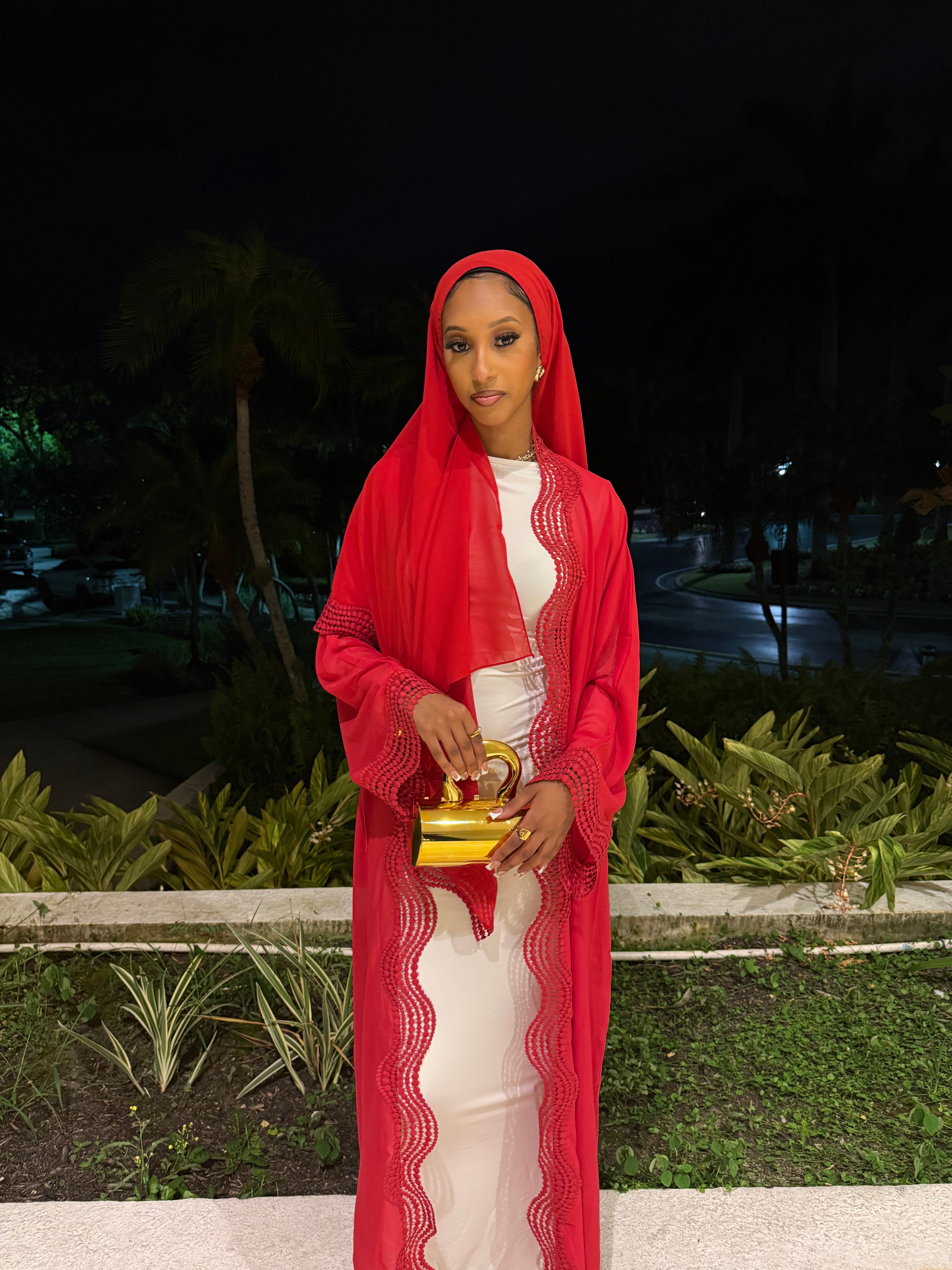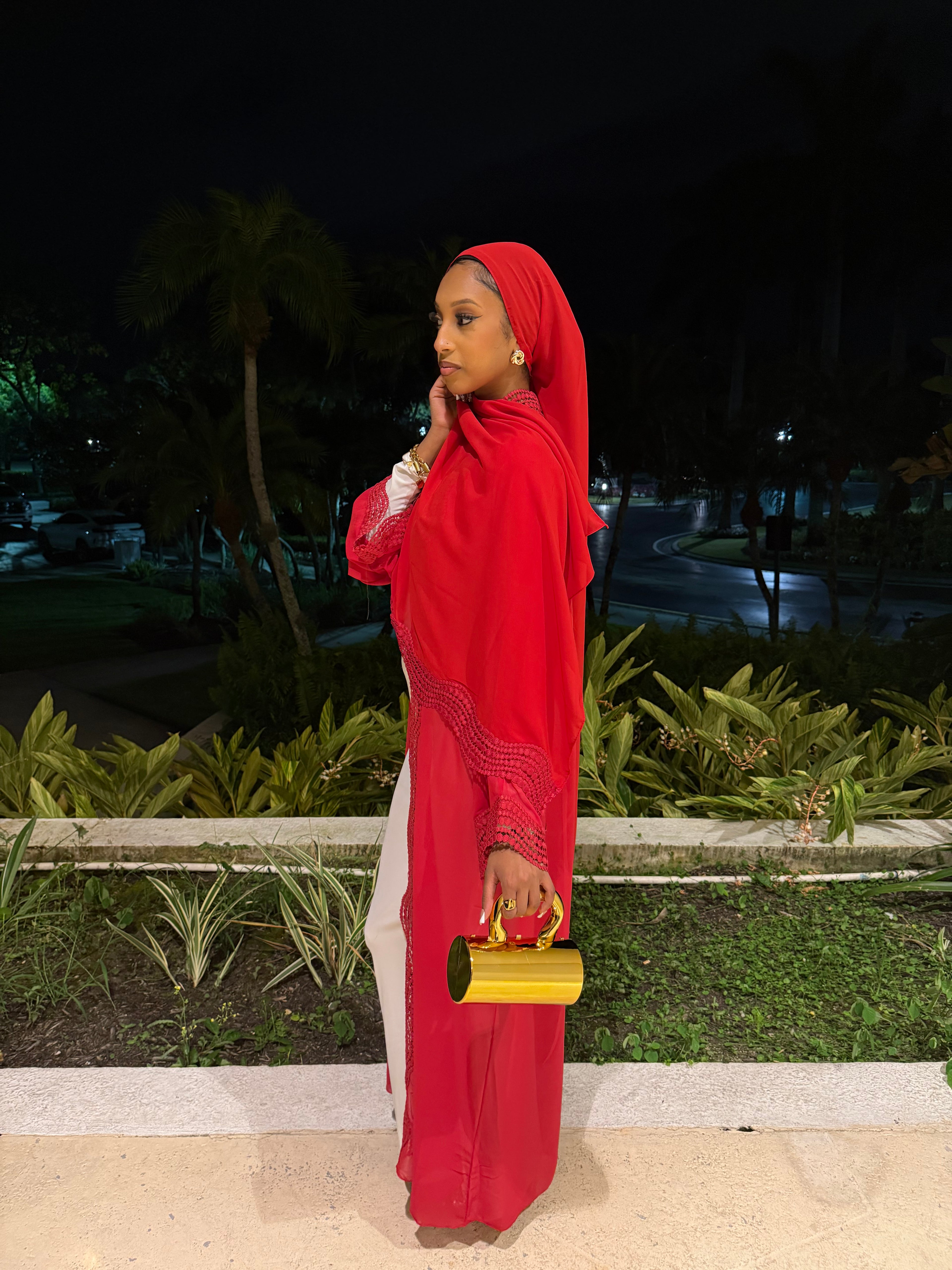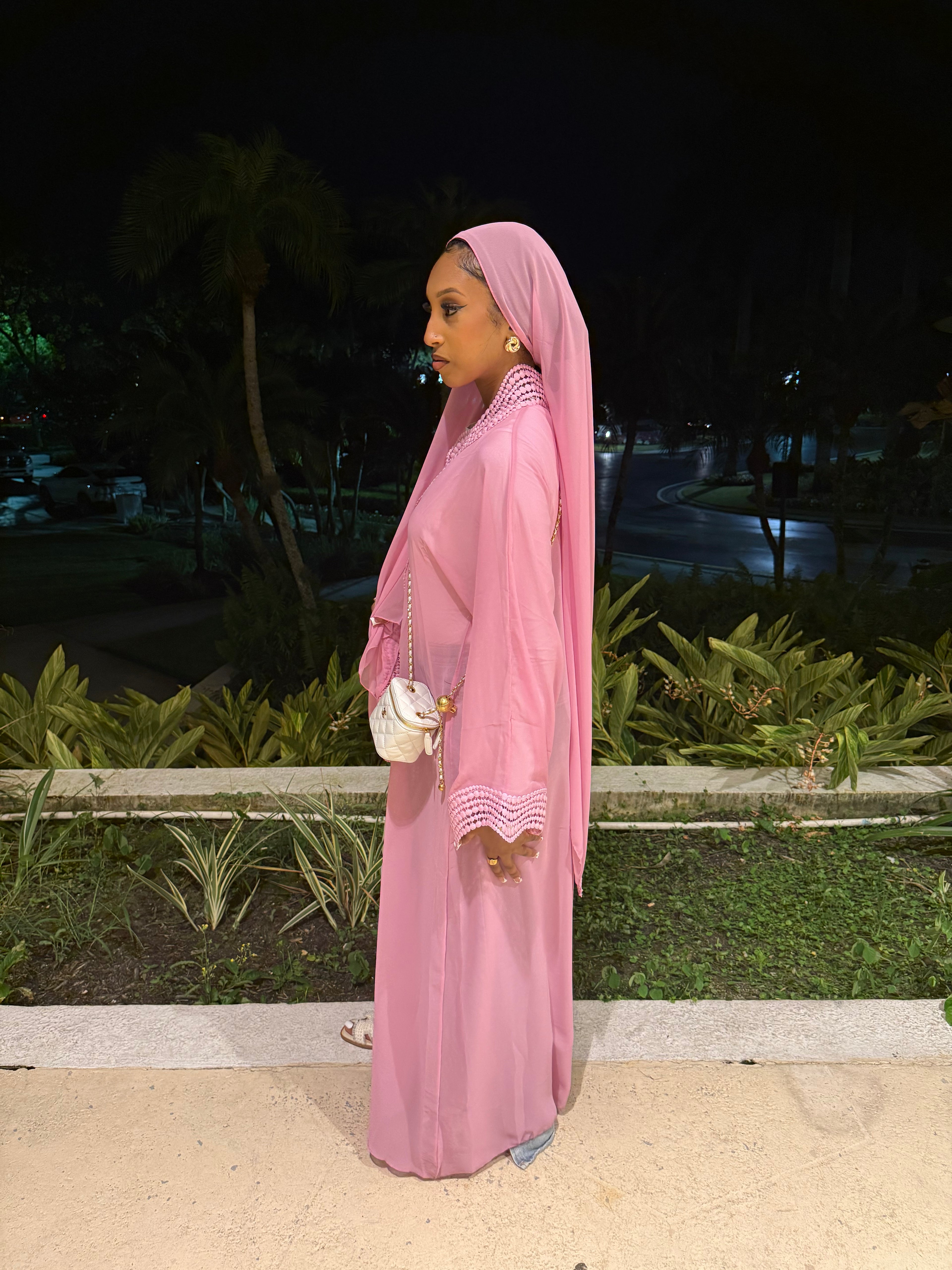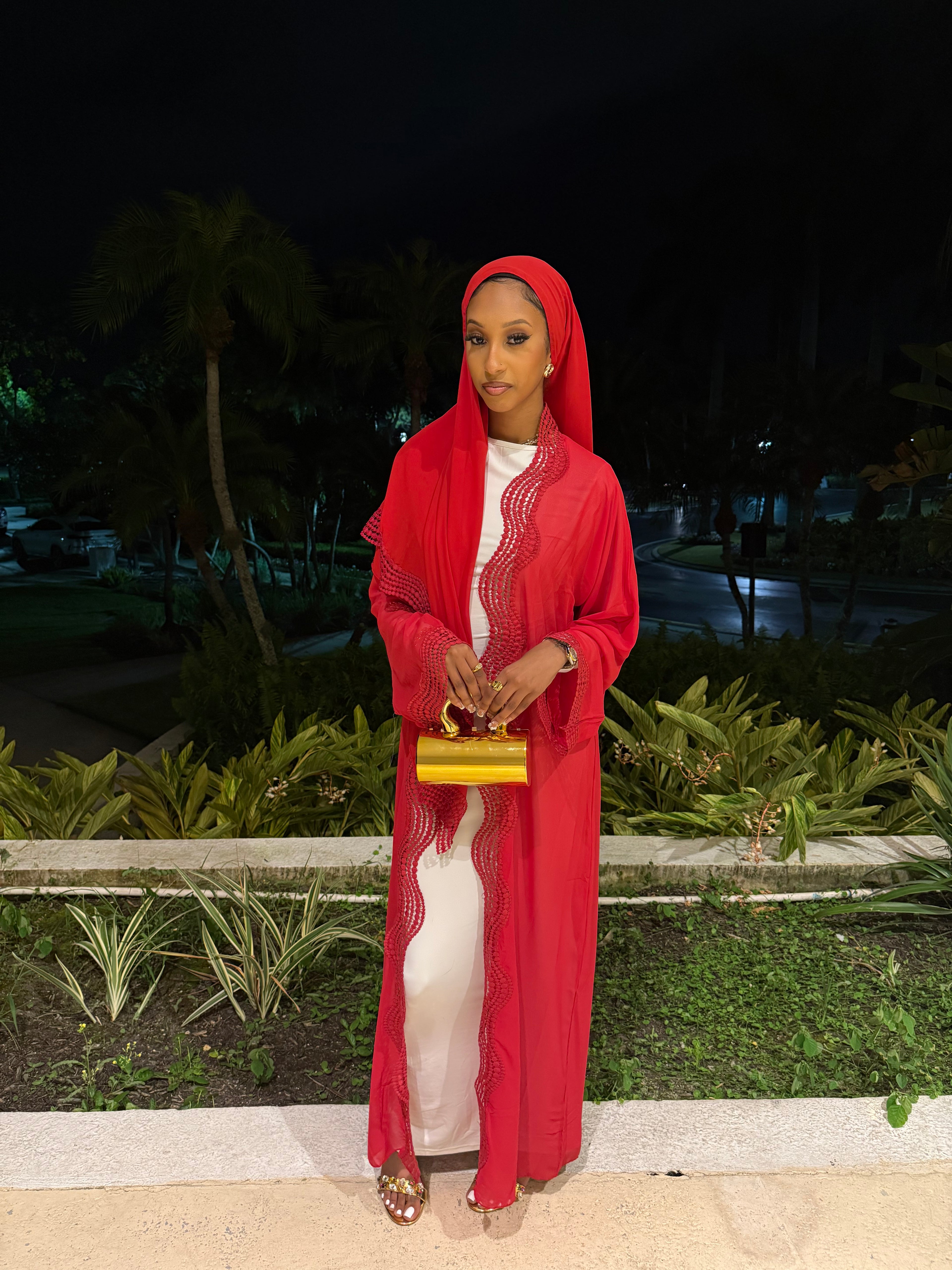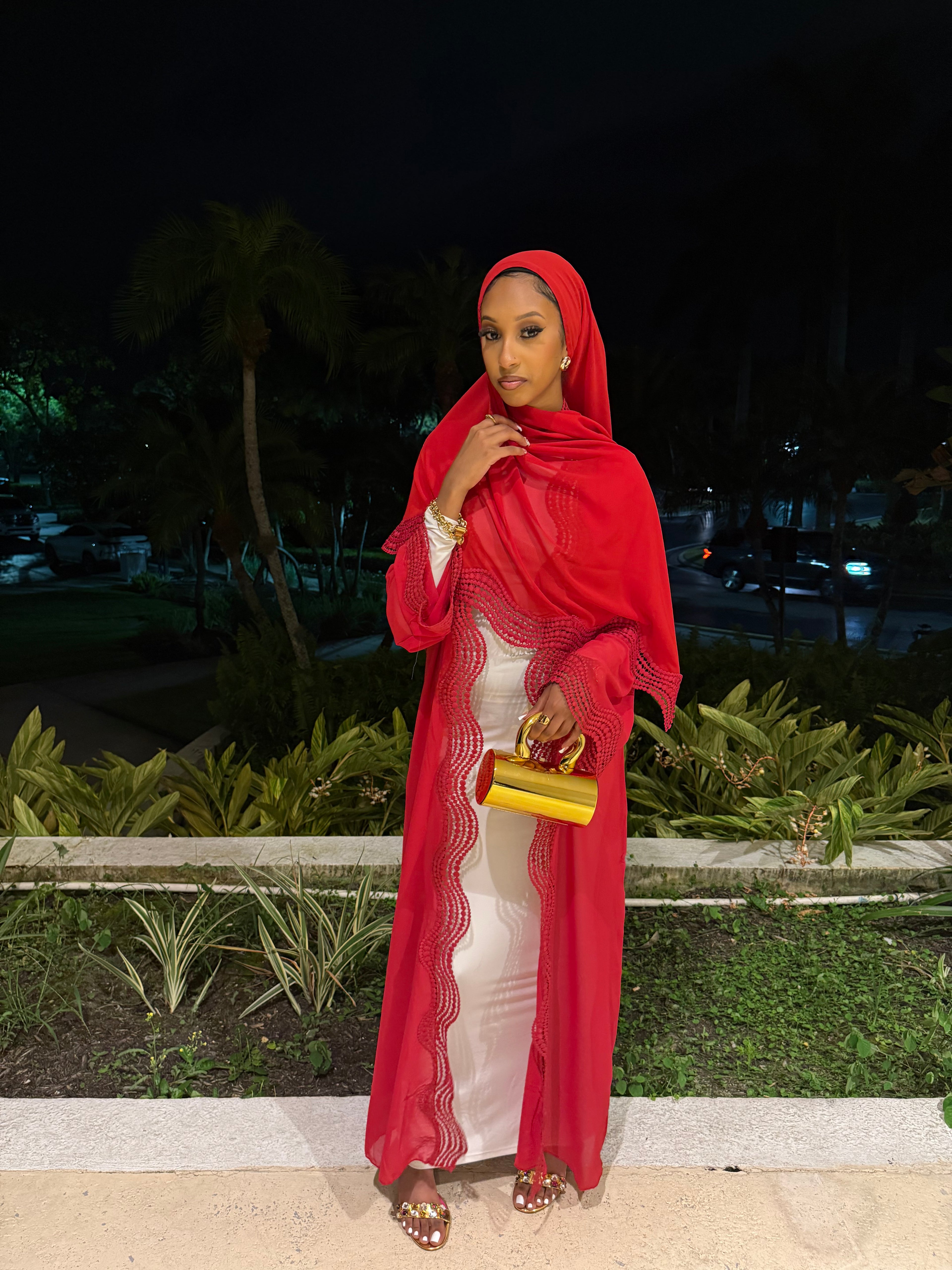 MATERIAL IS SEE THROUGH. Elevate your modest wardrobe with timeless elegance in the Amara Abaya Set. Designed with delicate, floral-inspired embroidery along the front, Amara embodies grace and femininity in every stitch. Its flowing silhouette, lightweight fabric, and coordinated three-piece design make it a refined choice for any occasion — from everyday wear to special gatherings.