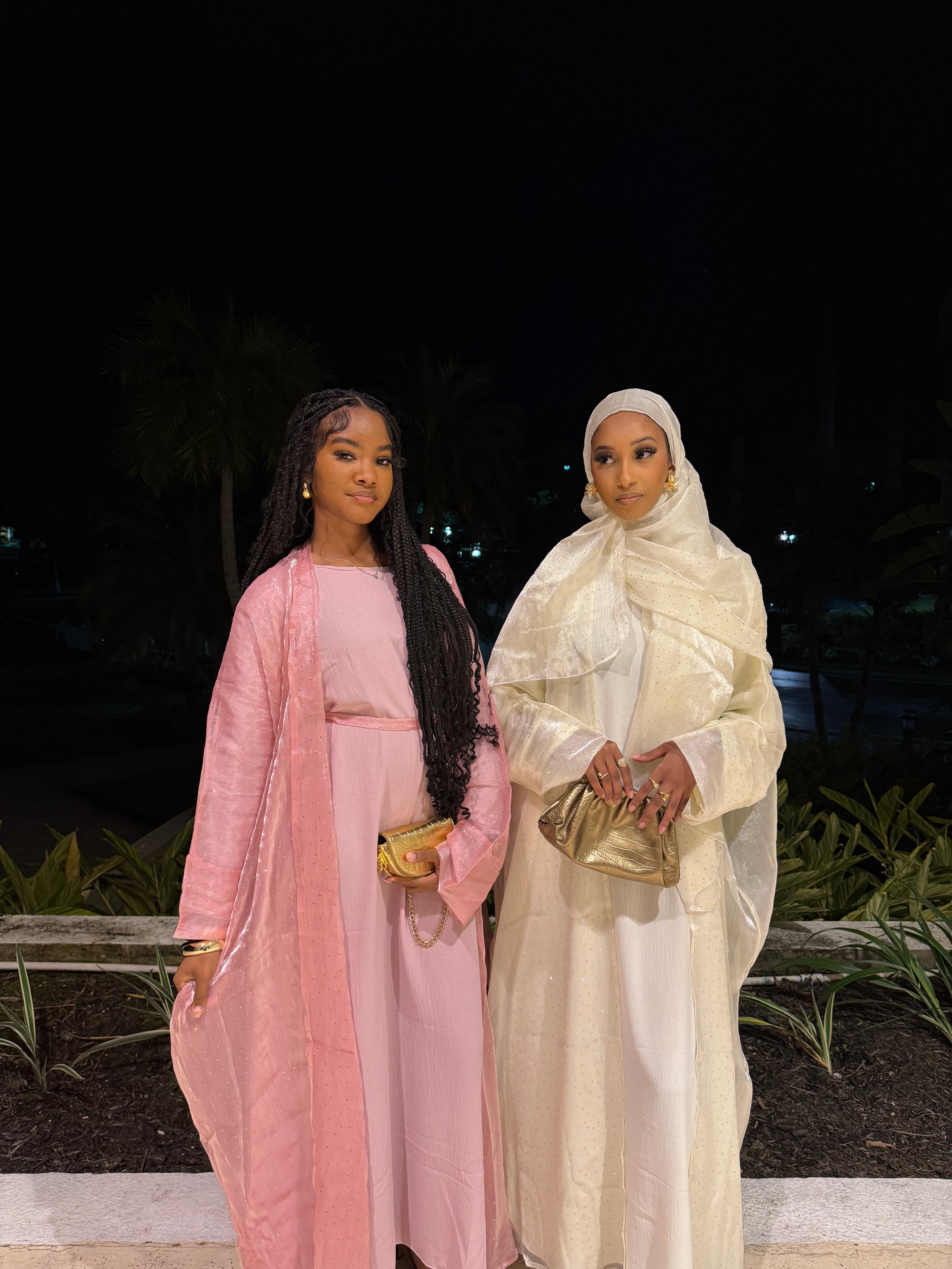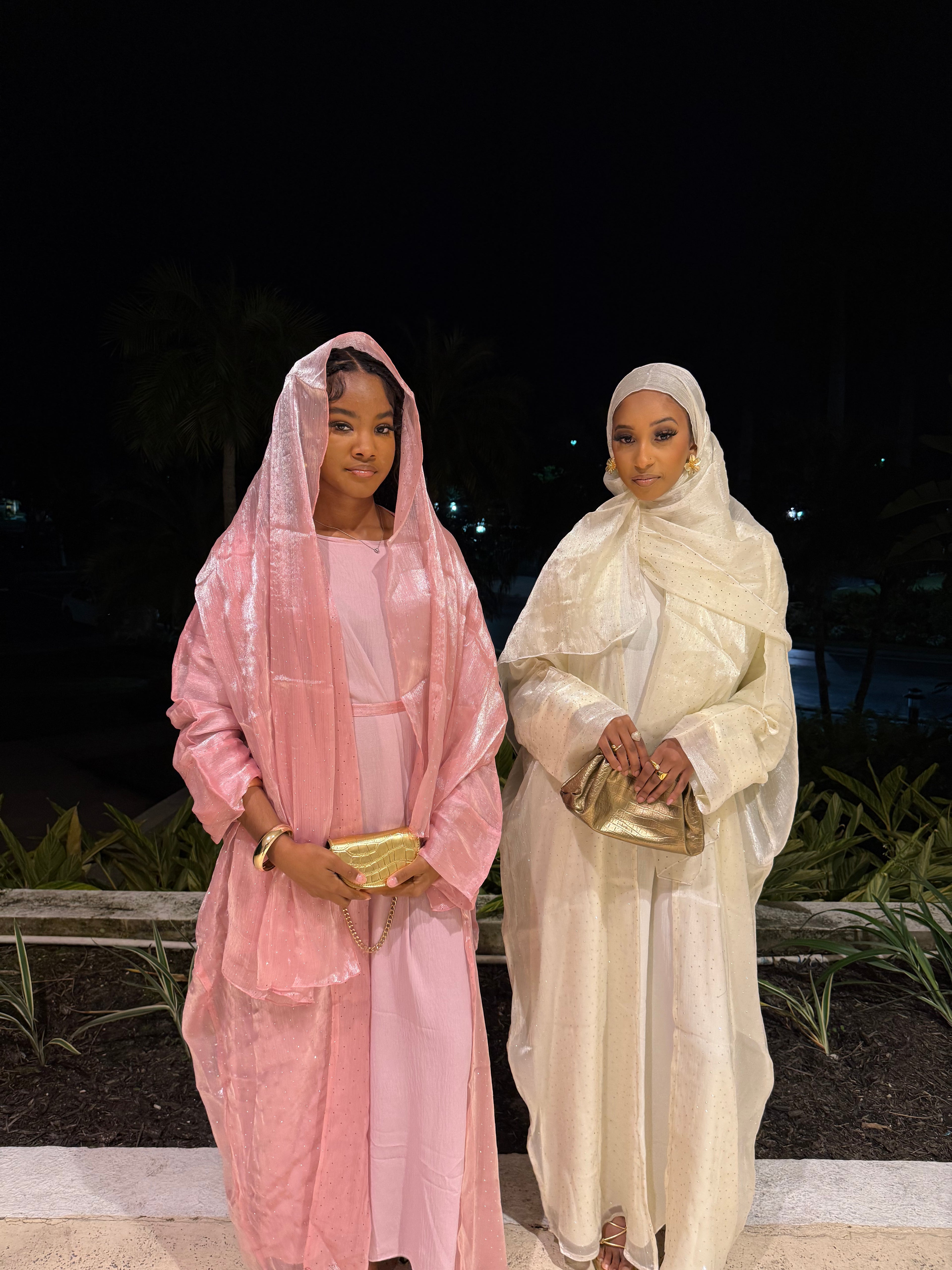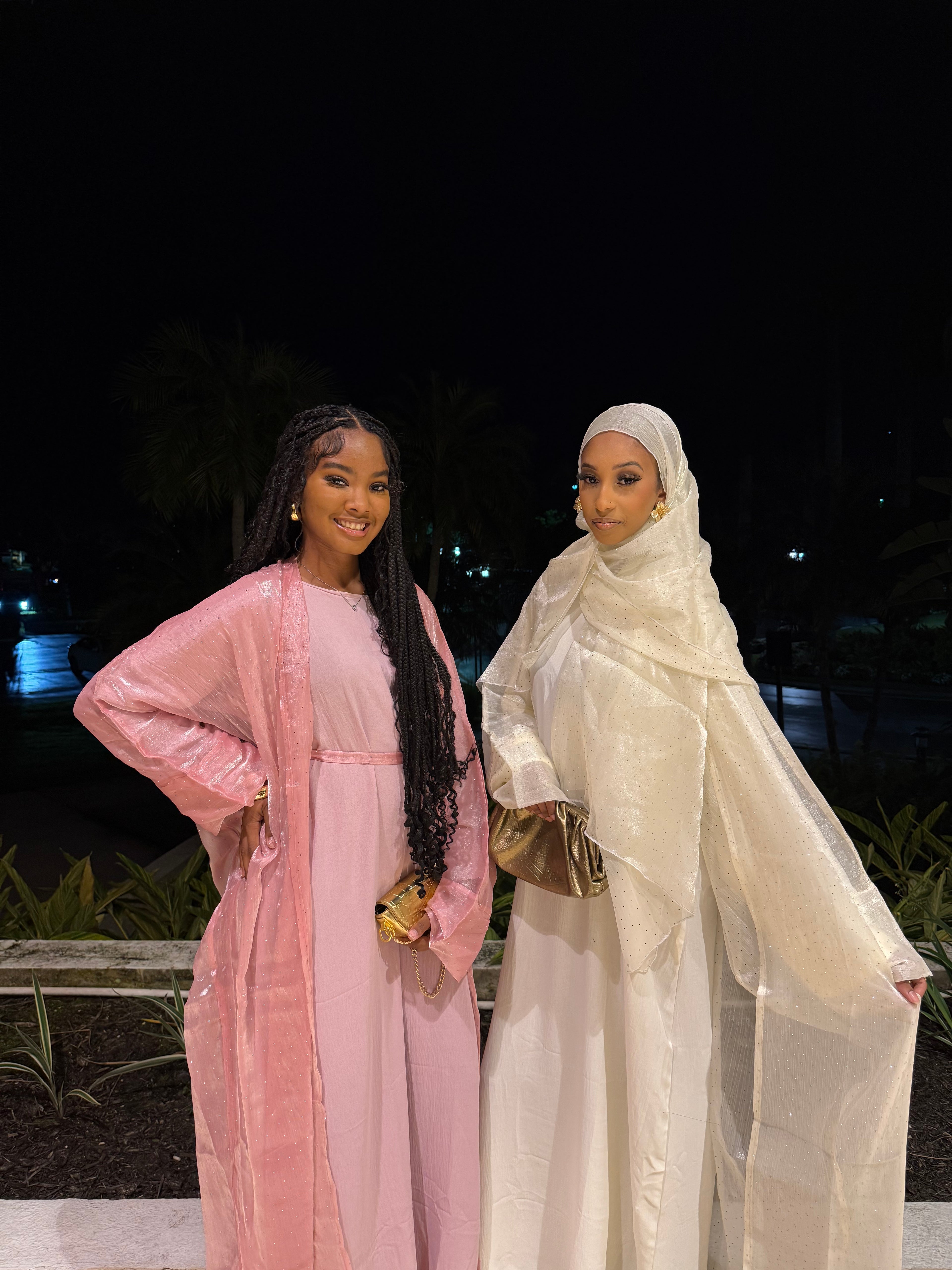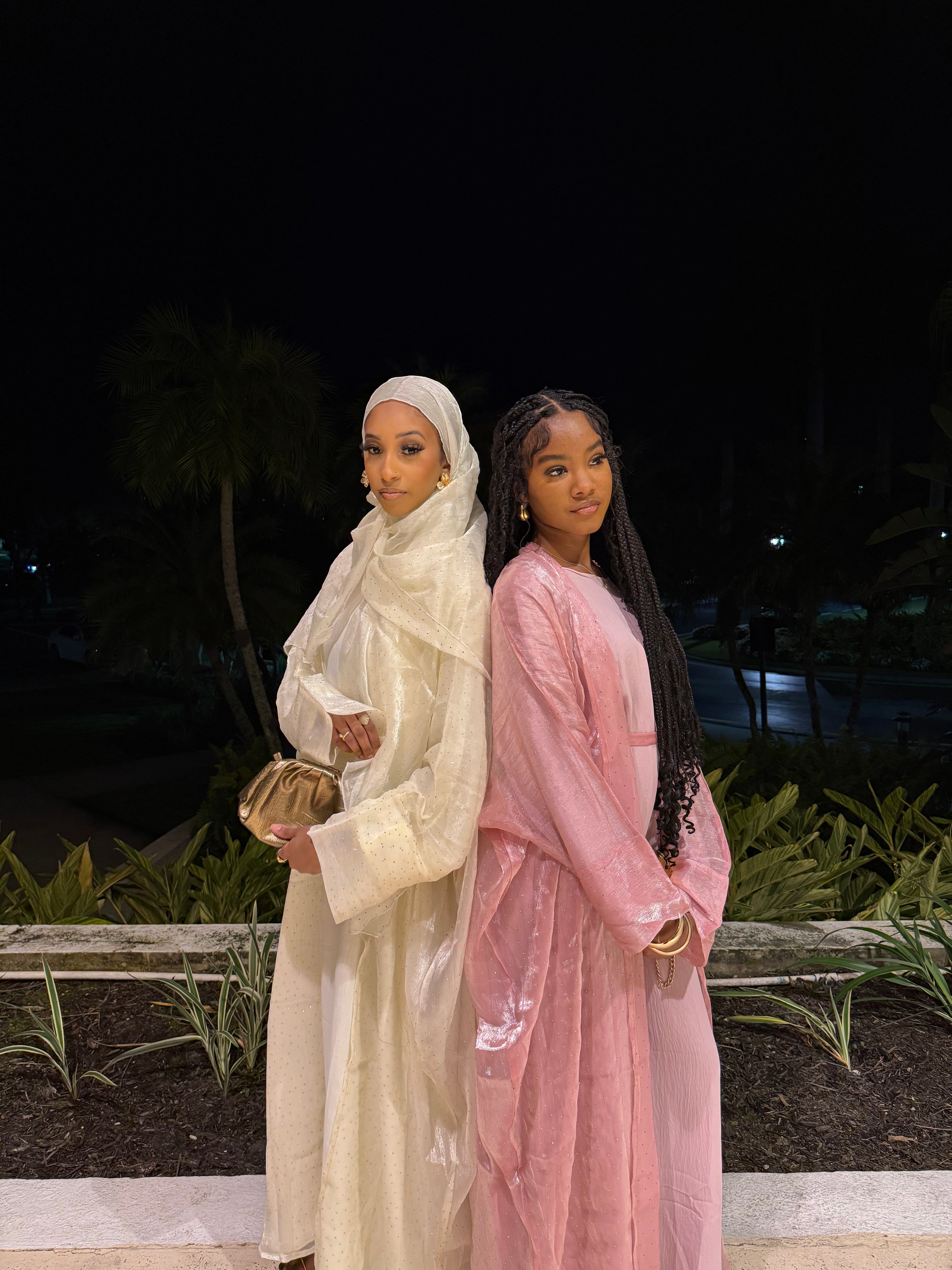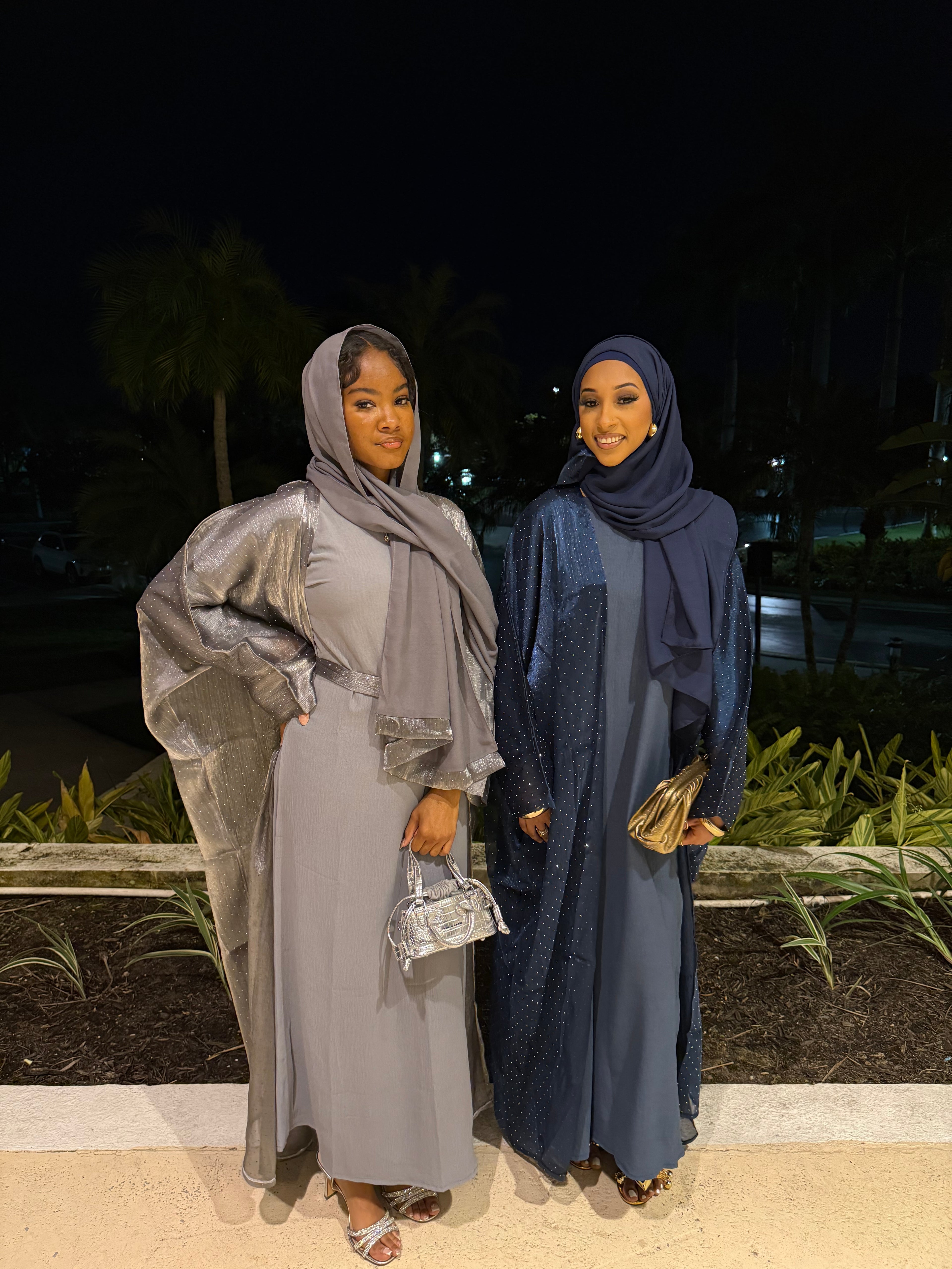 This elegant 4-piece set includes a rhinestone-embellished abaya, long-sleeved underdress, matching hijab, and coordinating belt. Available in five stunning shades—navy blue, pink, red, turquoise, and light blue—it offers both versatility and timeless style, perfect for special occasions or elevated everyday wear.
