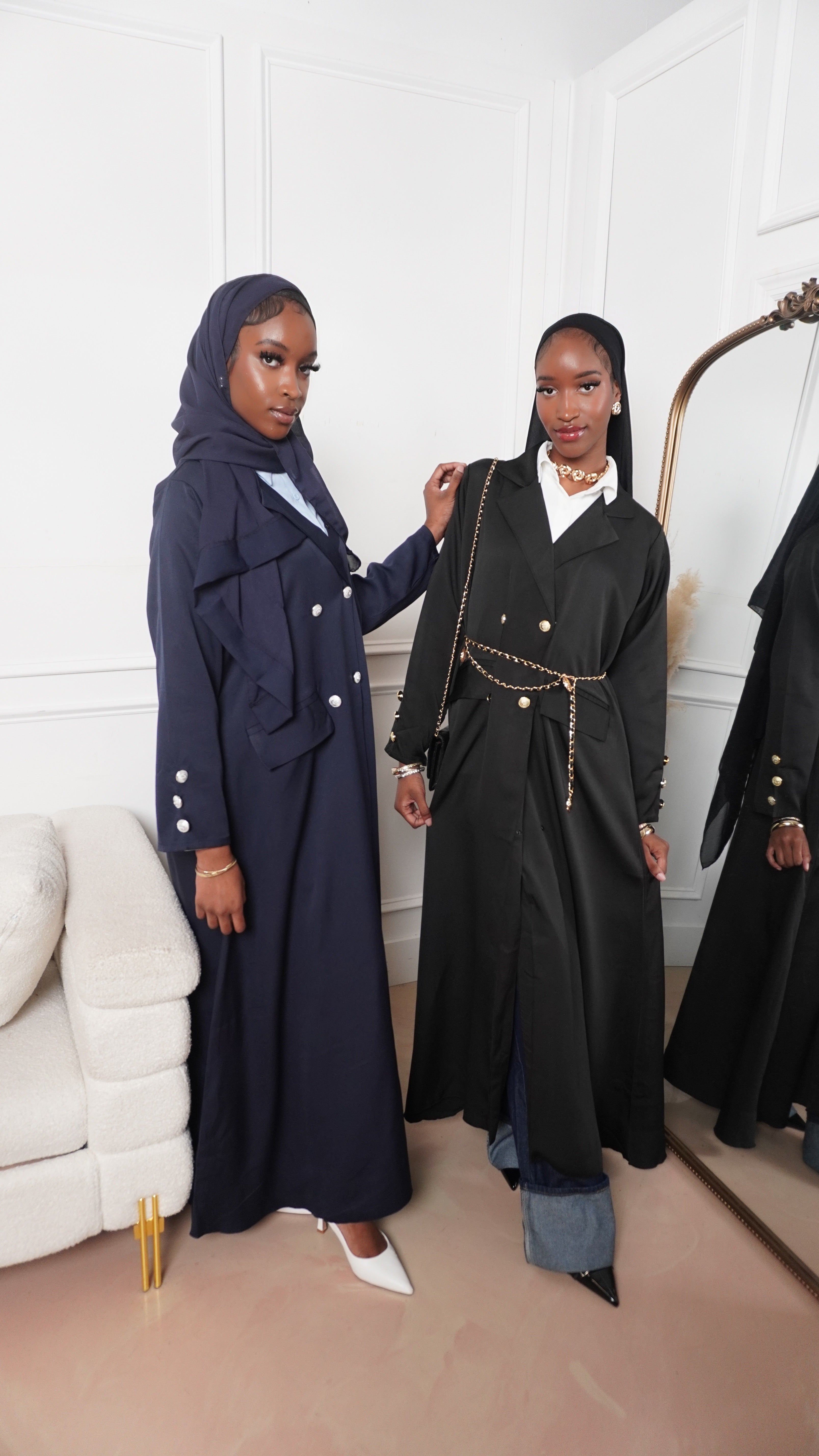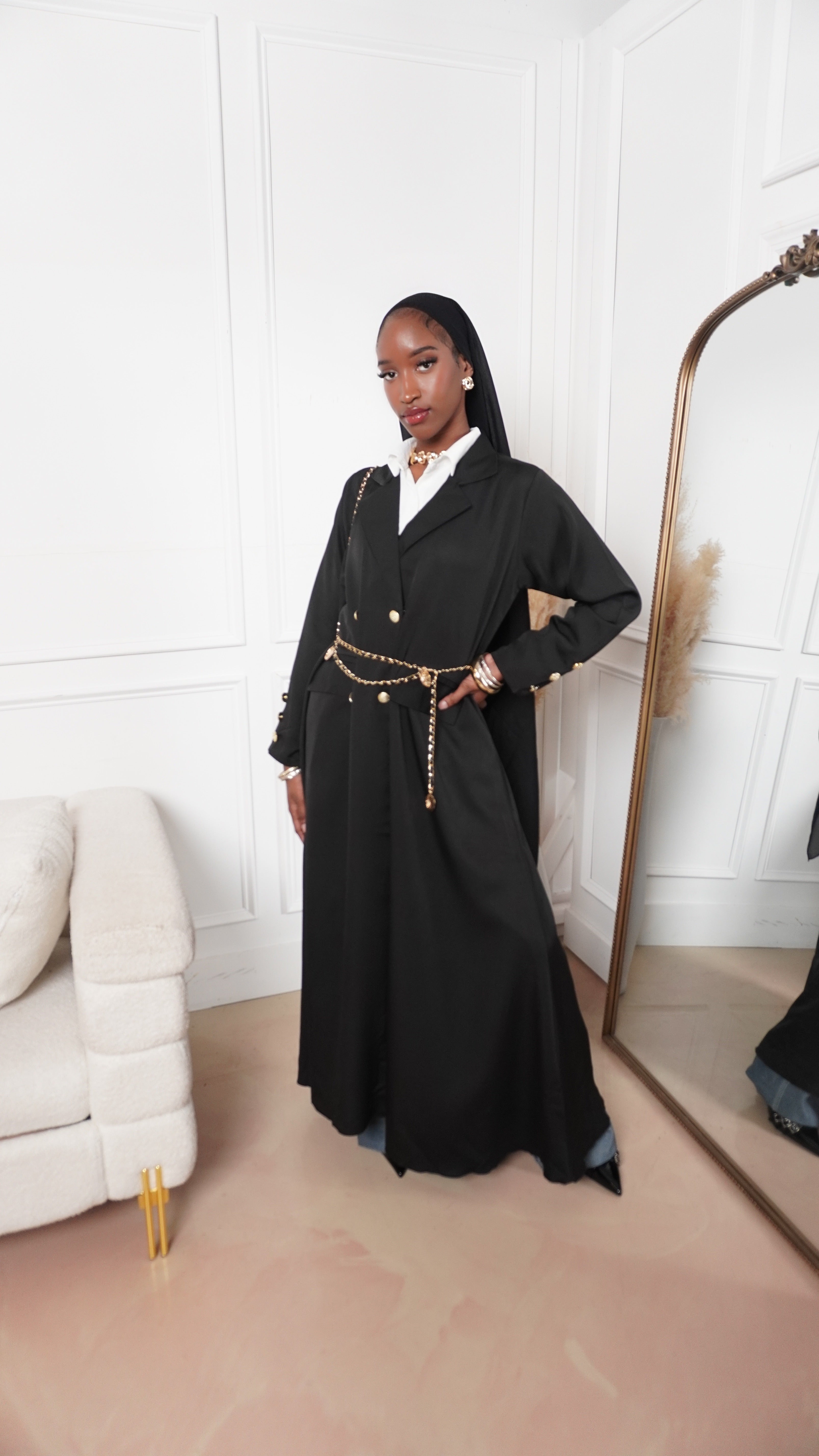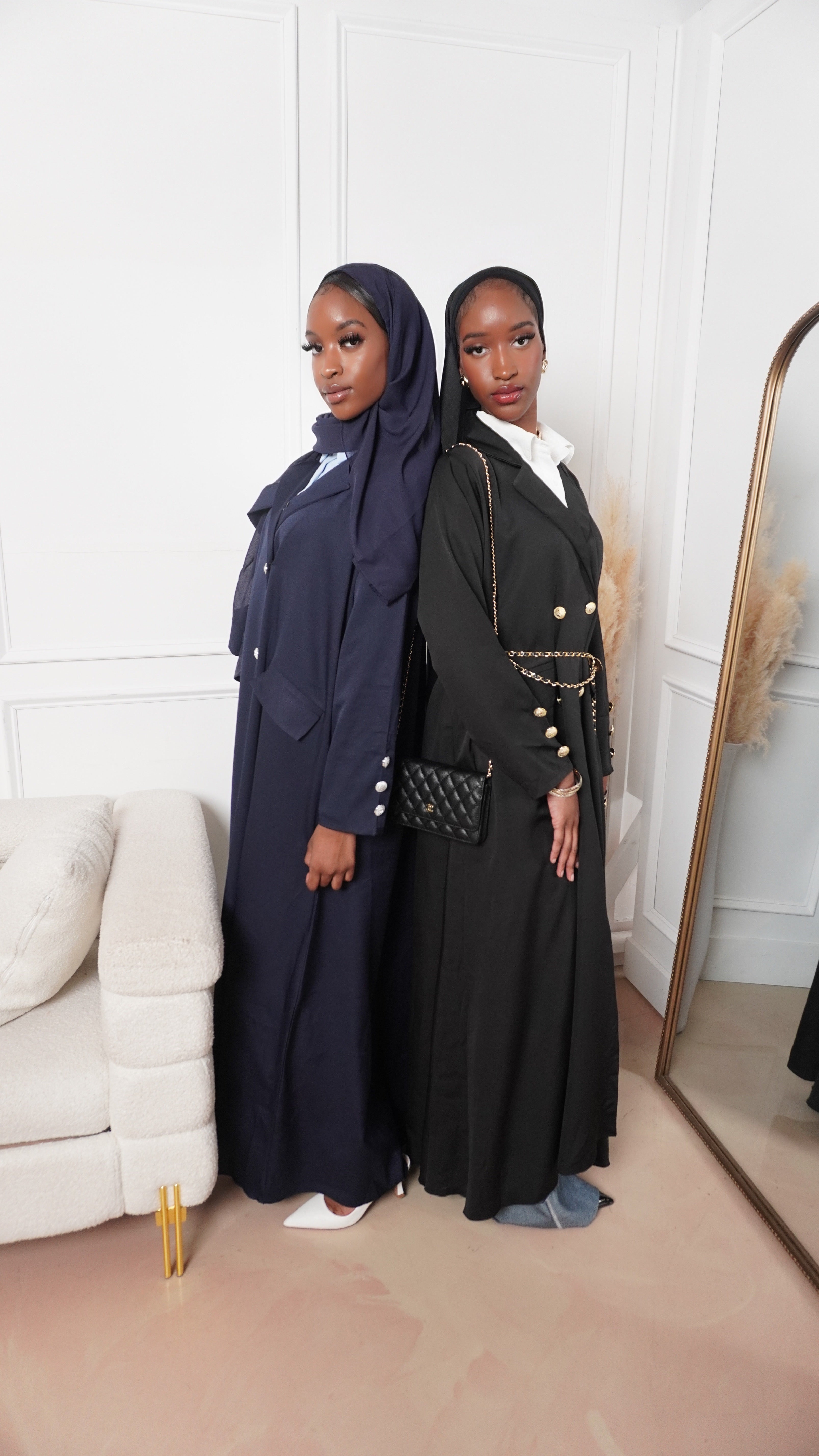 Sophisticated and powerful, the Empire Abaya Set redefines modern modest wear. Designed with a structured blazer-inspired silhouette and gold button details, it brings elegance and confidence to any occasion. The matching hijab completes the look for a polished, cohesive finish.