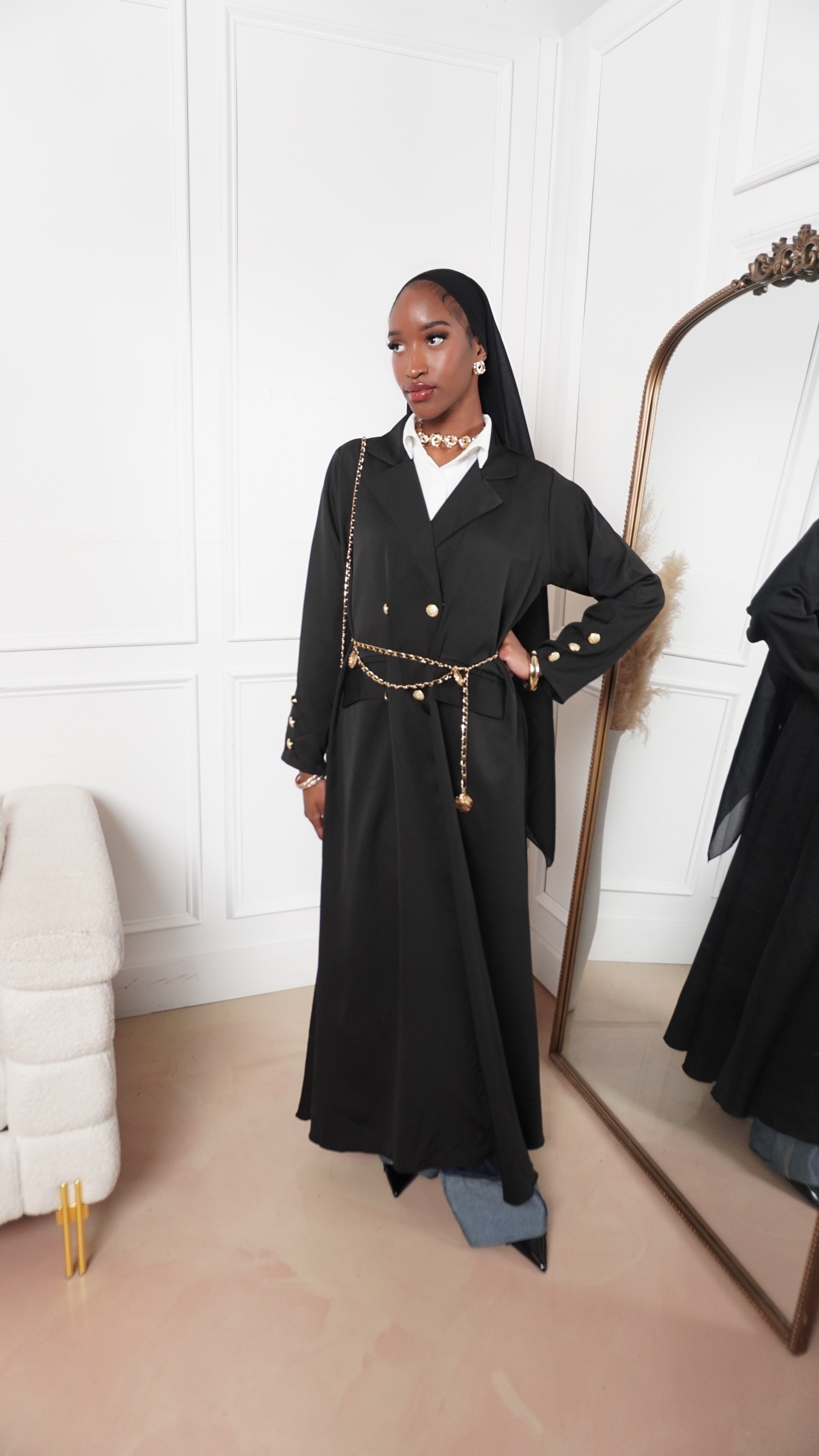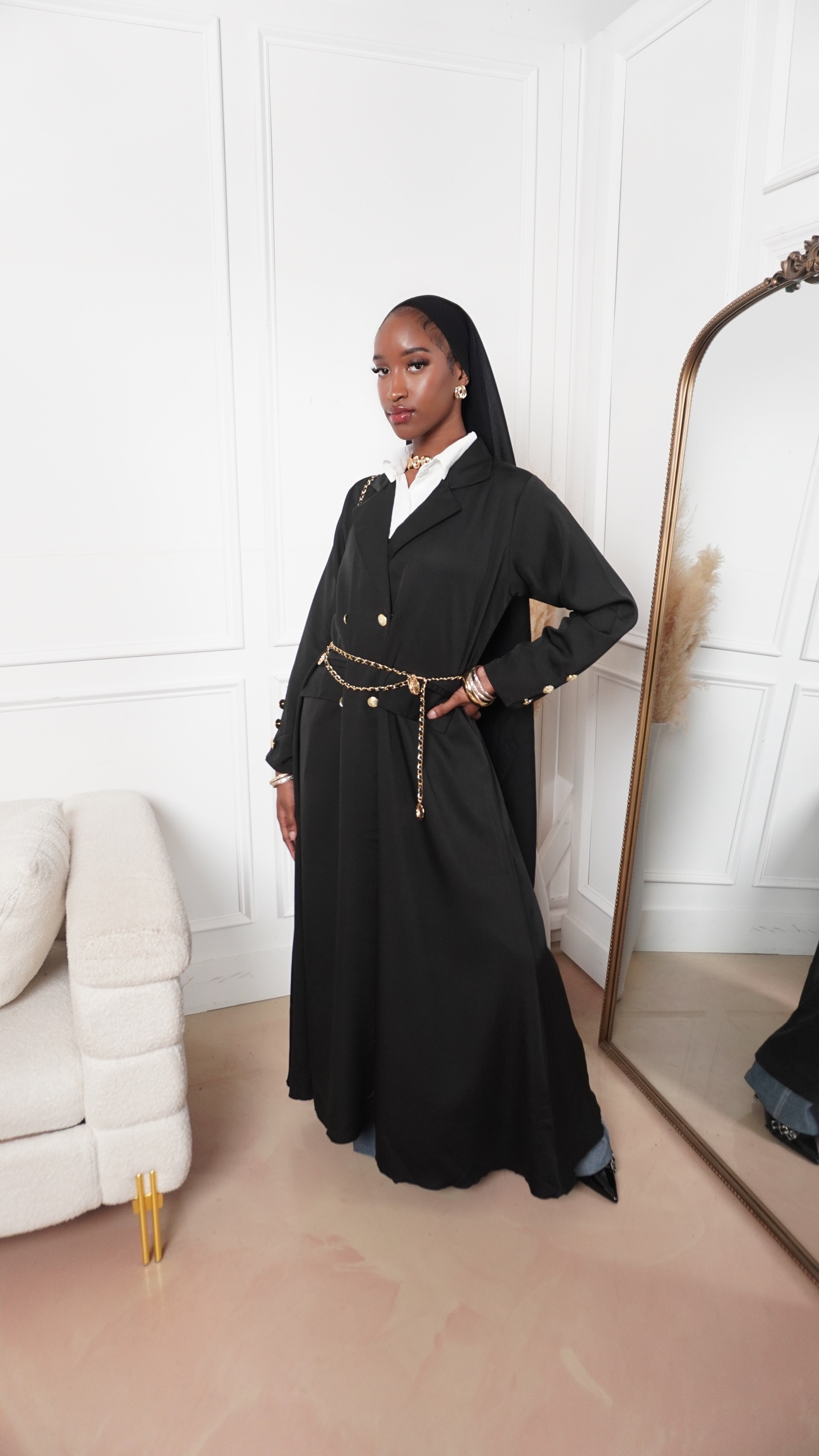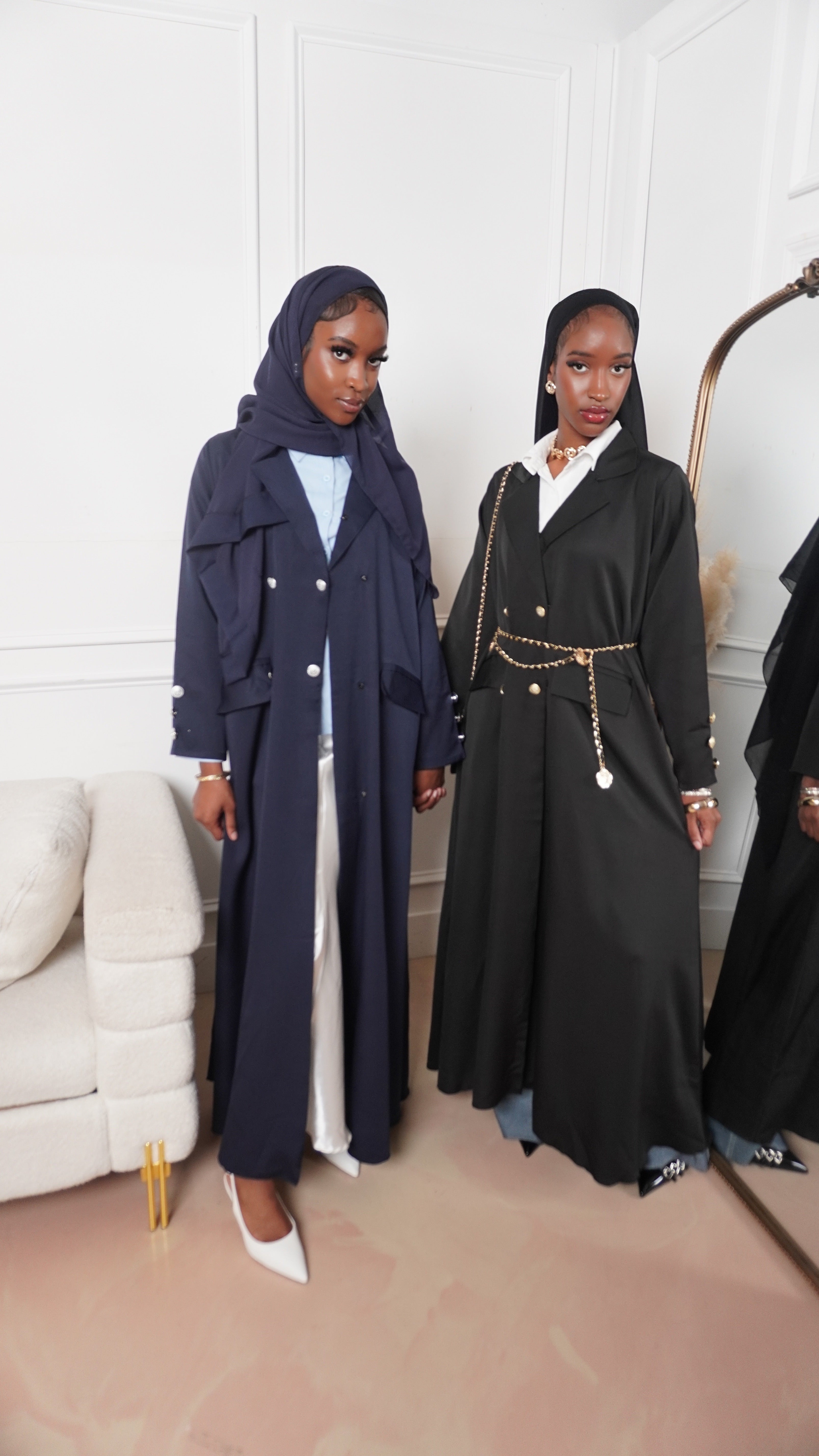 Sophisticated and powerful, the Empire Abaya Set redefines modern modest wear. Designed with a structured blazer-inspired silhouette and gold button details, it brings elegance and confidence to any occasion. The matching hijab completes the look for a polished, cohesive finish.