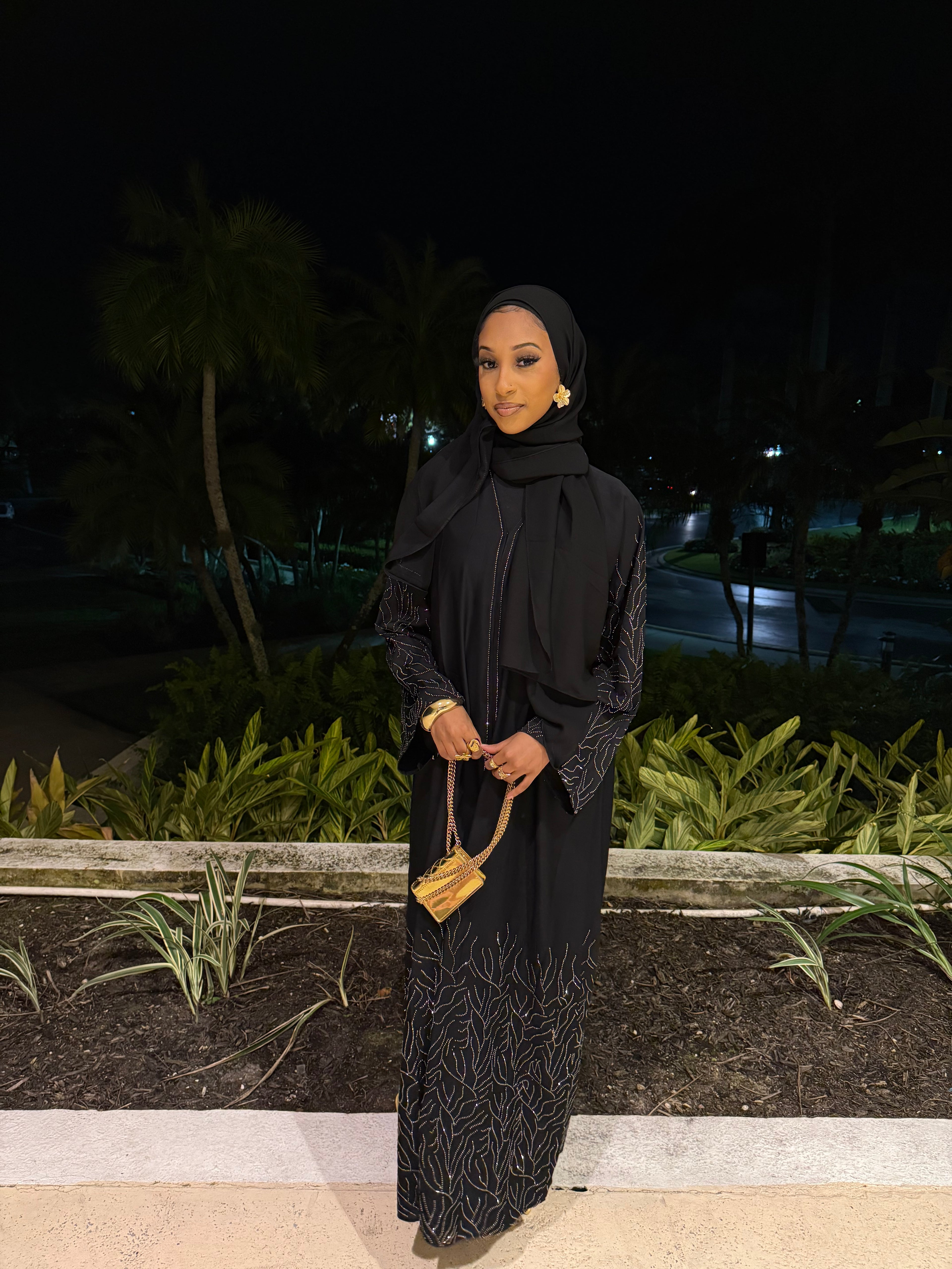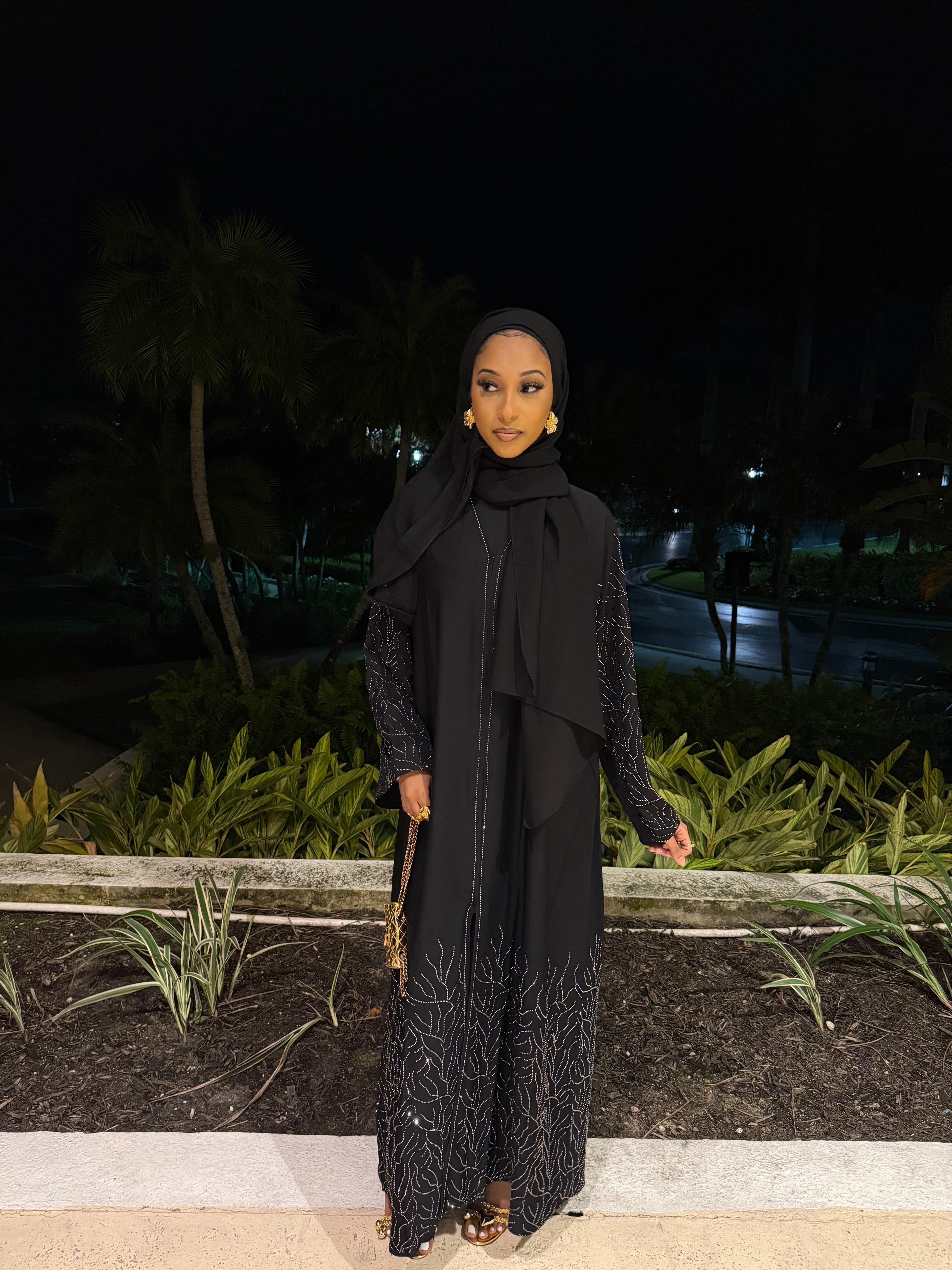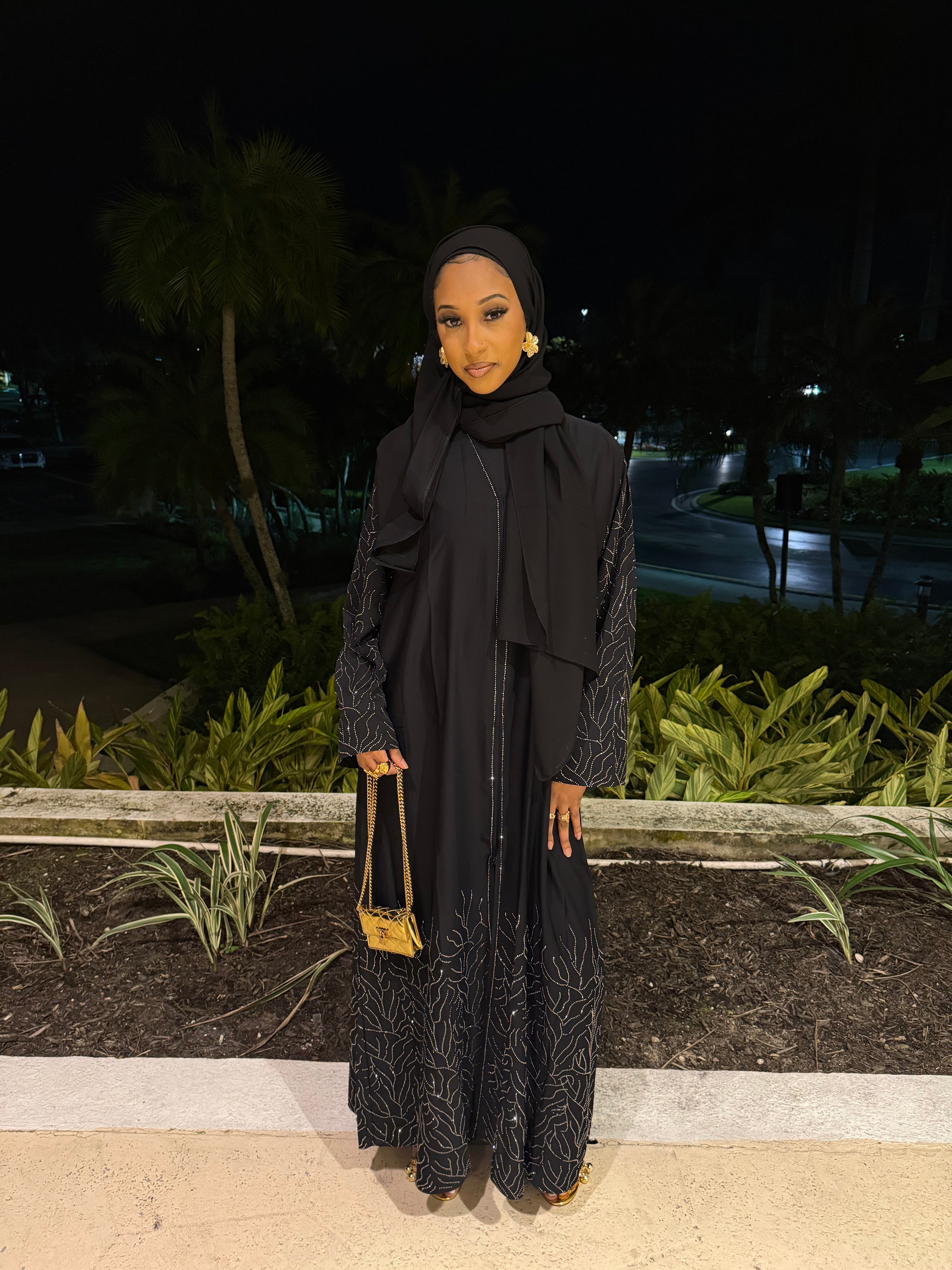 Stunning Abaya Set with rhinestones on sleeves & bottom of dress.
