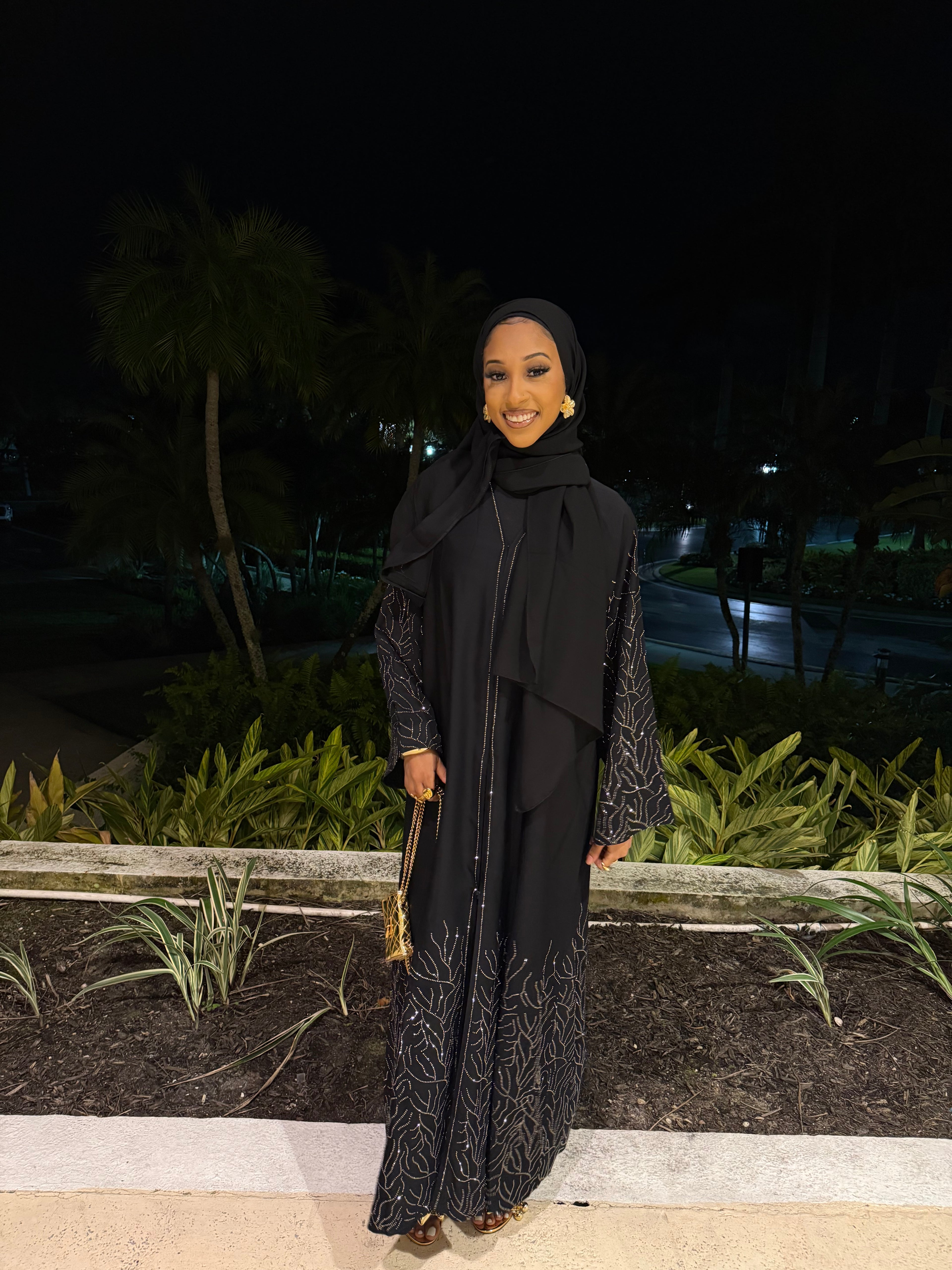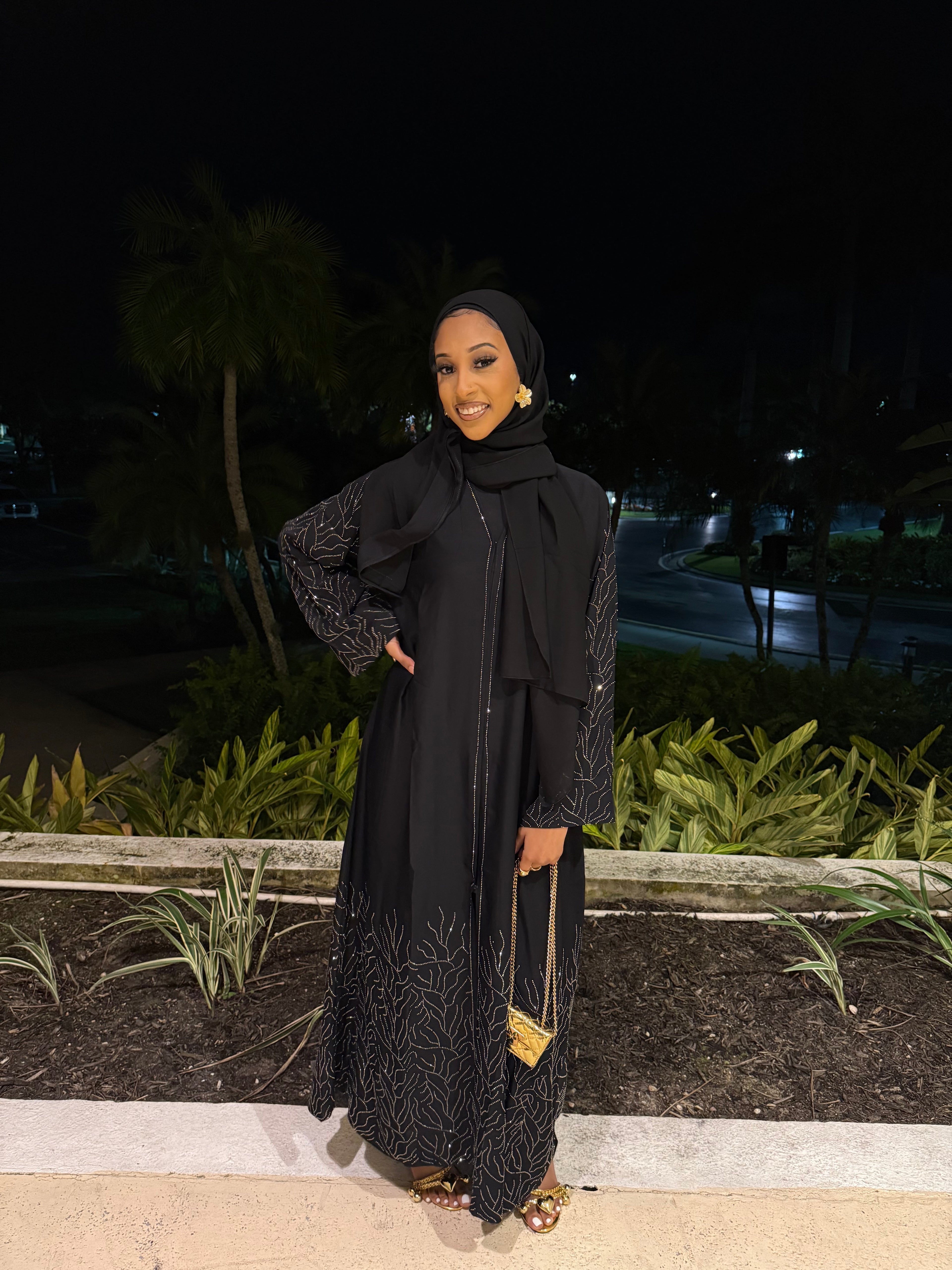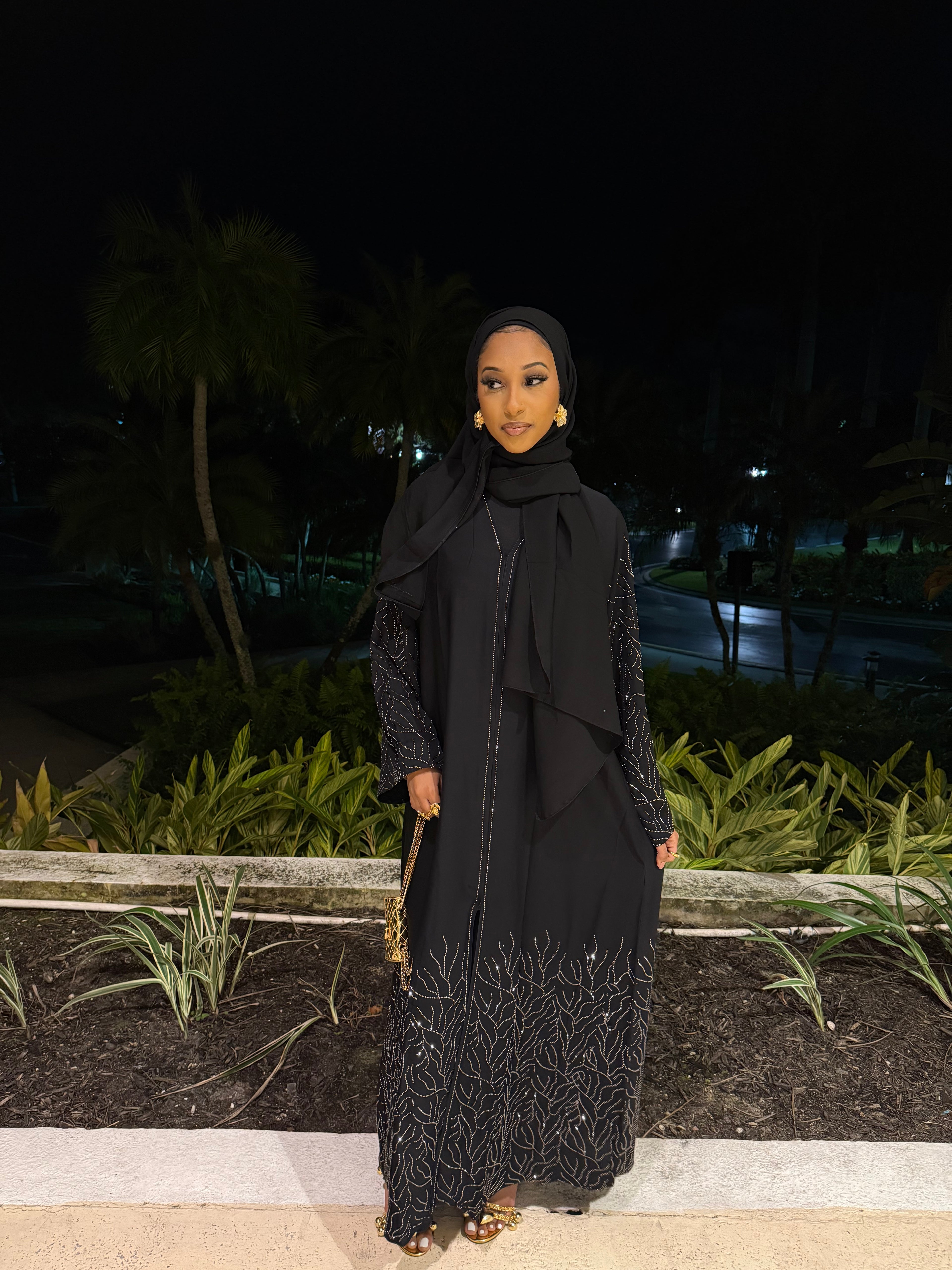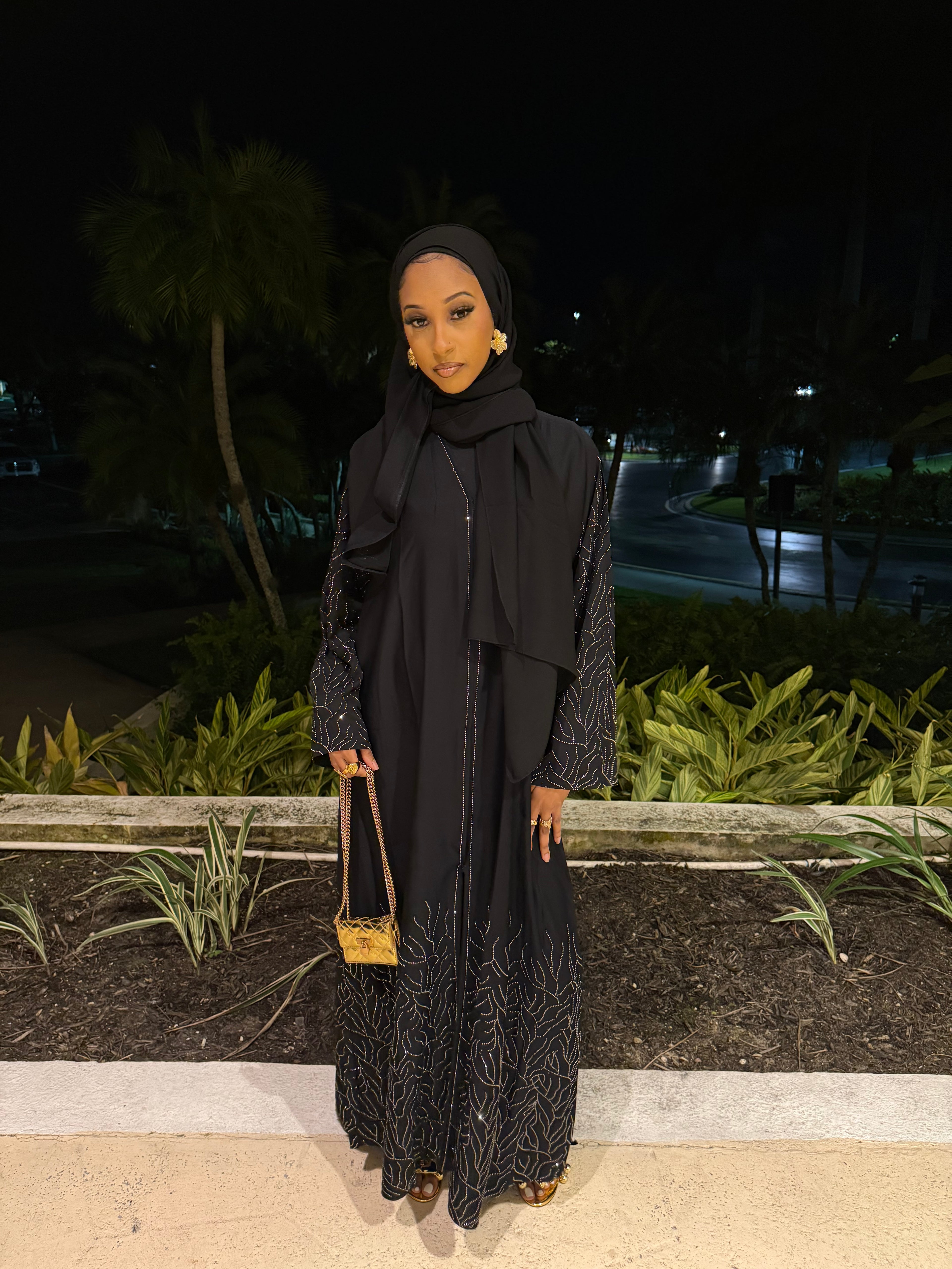 Stunning Abaya Set with rhinestones on sleeves & bottom of dress.