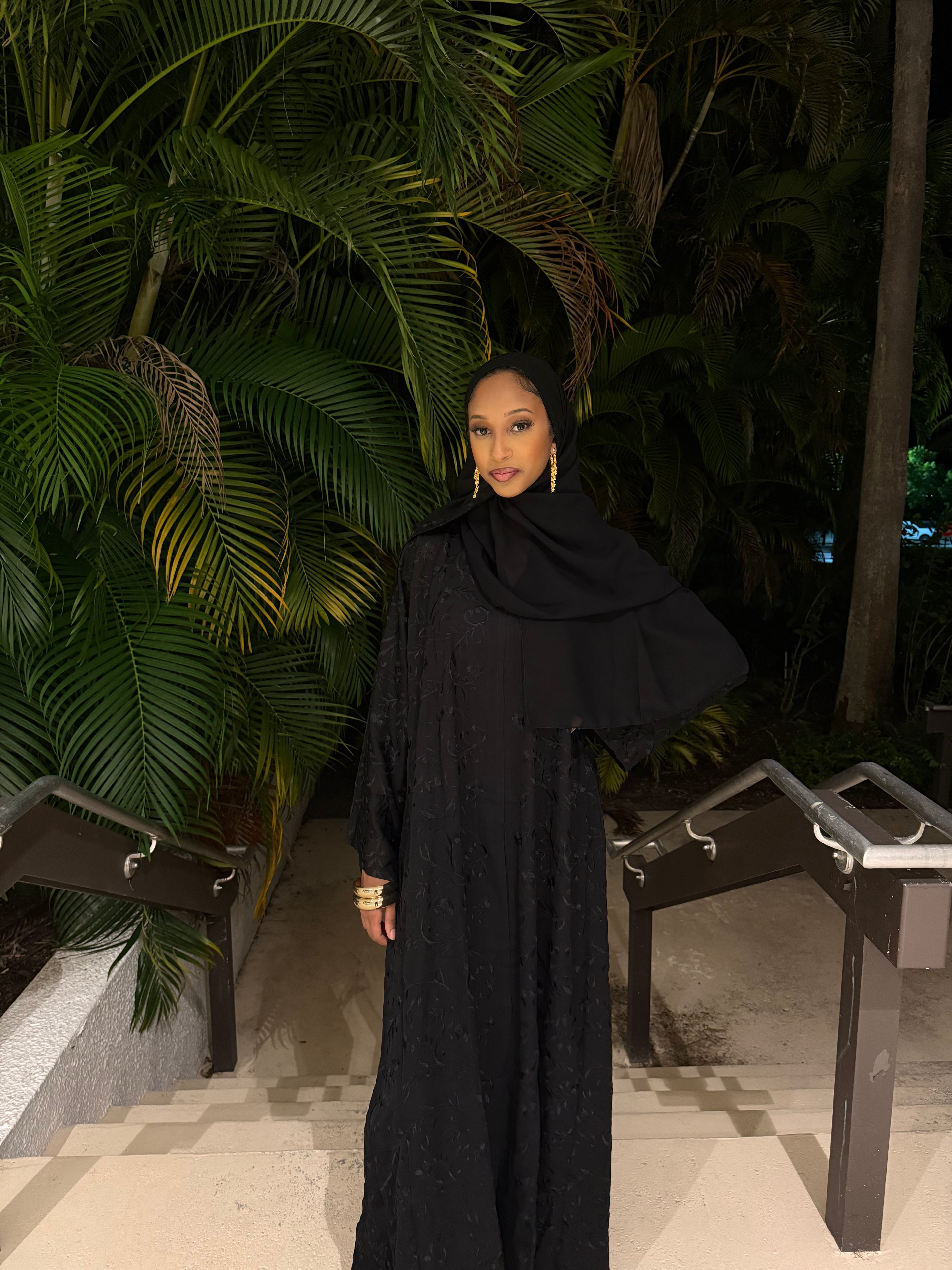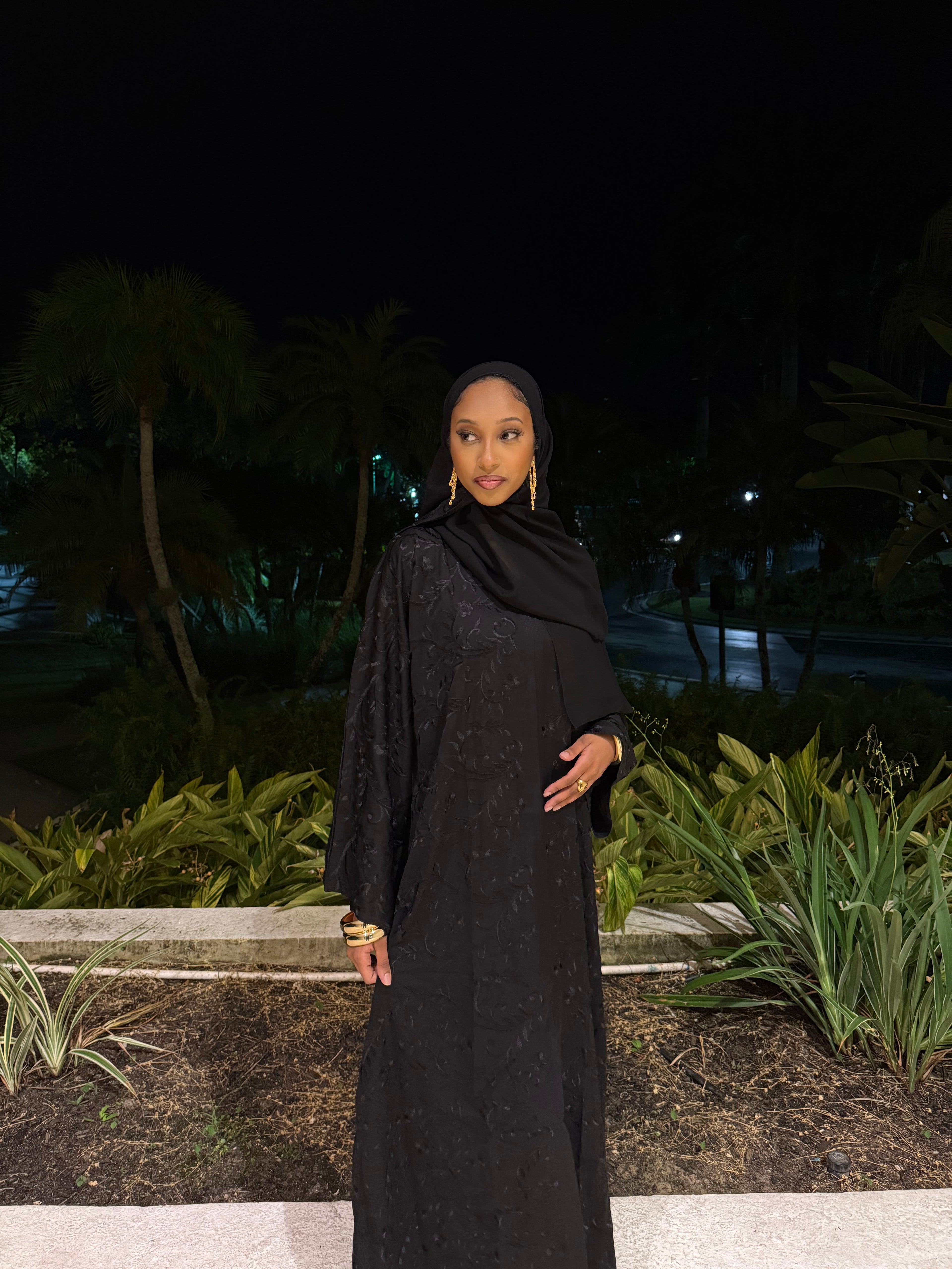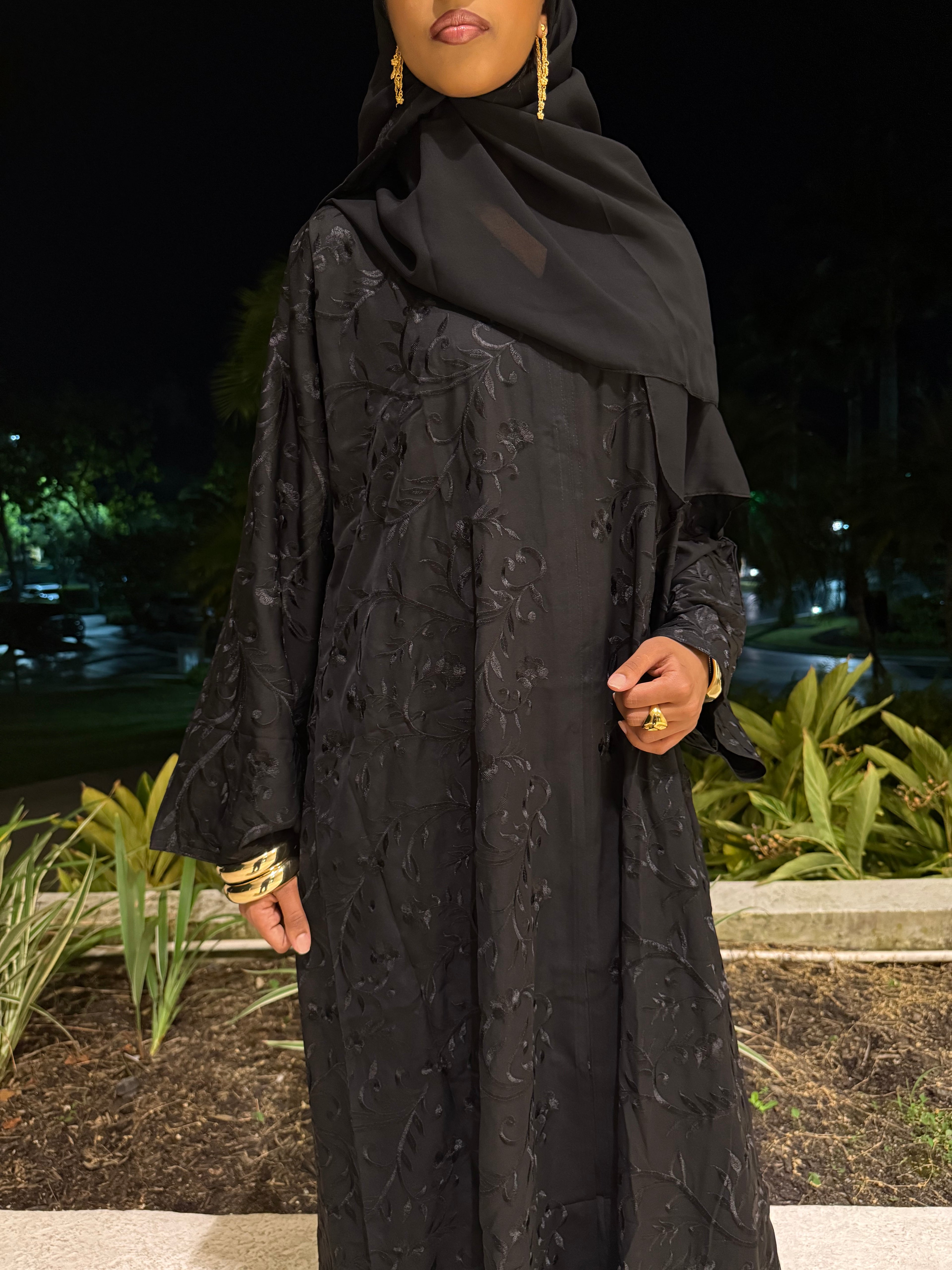 Elevate your style with this exquisite embroidery abaya set, designed to