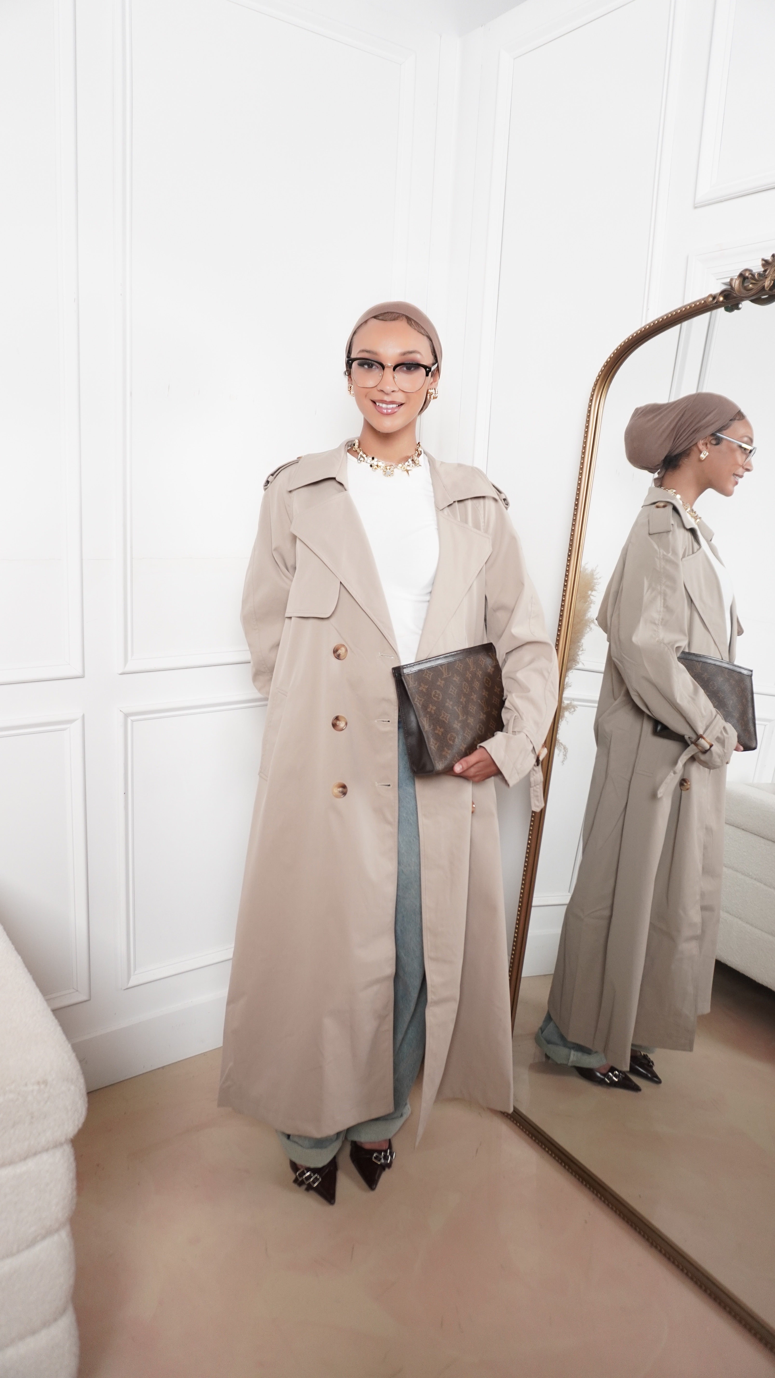 Stay effortlessly chic this fall and winter with our timeless khaki trench coat. Designed for modest layering, it features a long, flattering silhouette and adjustable waist belt for the perfect fit. Warm, versatile, and easy to style; it’s the ultimate outerwear staple for the modern modest wardrobe.