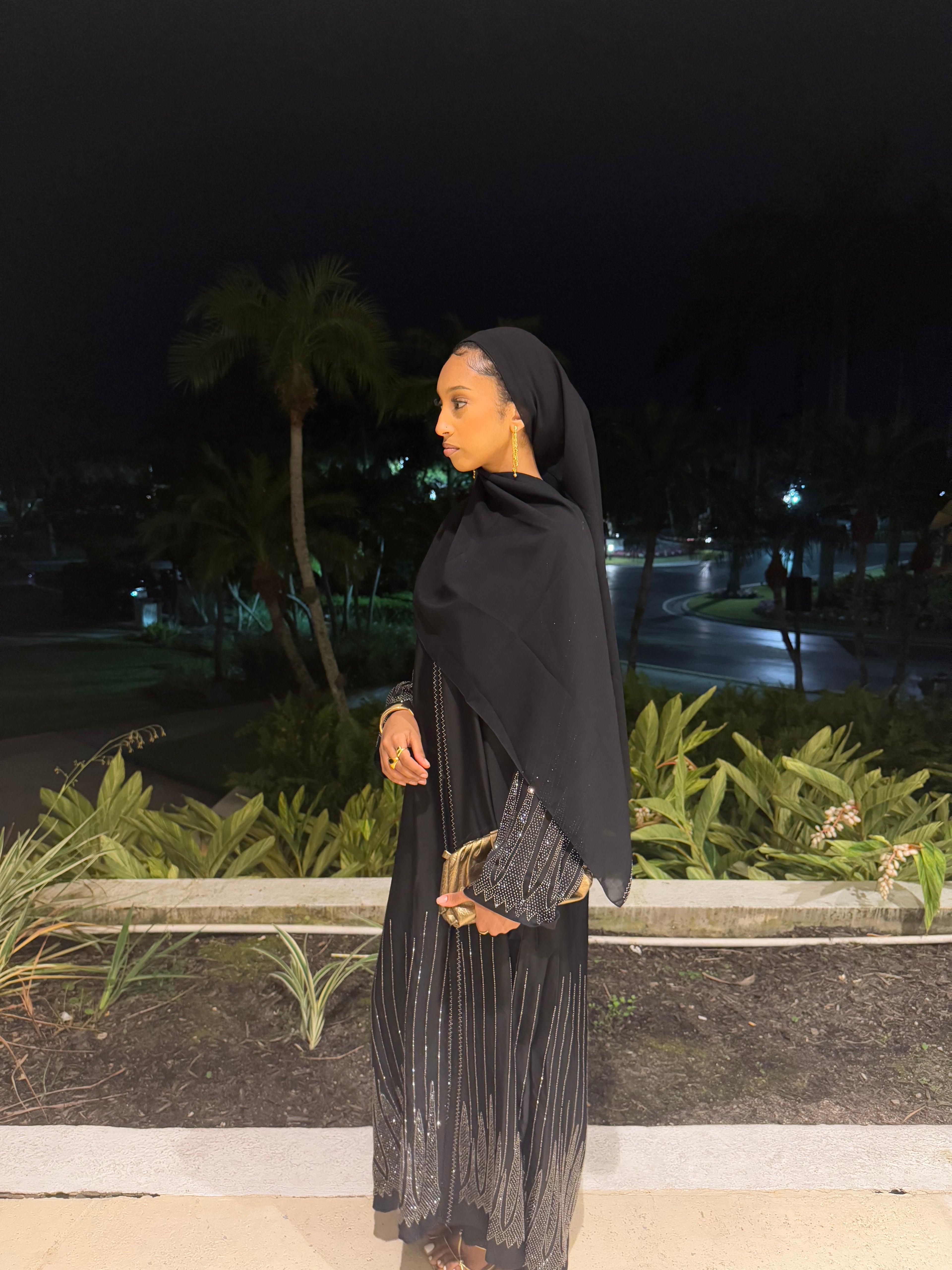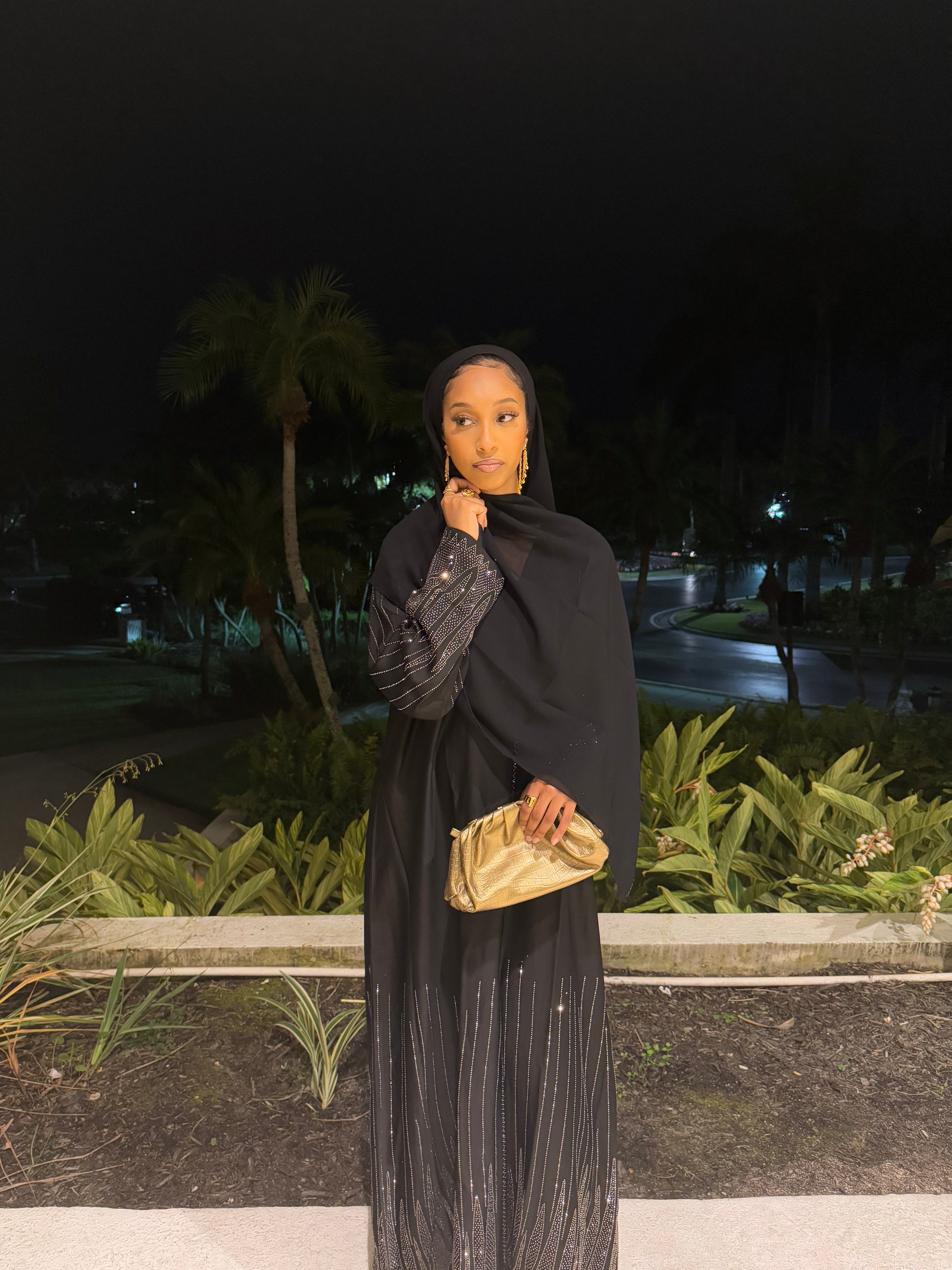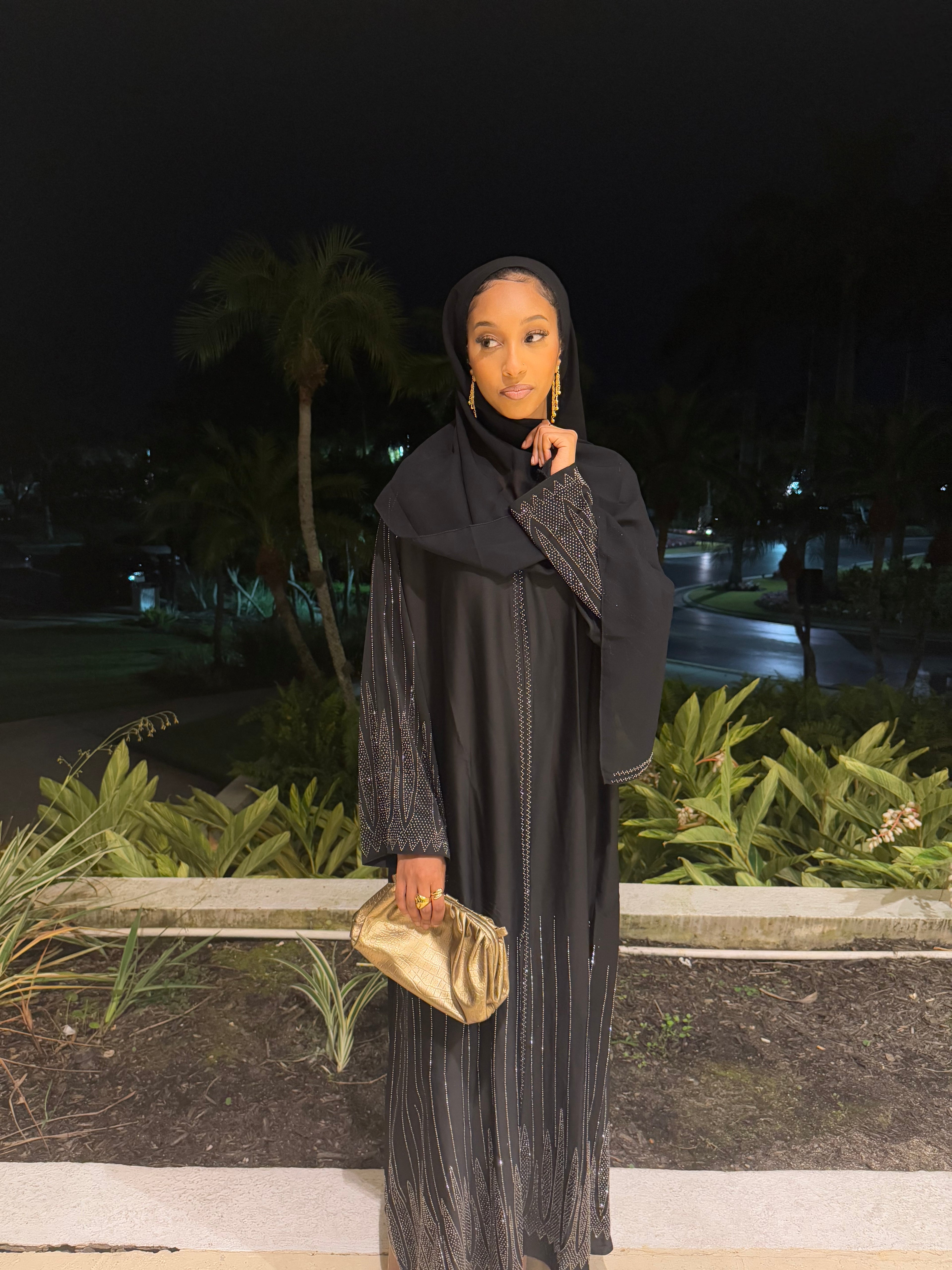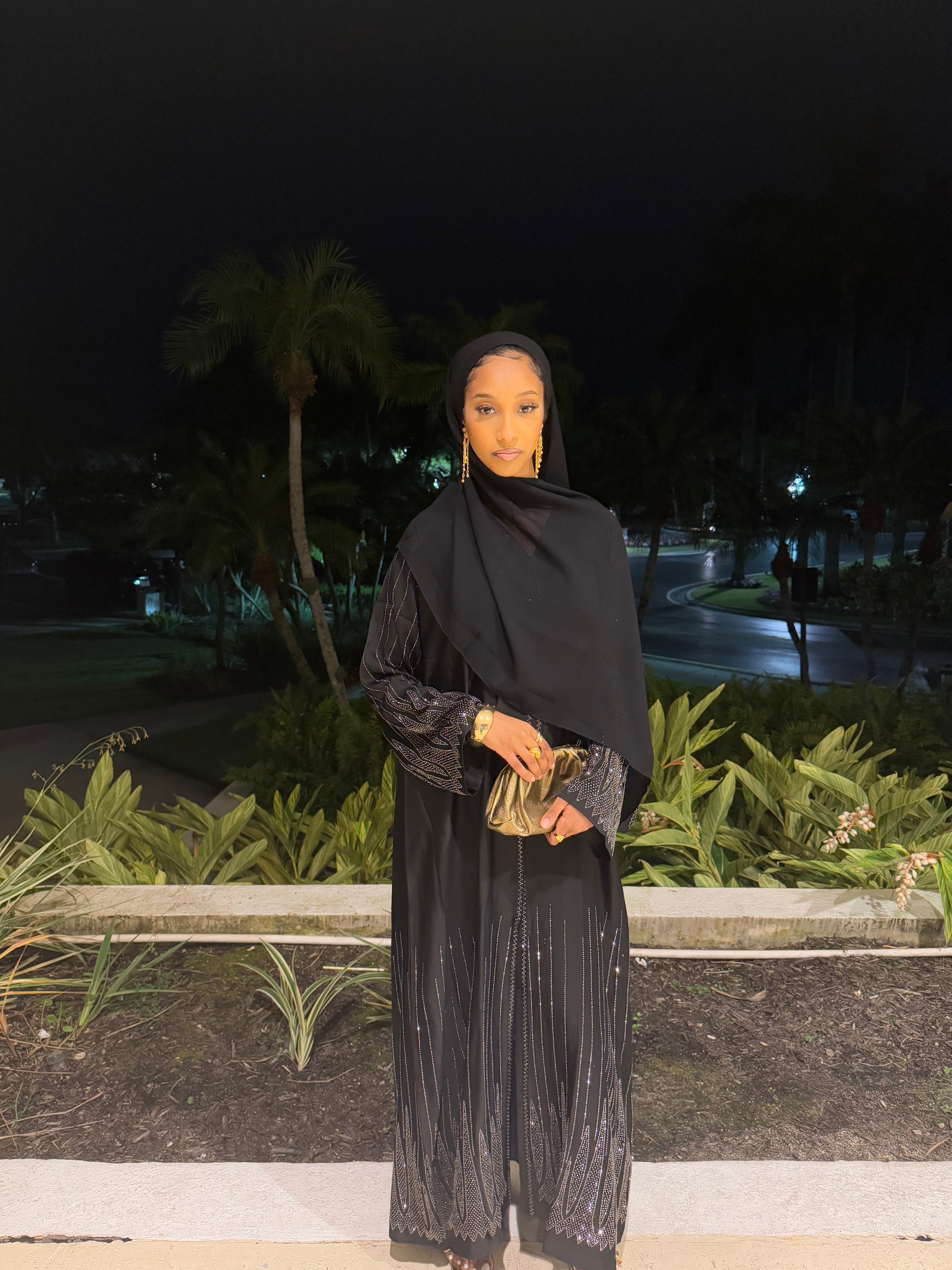 ✨ Layla Black Rhinestone Abaya with Hijab ✨