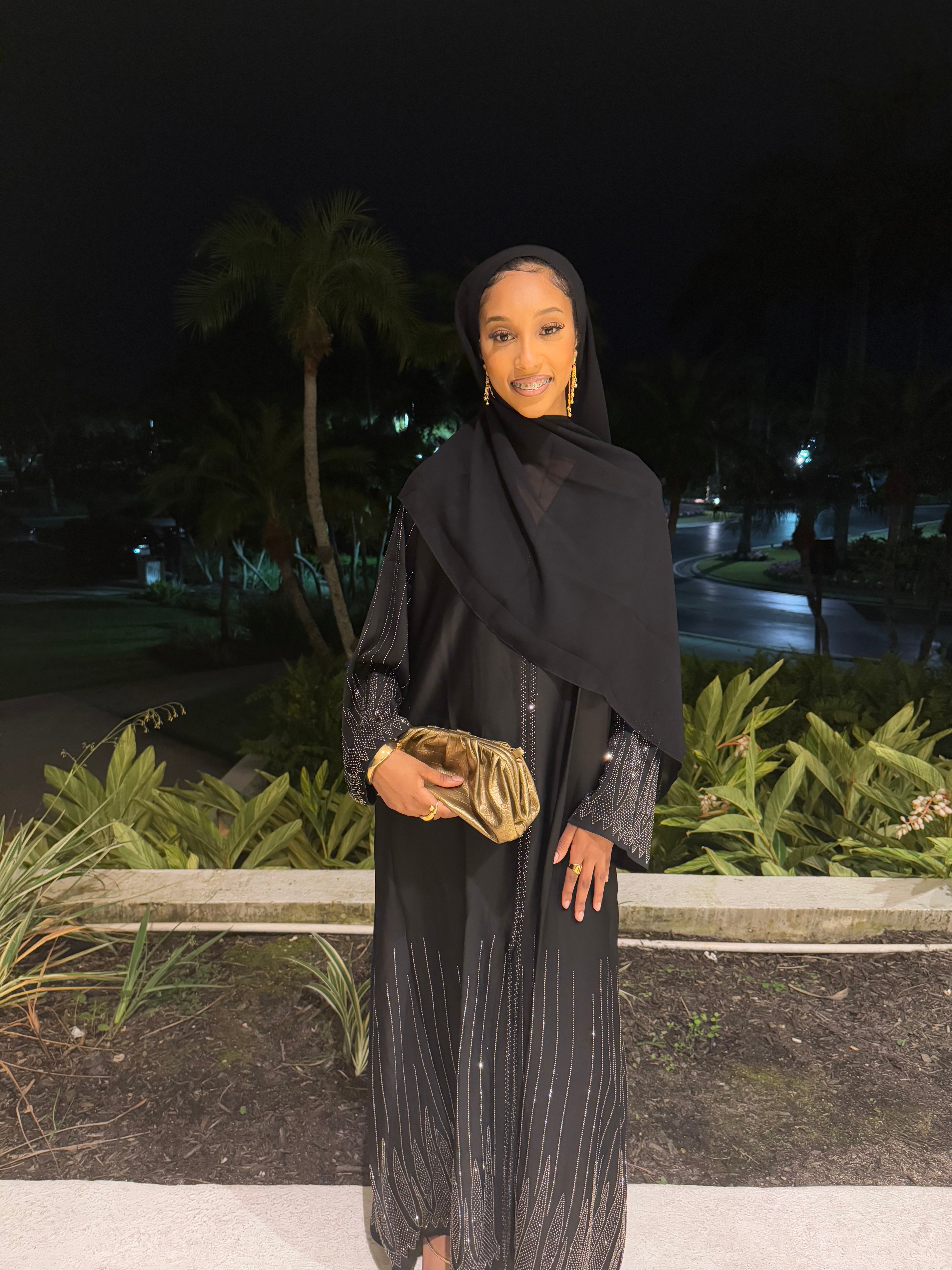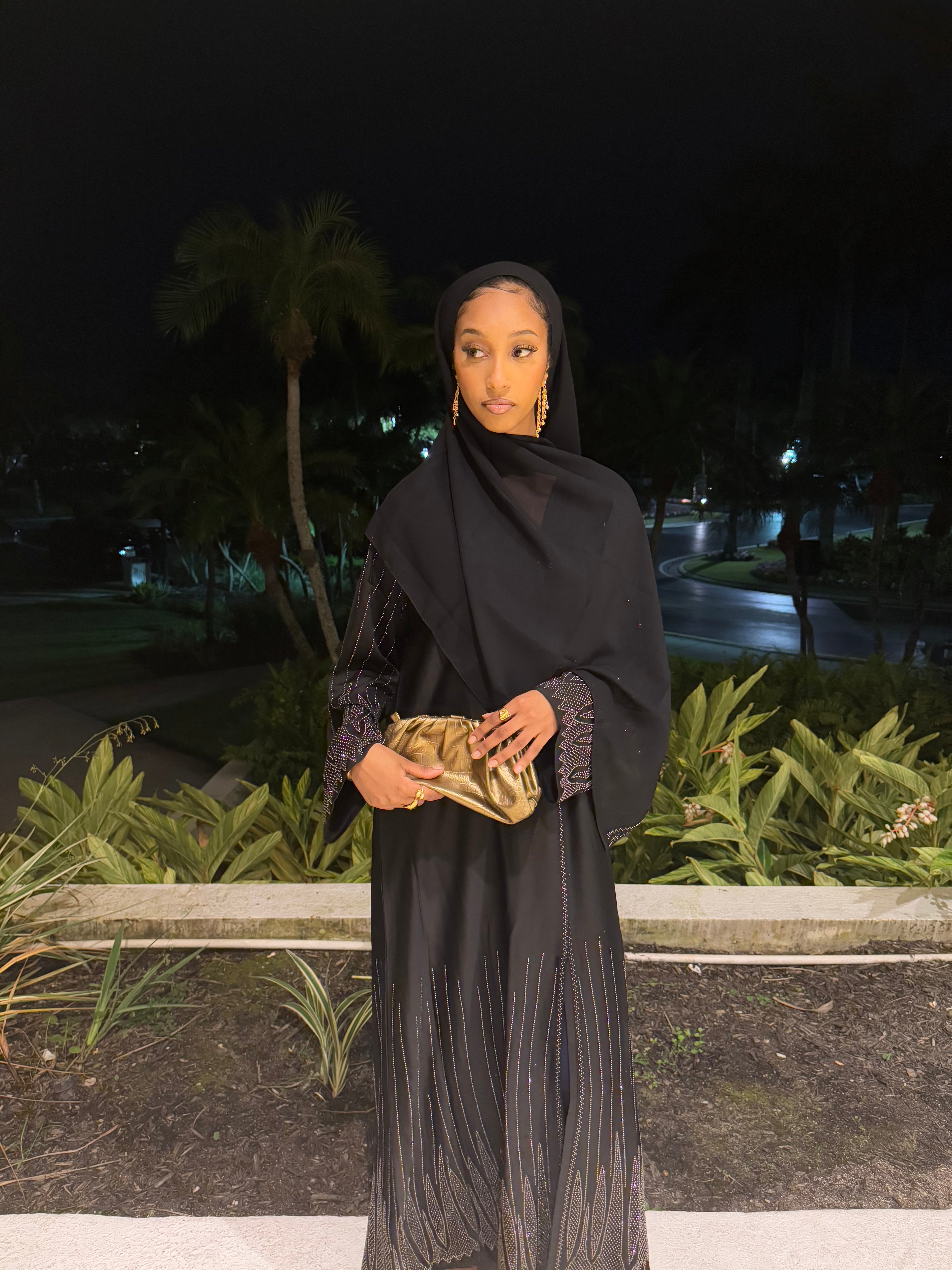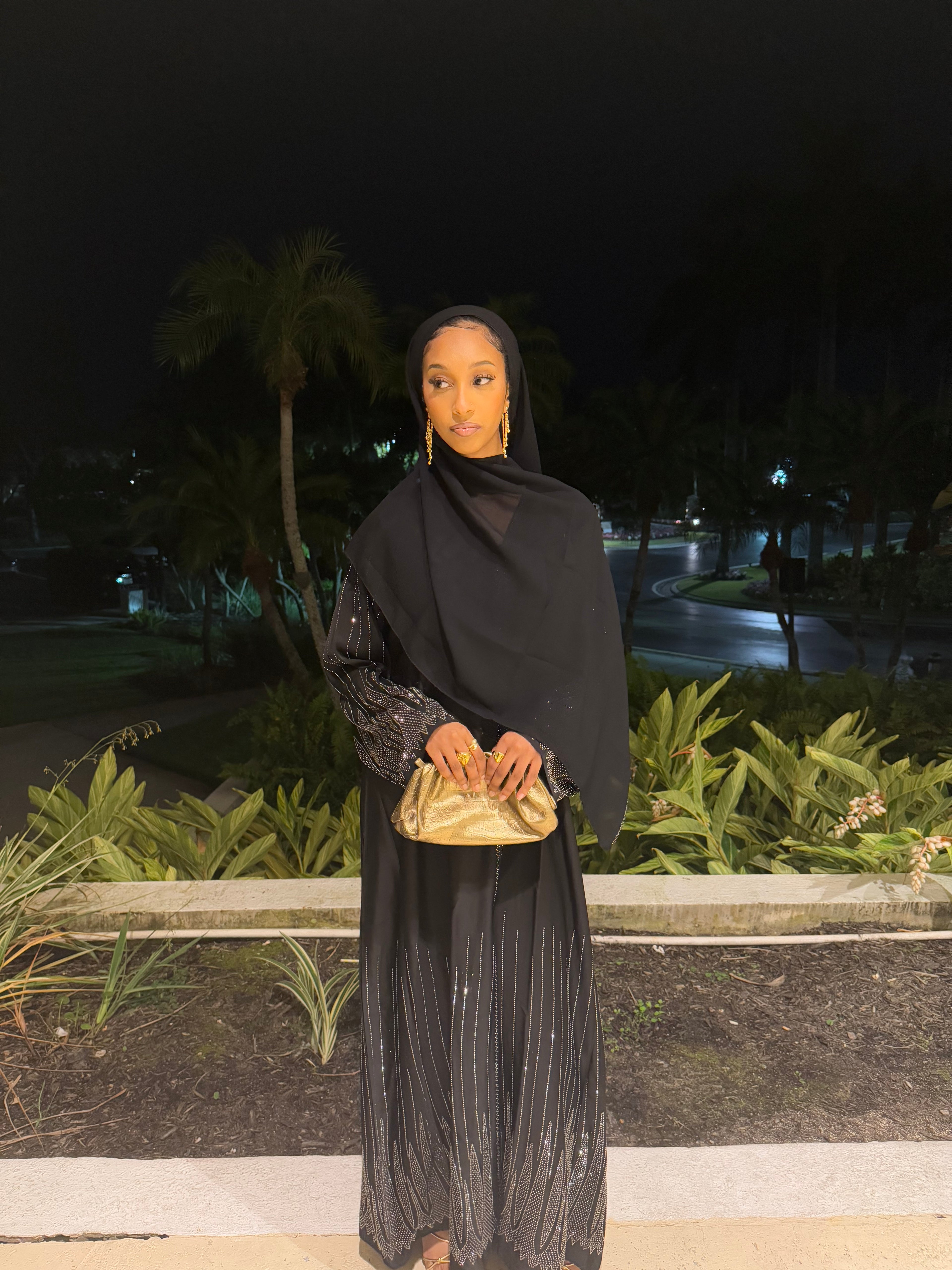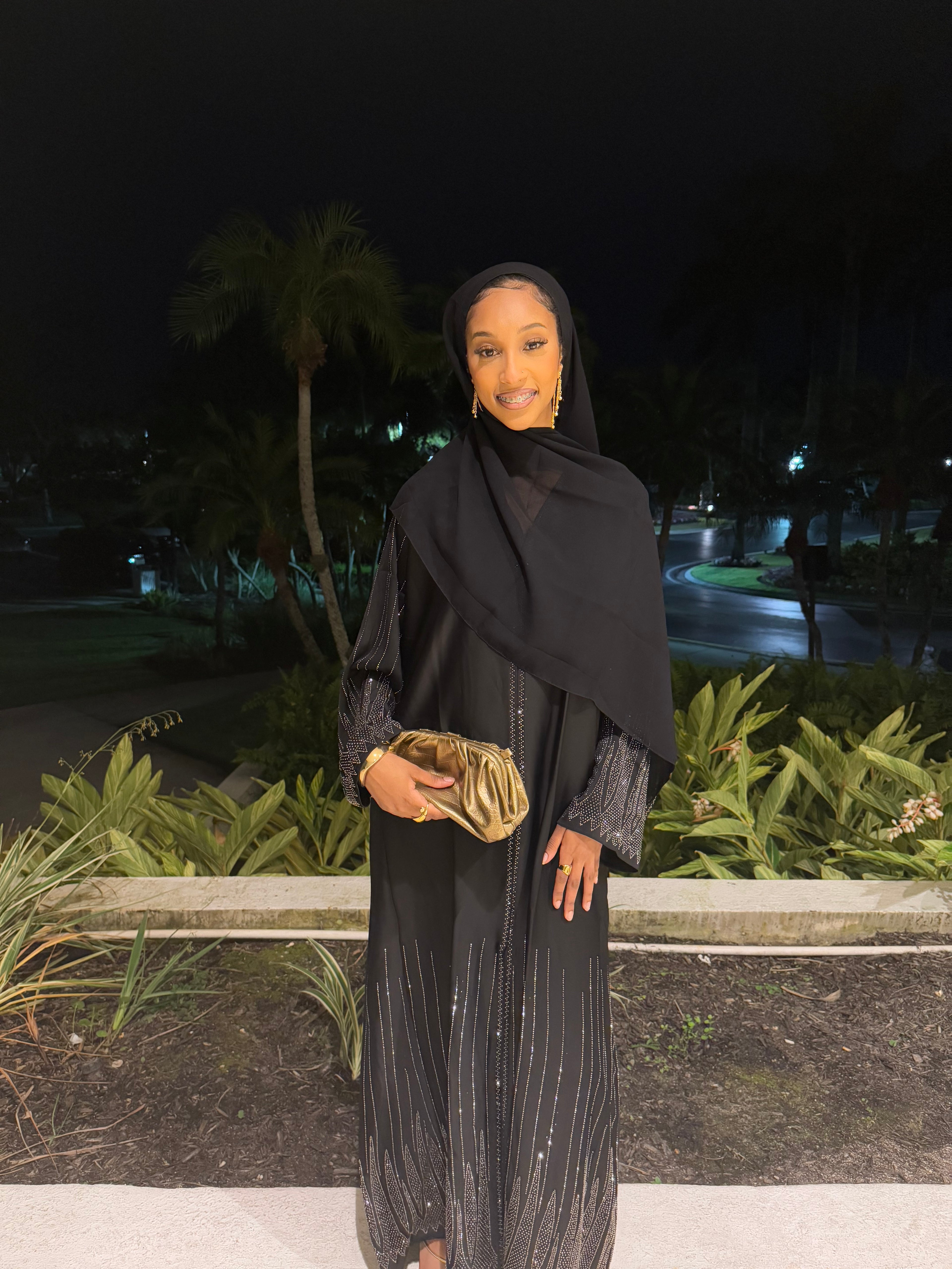 ✨ Layla Black Rhinestone Abaya with Hijab ✨