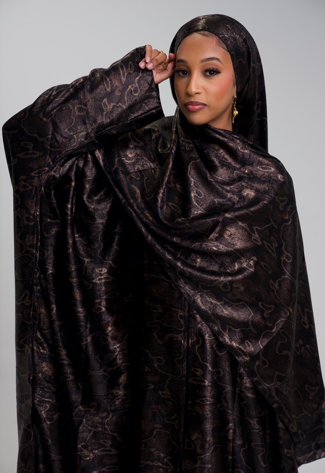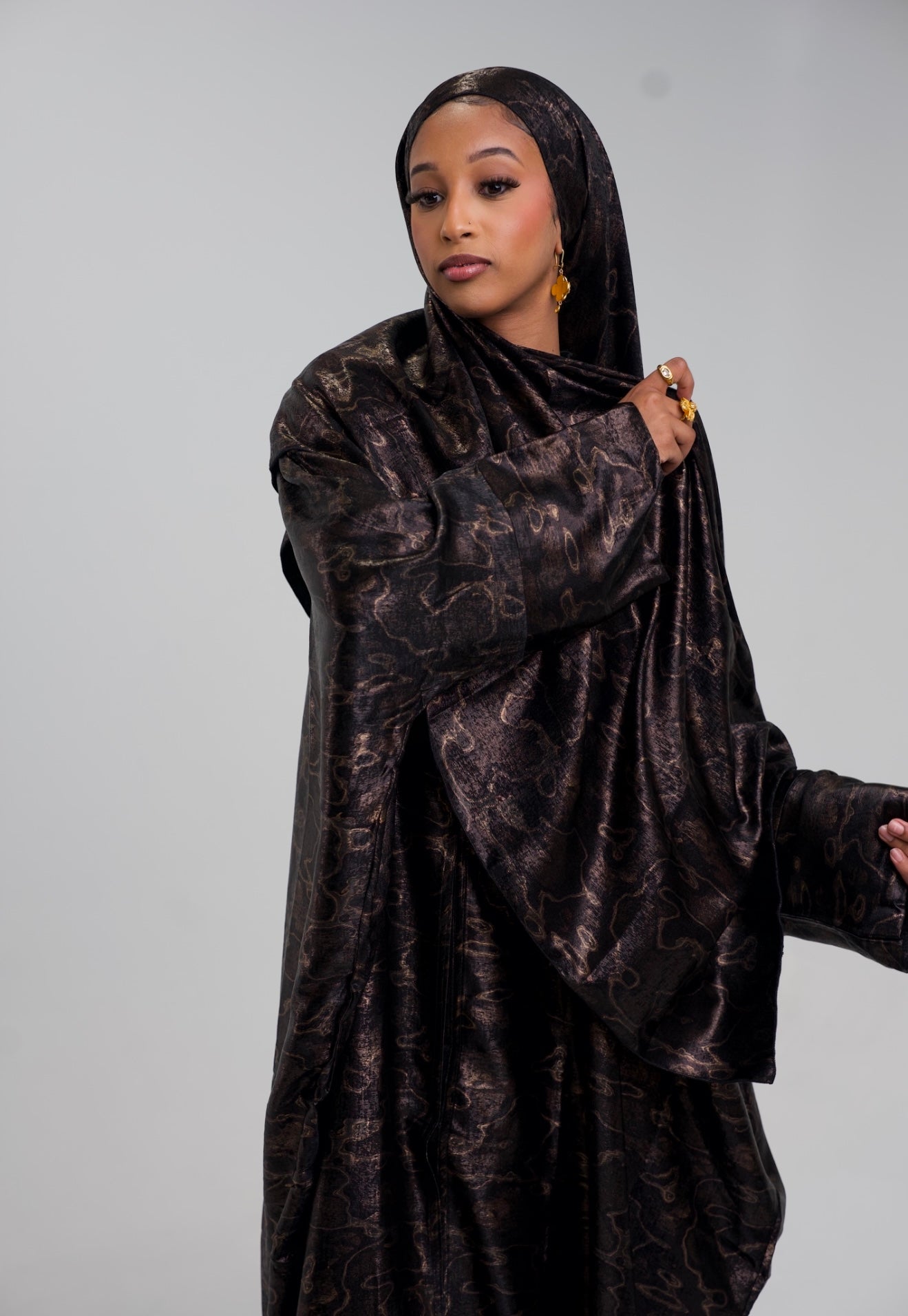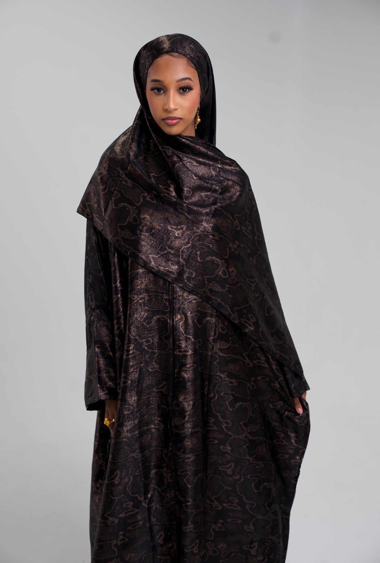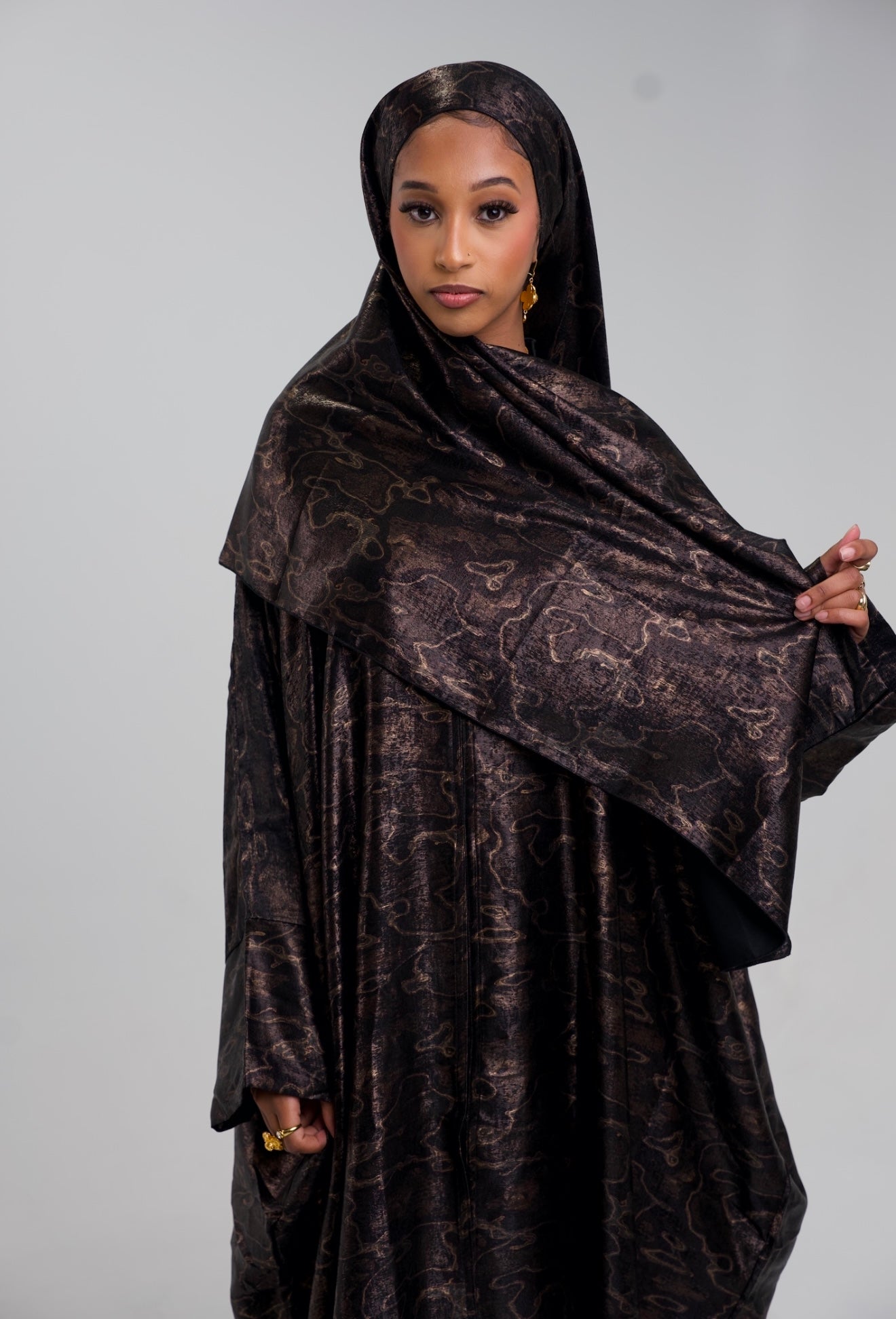 Experience elegance with the Mila Abaya Set. This stunning set includes a matching hijab, perfect for any occasion. The beautiful print adds a touch of sophistication. With the option to wear it open or closed, versatility is key. Button it up and feel confident and stylish all day long.