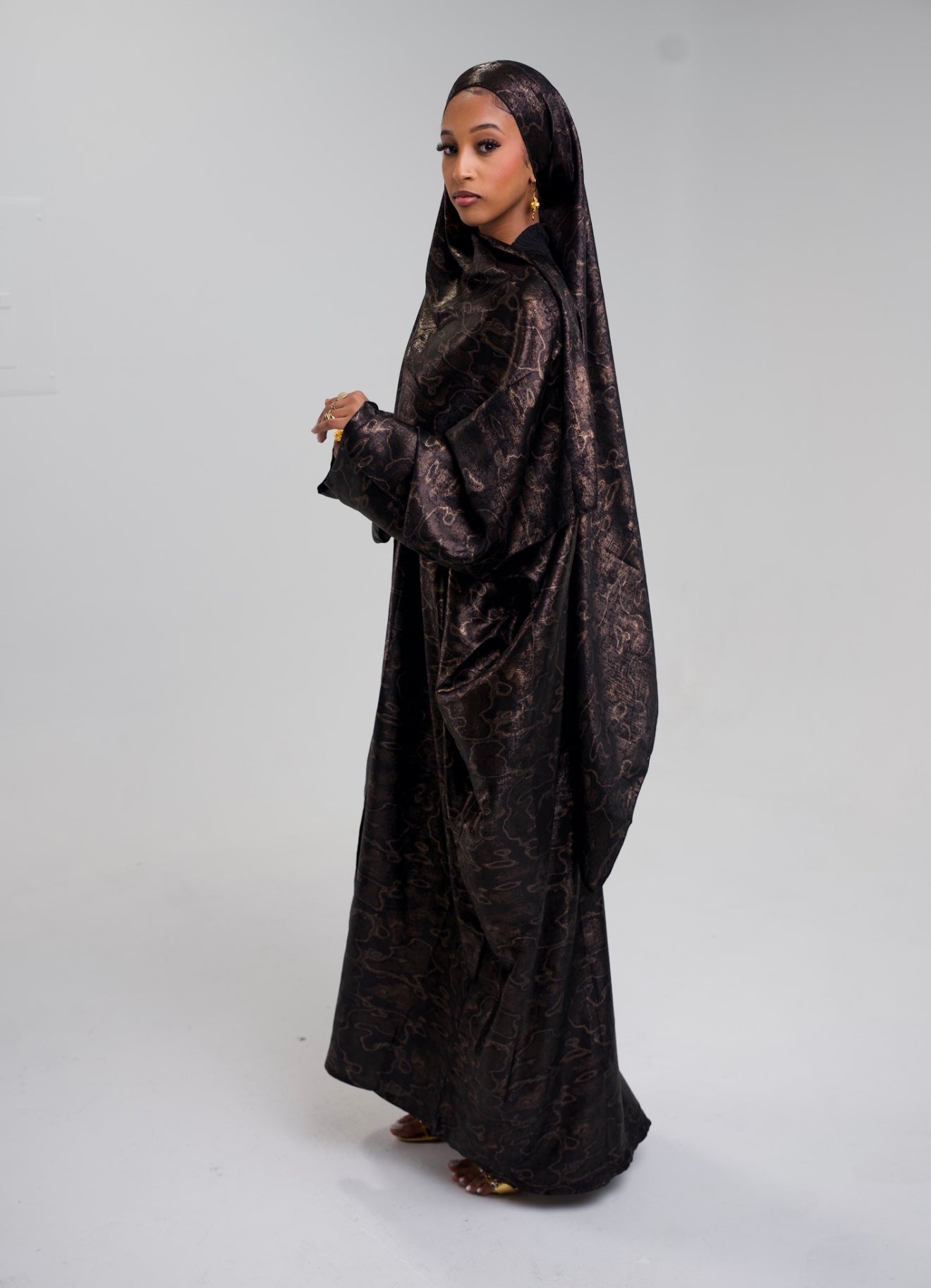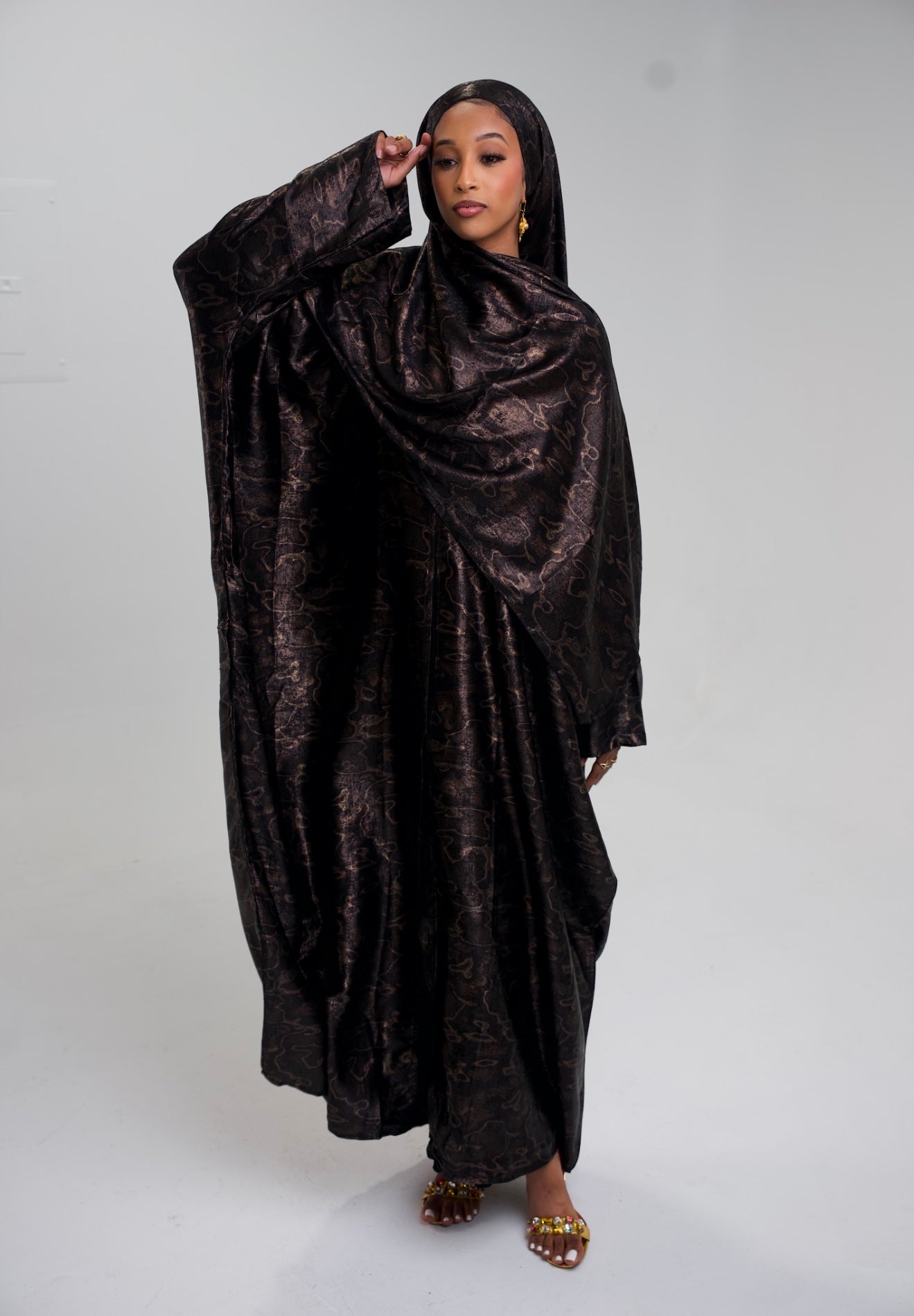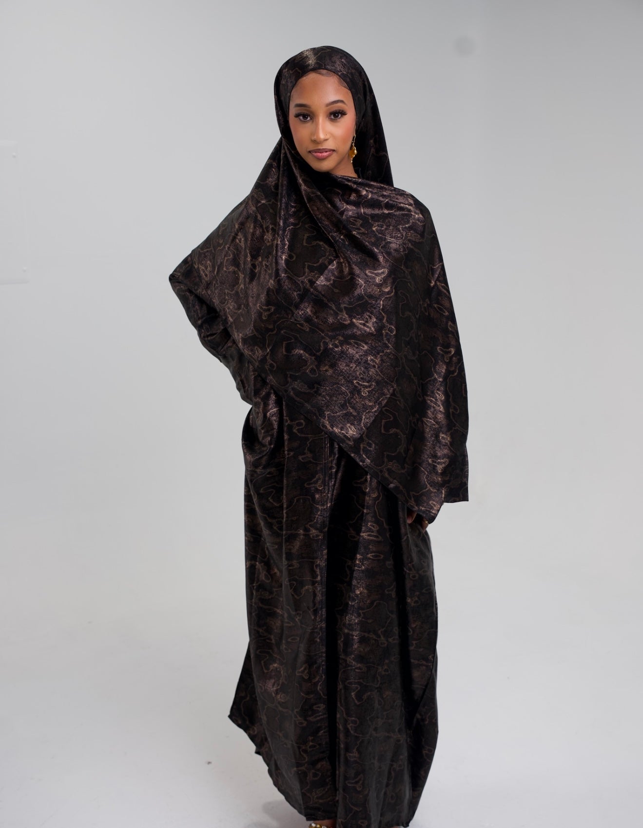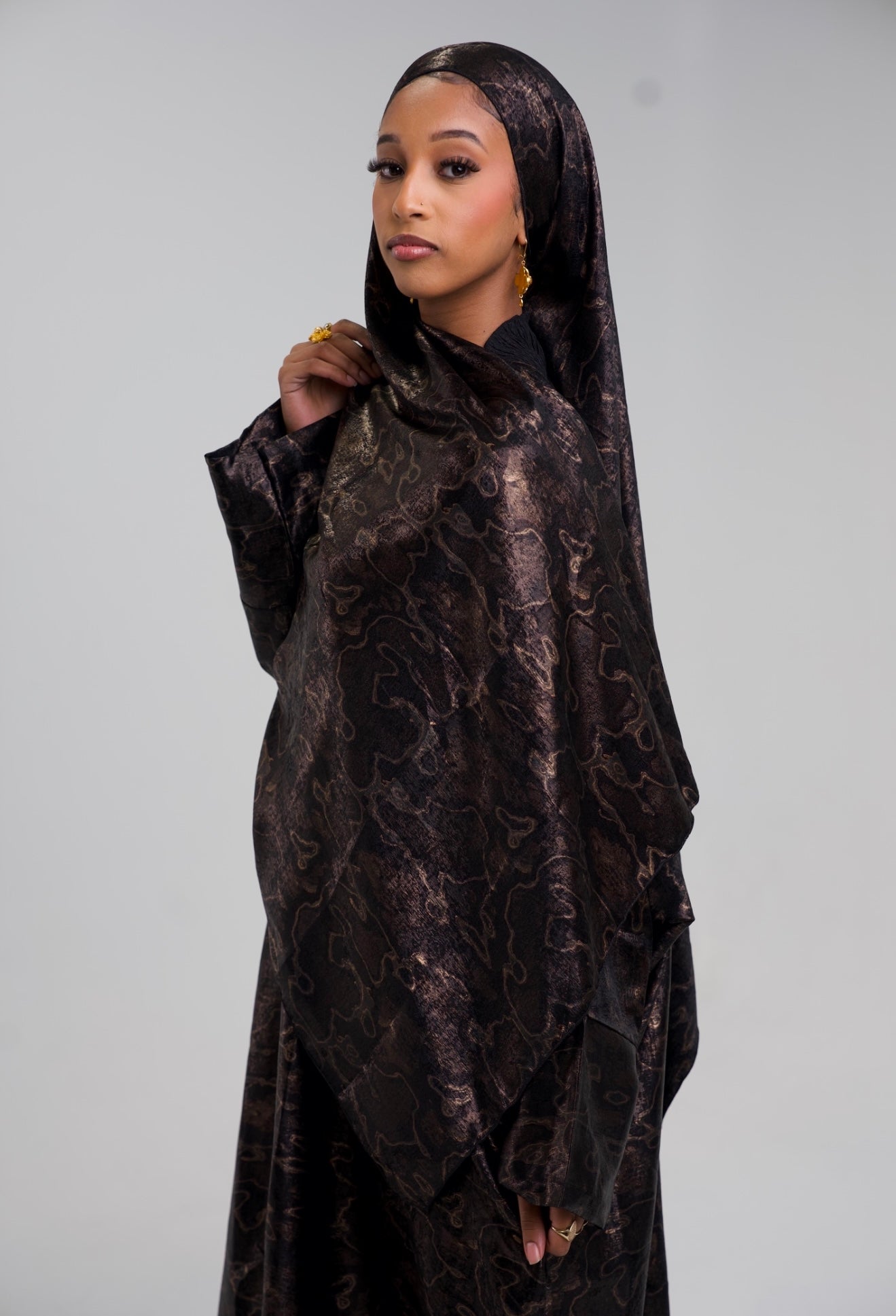 Experience elegance with the Mila Abaya Set. This stunning set includes a matching hijab, perfect for any occasion. The beautiful print adds a touch of sophistication. With the option to wear it open or closed, versatility is key. Button it up and feel confident and stylish all day long.