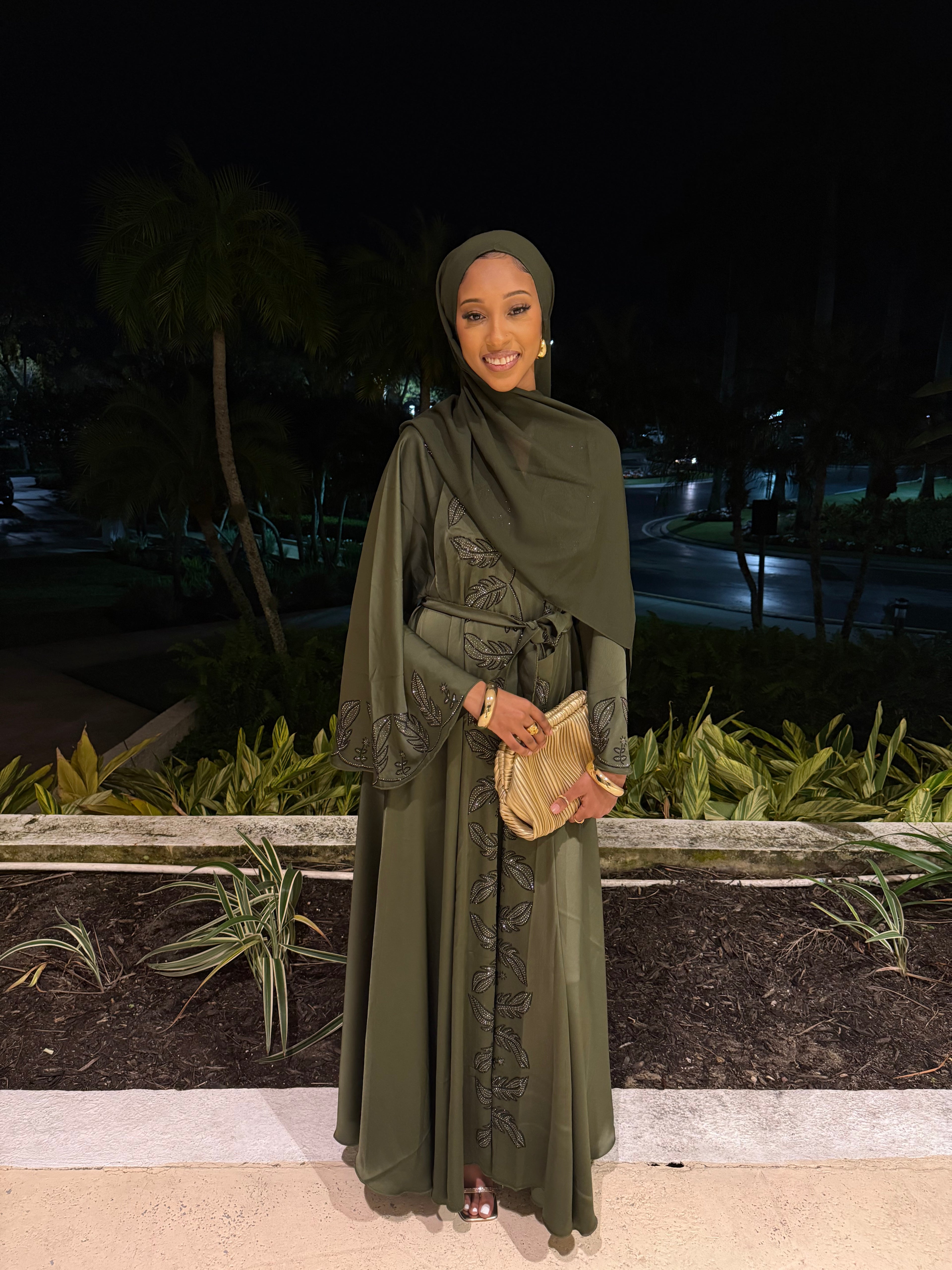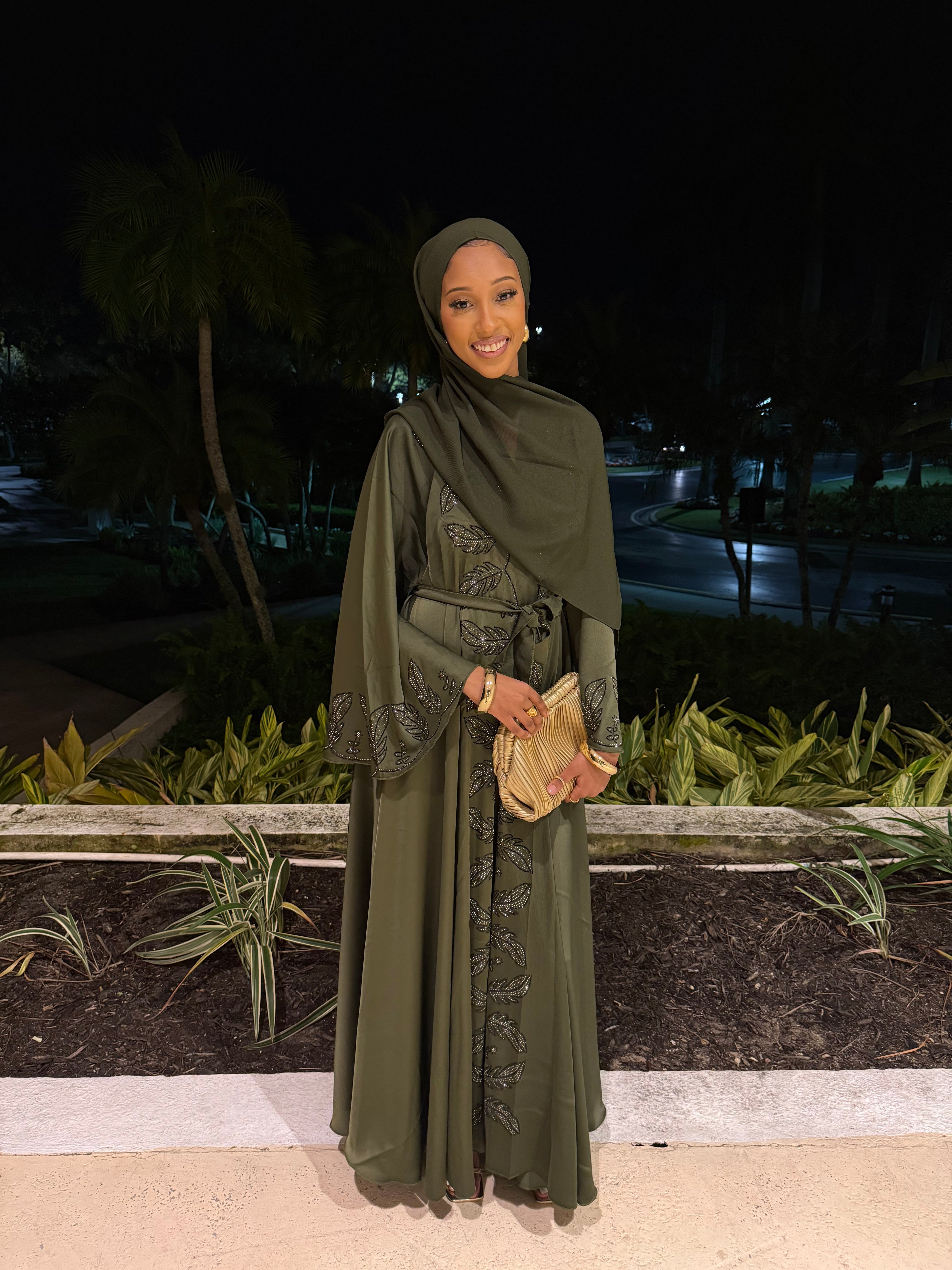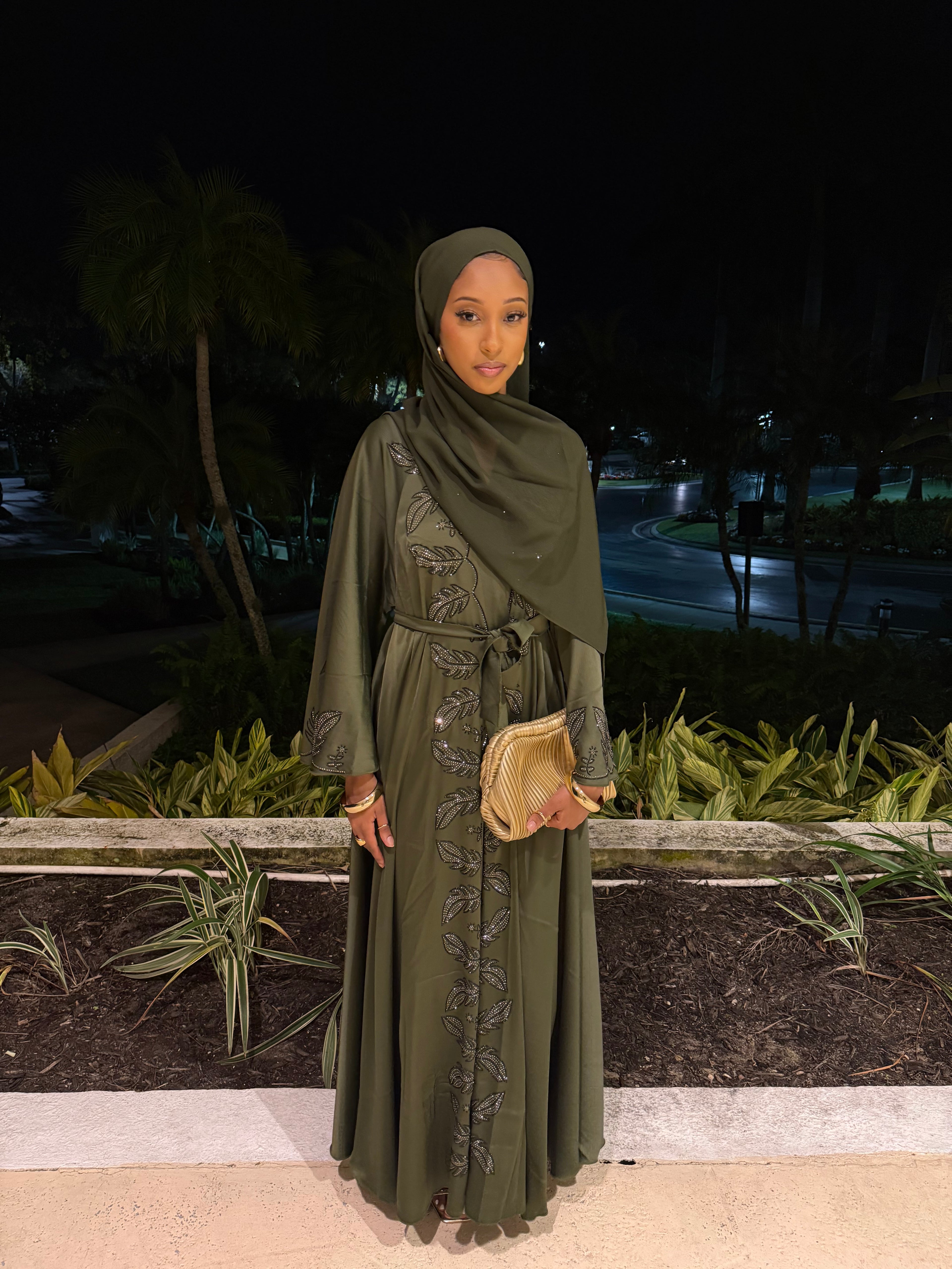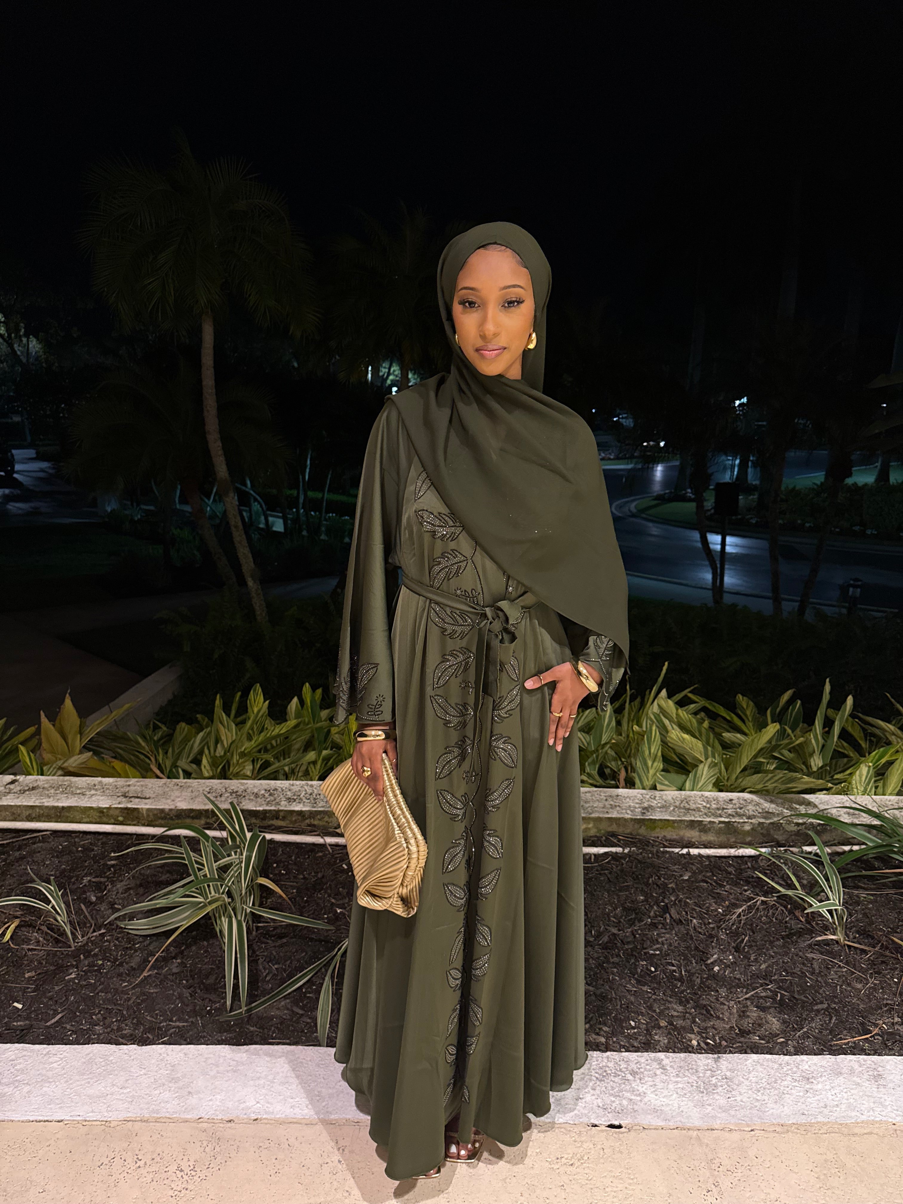 Effortlessly elegant and easy to wear, this closed abaya set is all about timeless beauty. Designed with soft embroidery and a flattering flow, it comes with a matching hijab and belt so you can style it your way. Perfect for evenings out or polished everyday looks; simple, graceful, and made to feel good.