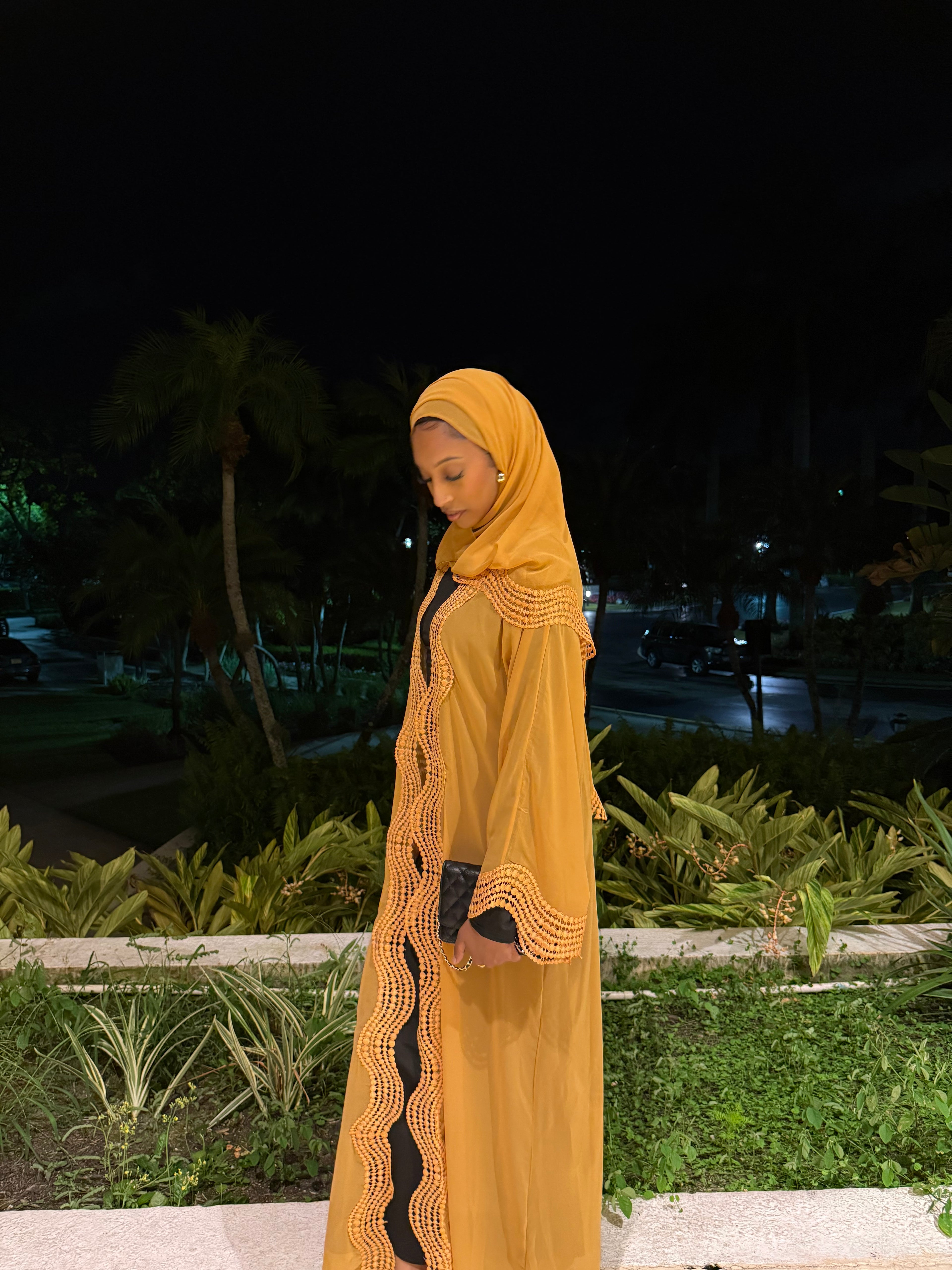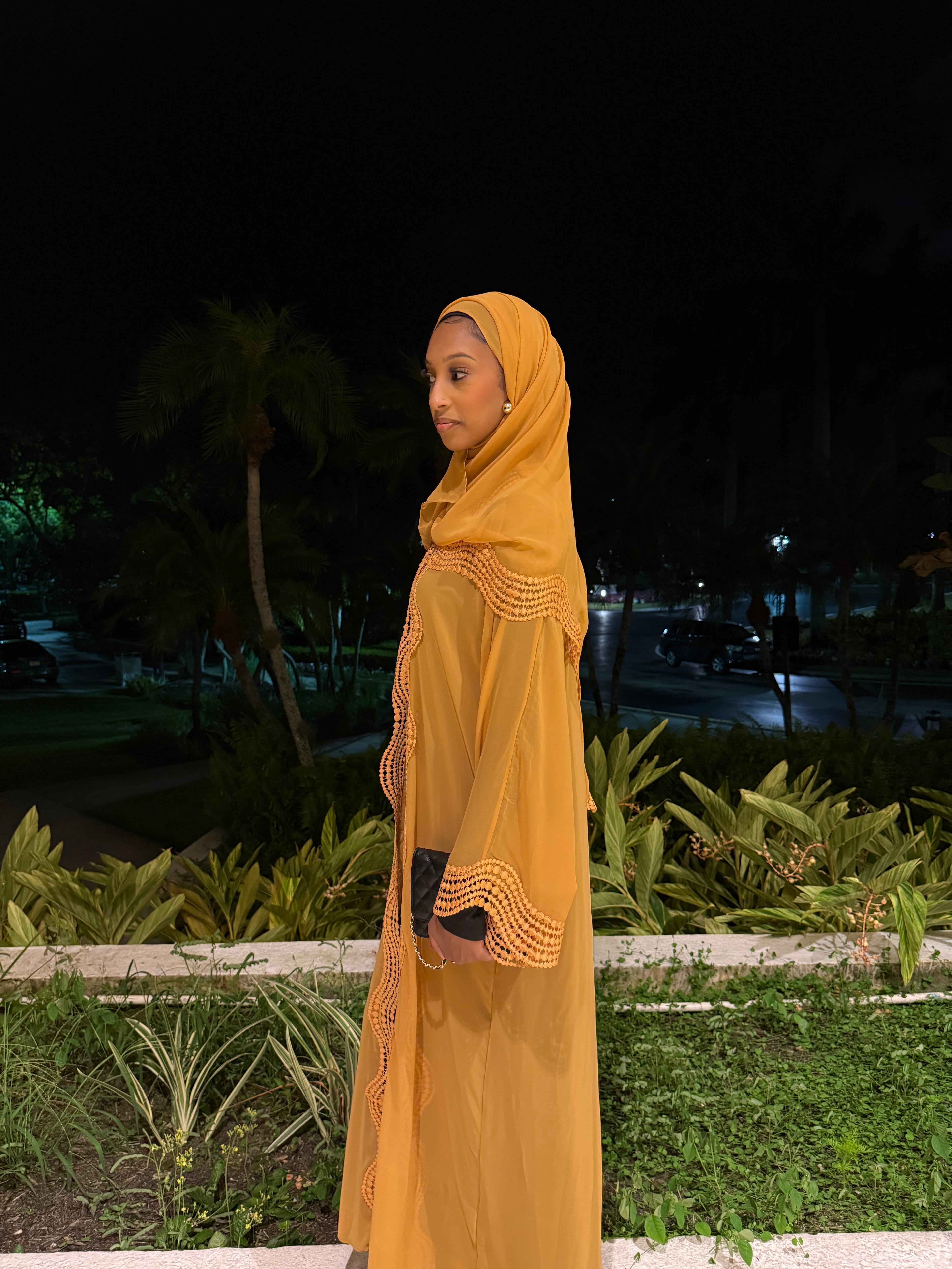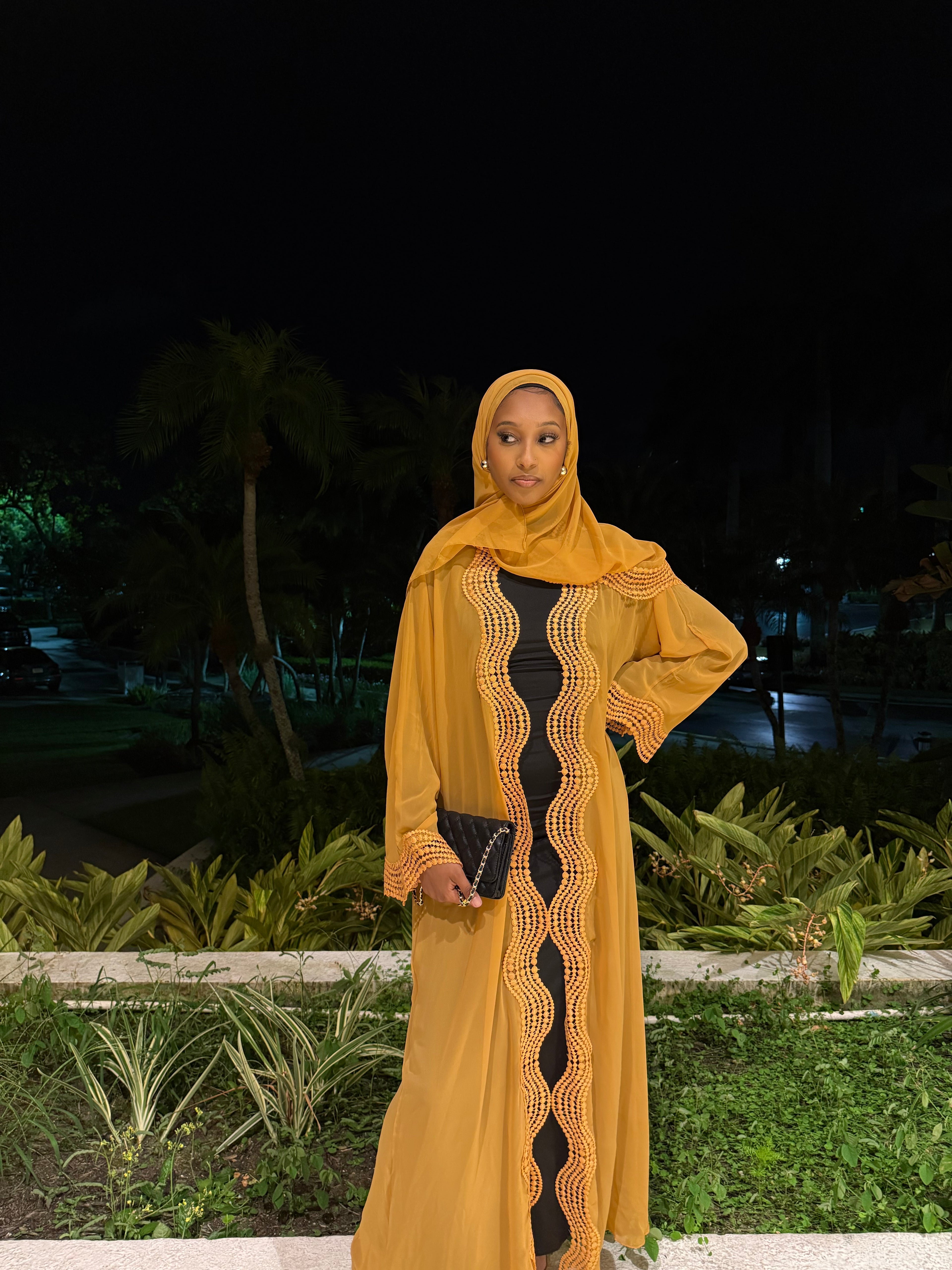 MATERIAL IS SEE THROUGH. Elevate your modest wardrobe with timeless elegance in the Amara Abaya Set. Designed with delicate, floral-inspired embroidery along the front, Amara embodies grace and femininity in every stitch. Its flowing silhouette, lightweight fabric, and coordinated three-piece design make it a refined choice for any occasion — from everyday wear to special gatherings.