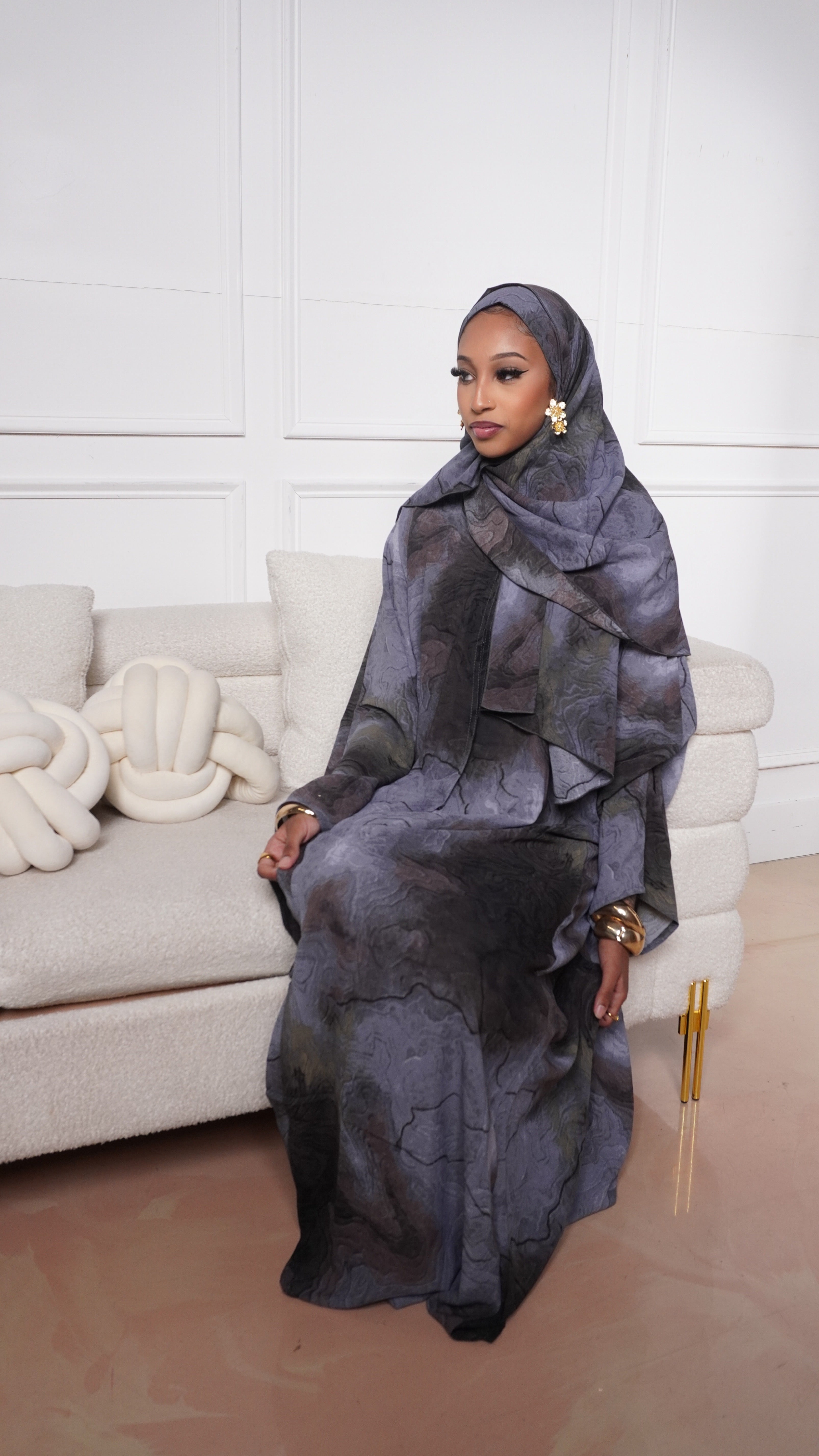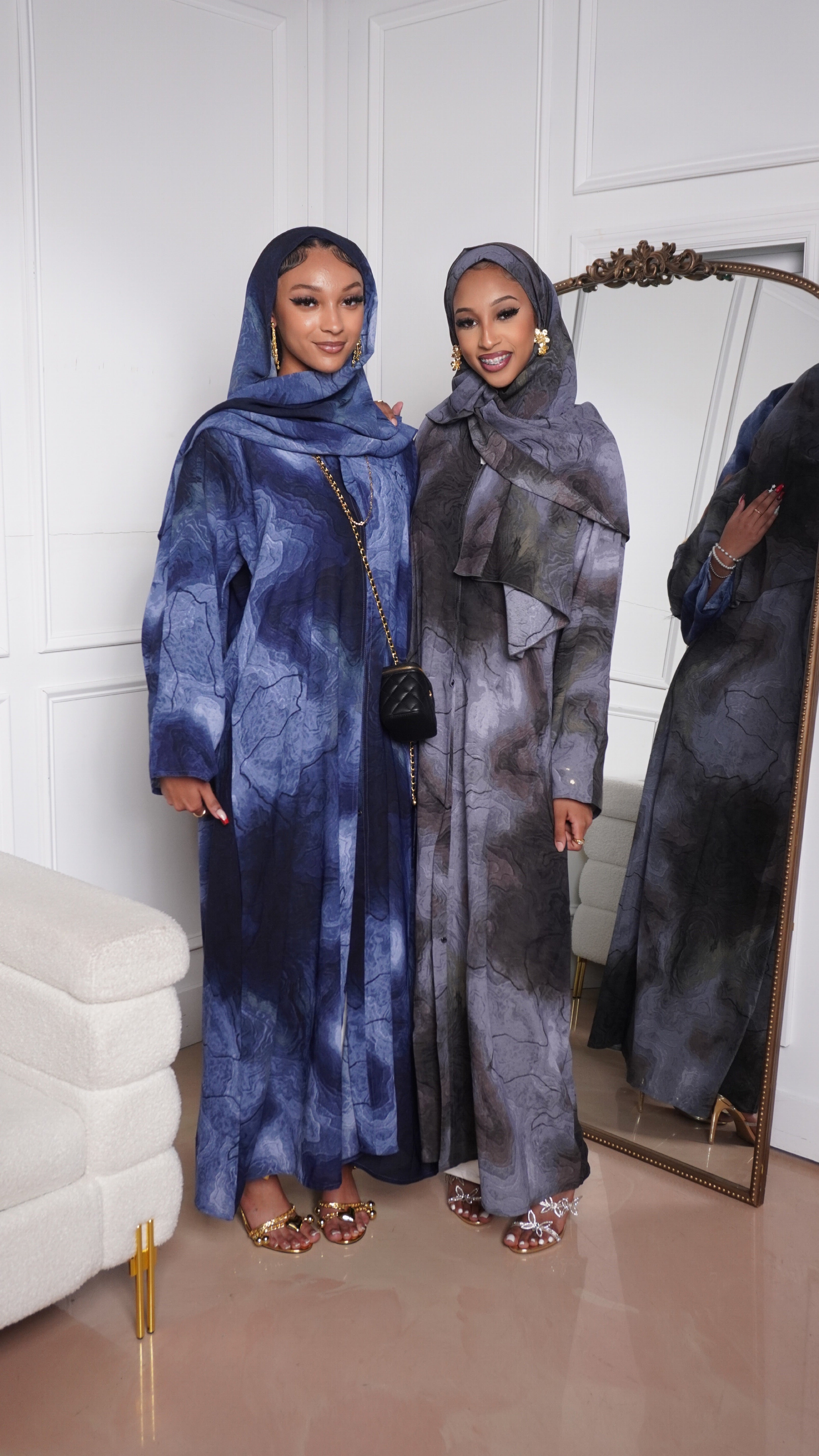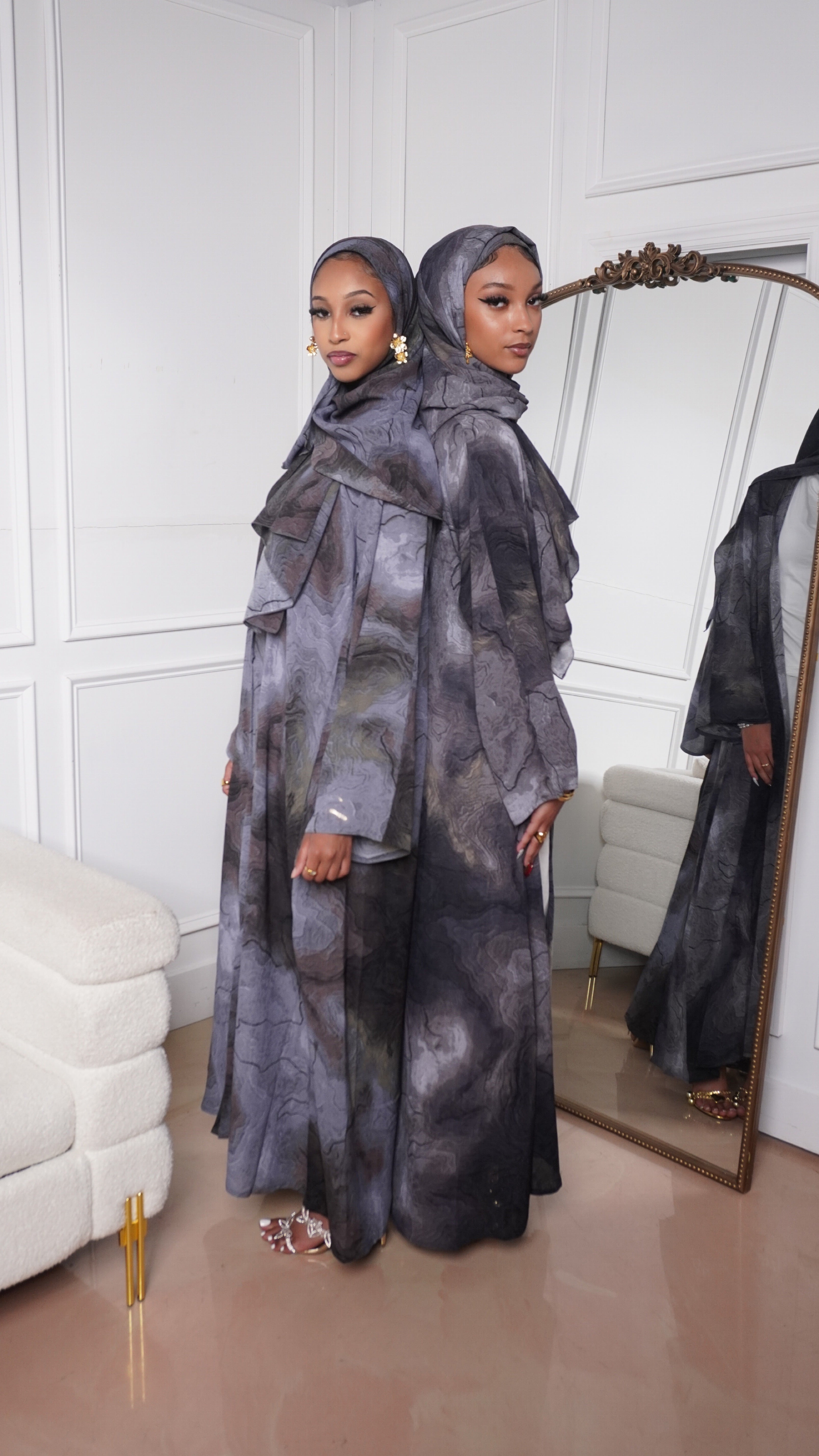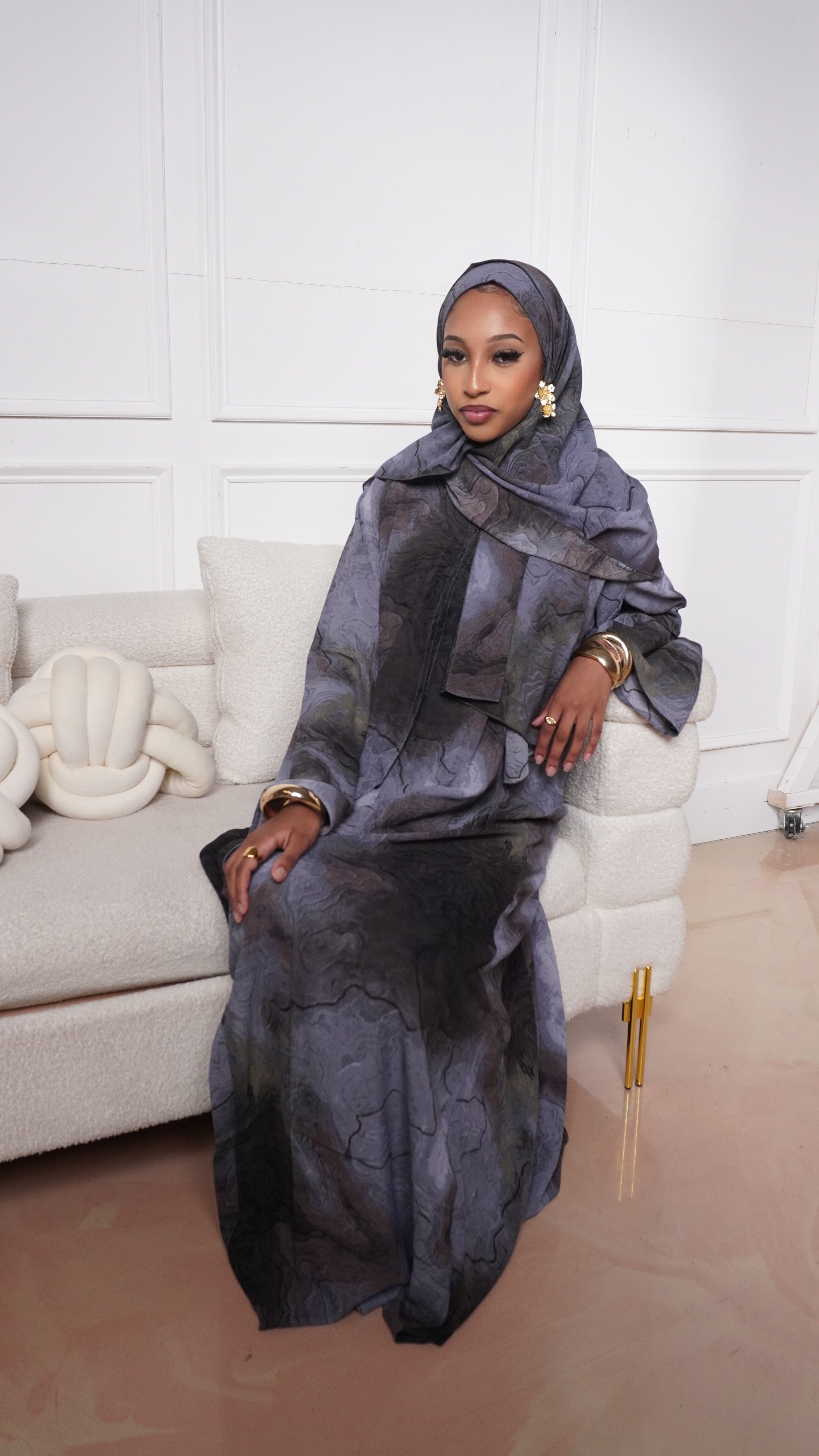 Experience the elegance of our Watercolor Printed Abaya Set, featuring a
