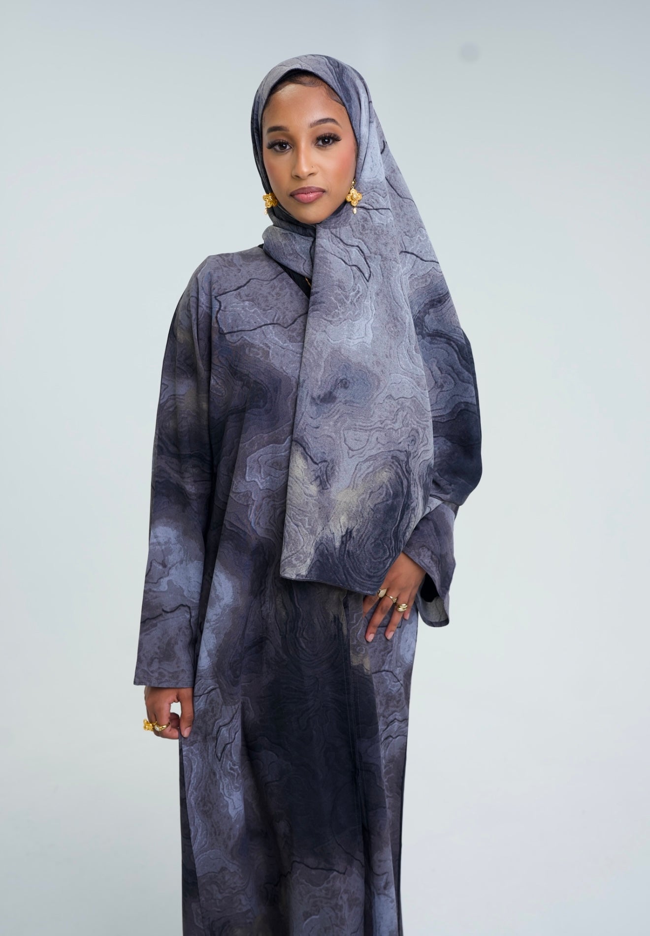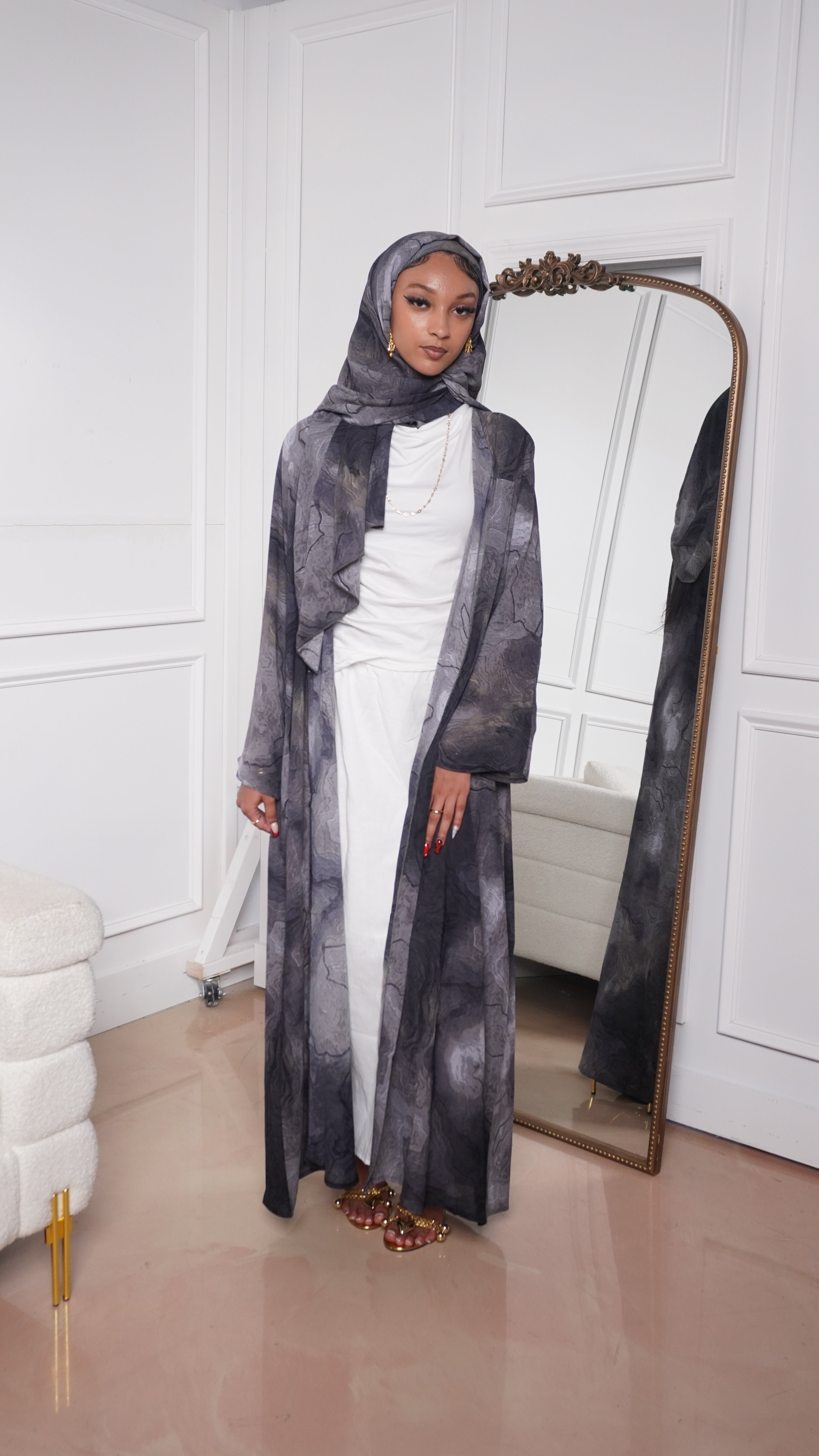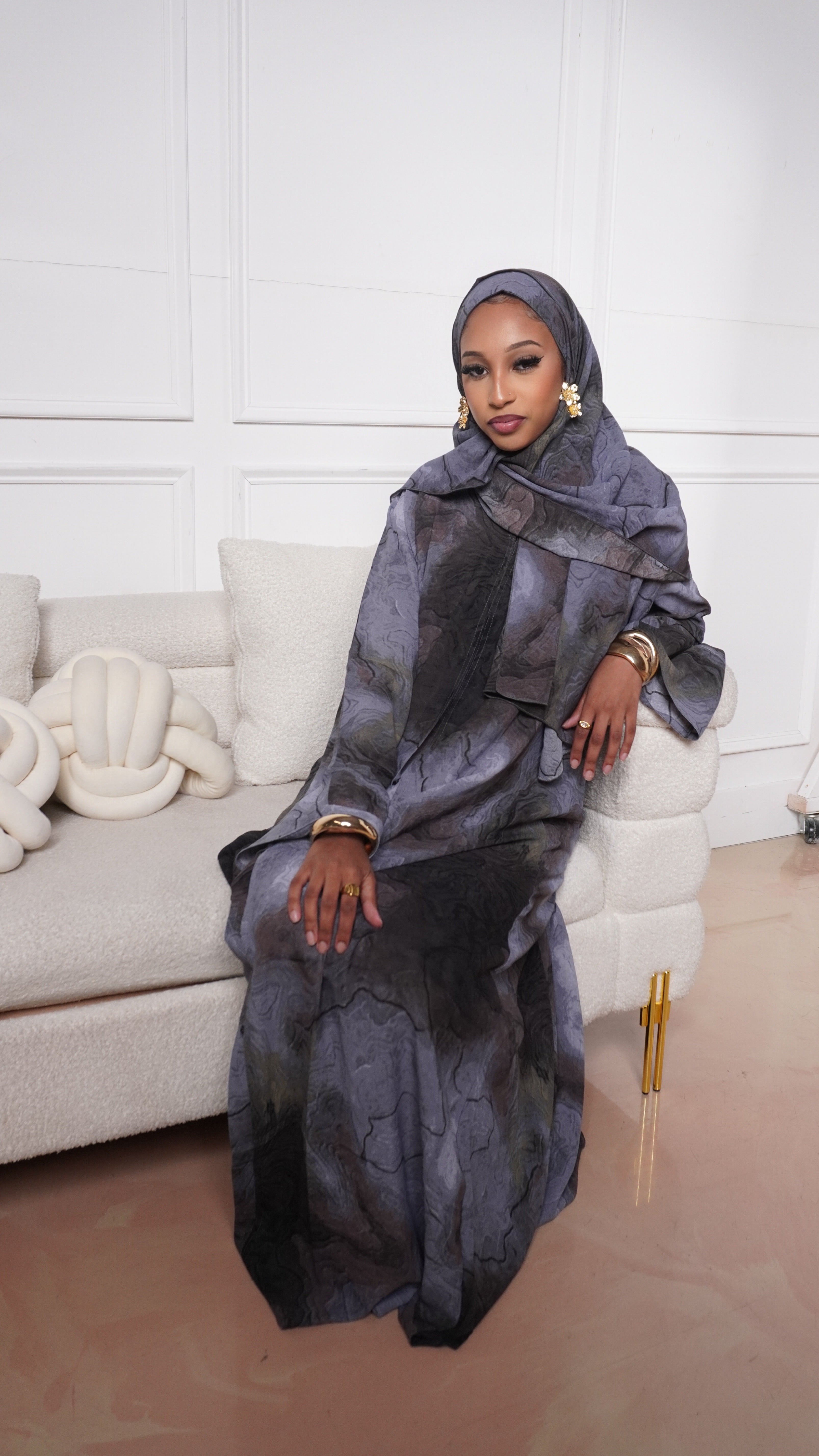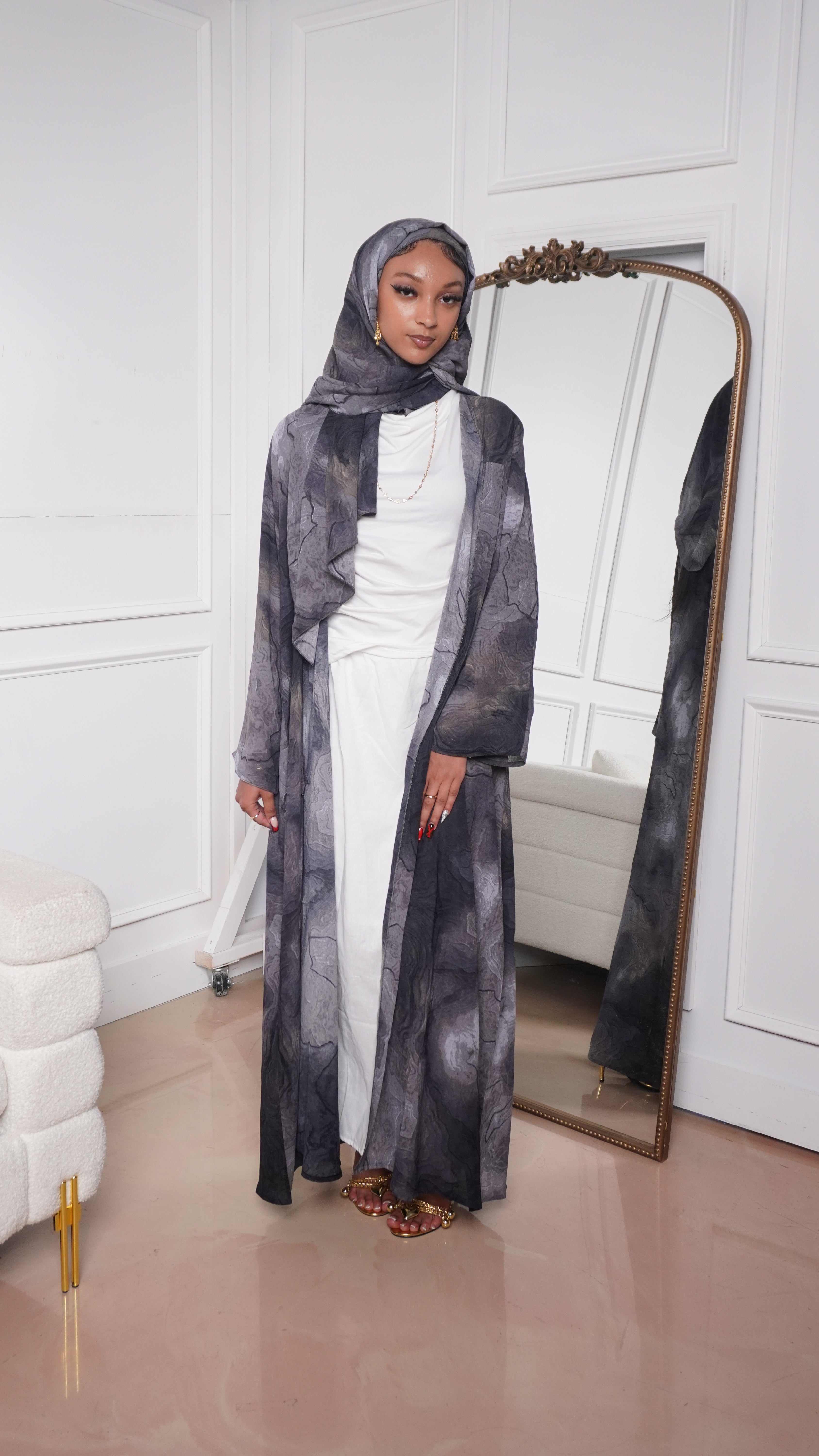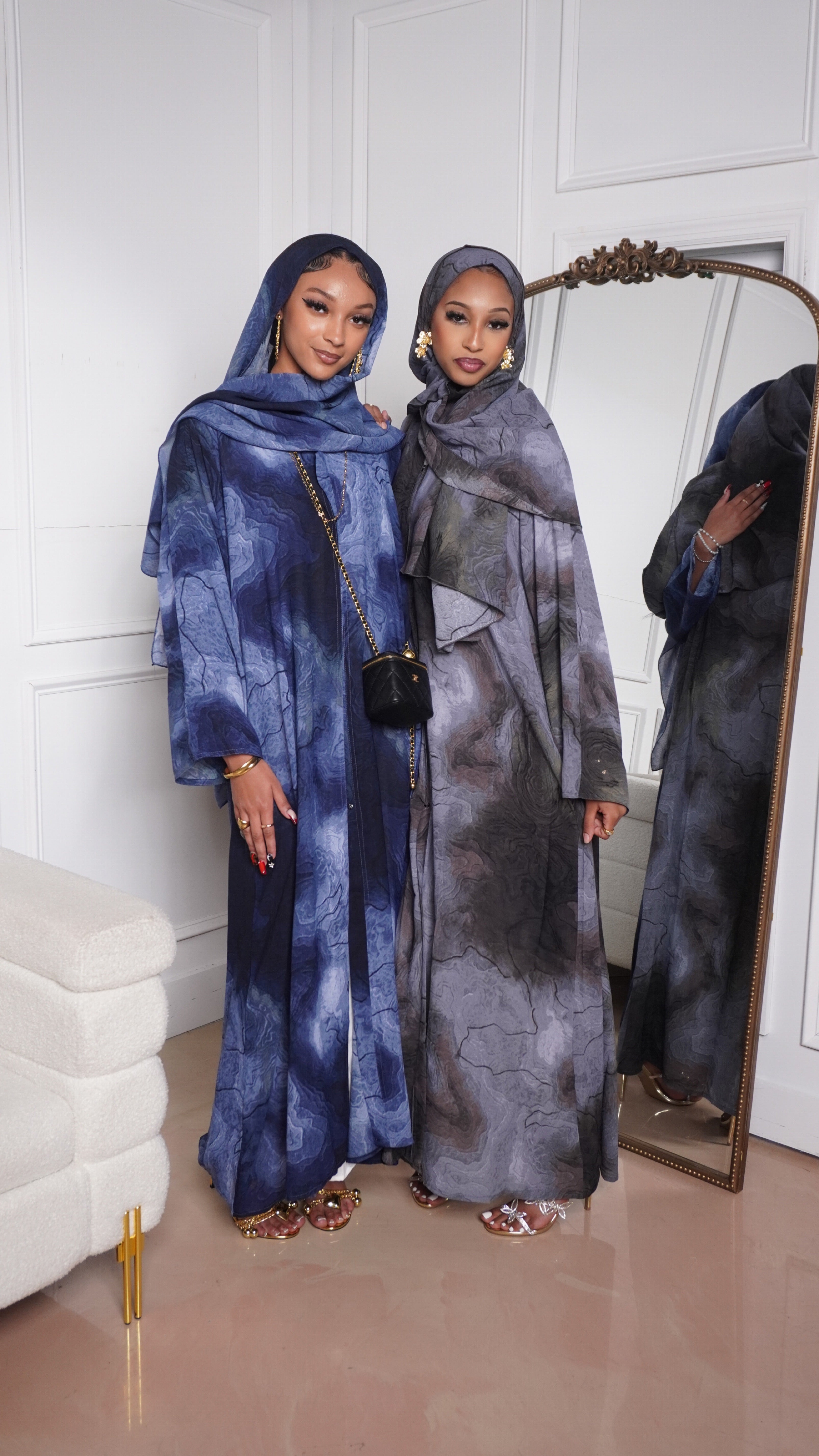 Experience the elegance of our Watercolor Printed Abaya Set, featuring a