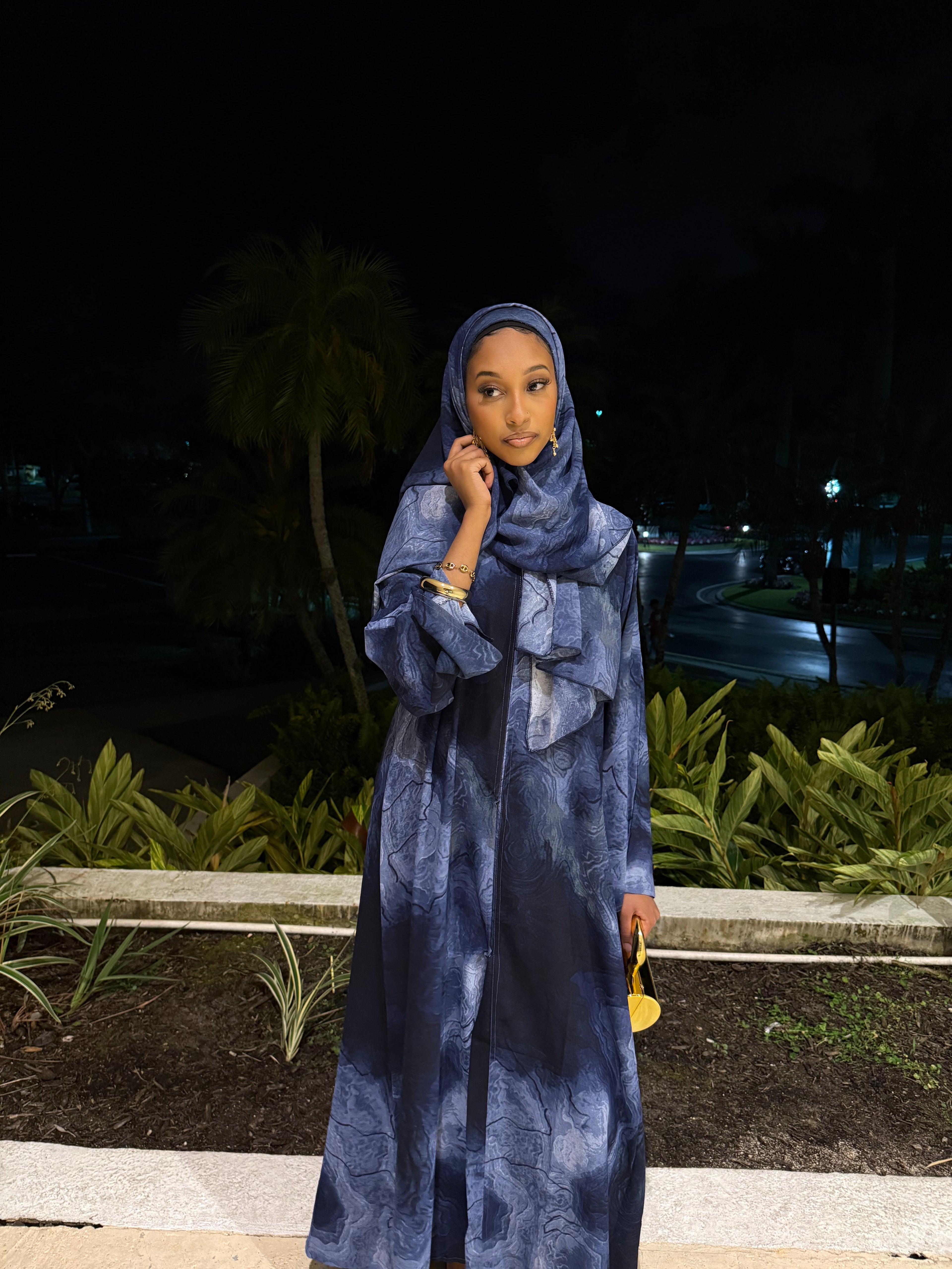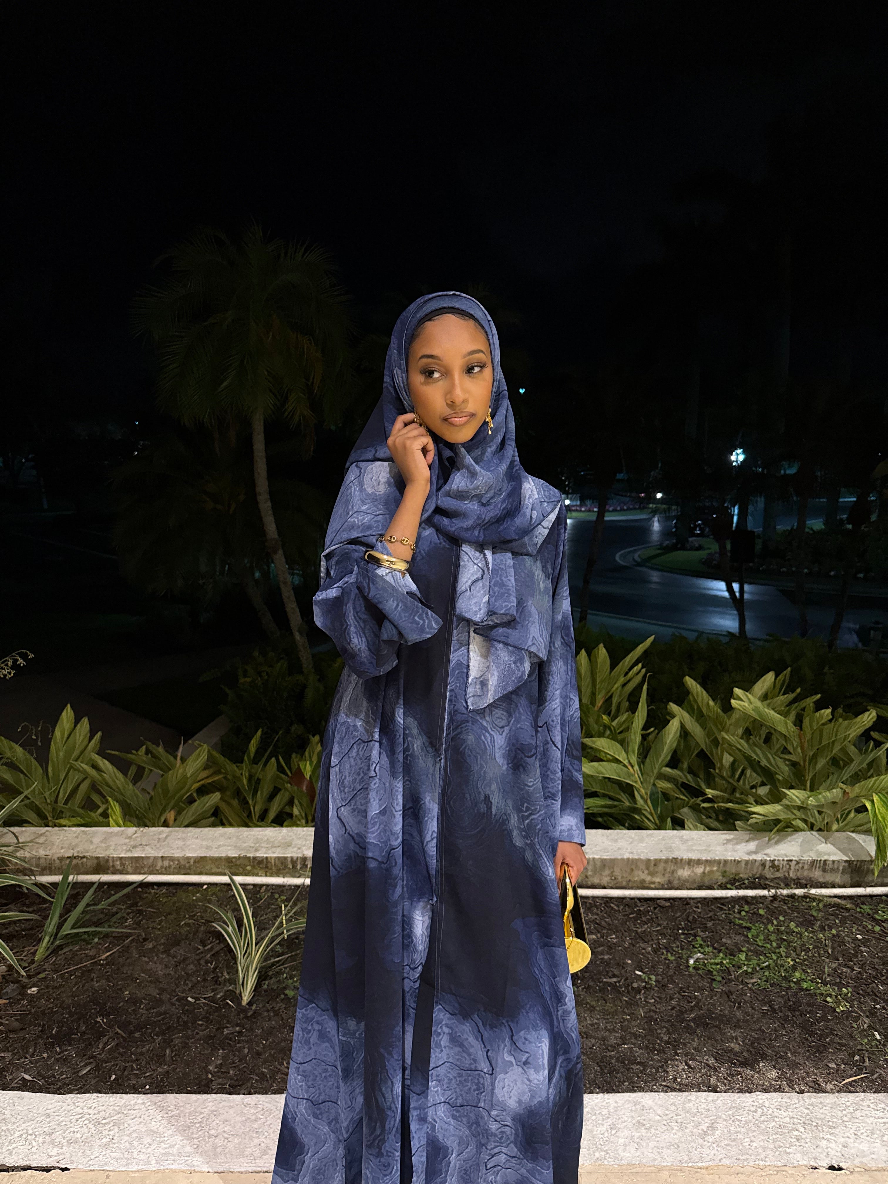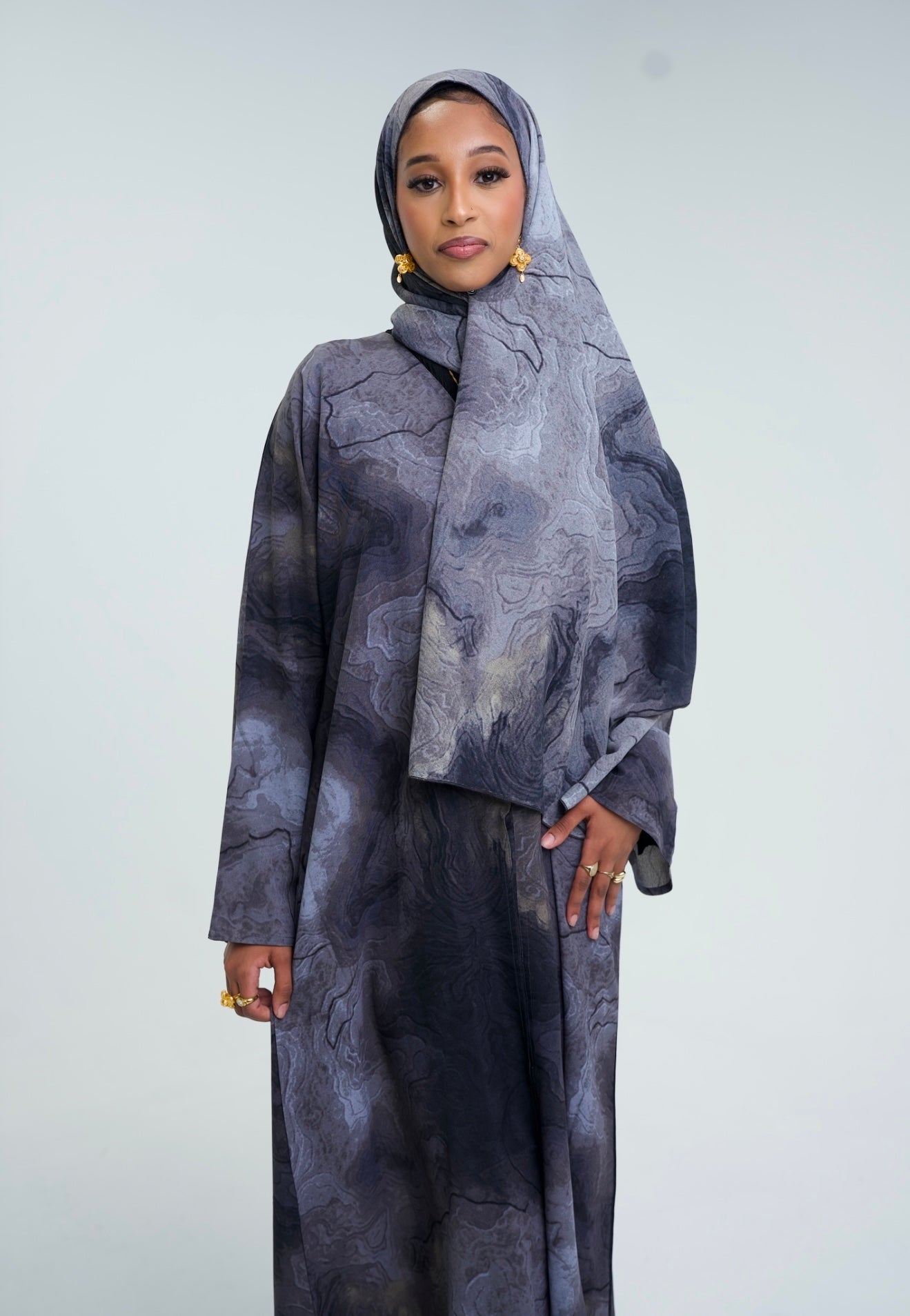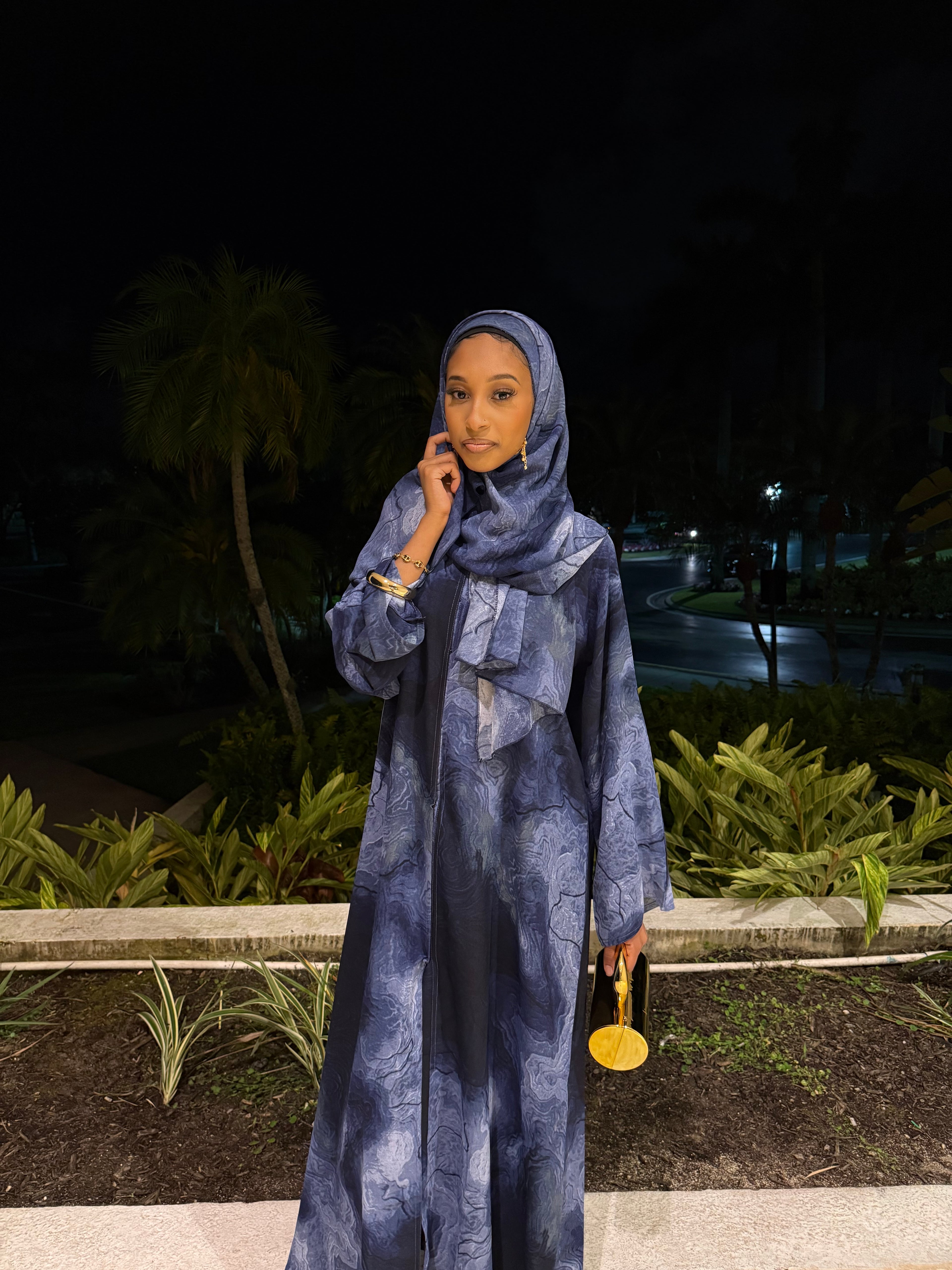 Experience the elegance of our Watercolor Printed Abaya Set, featuring a