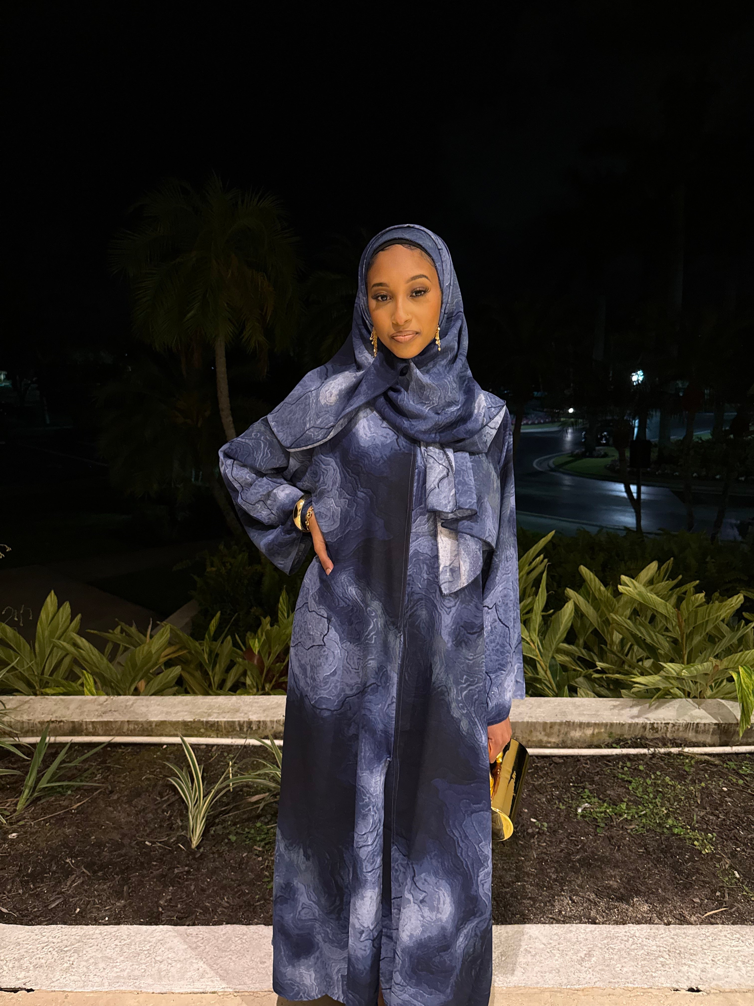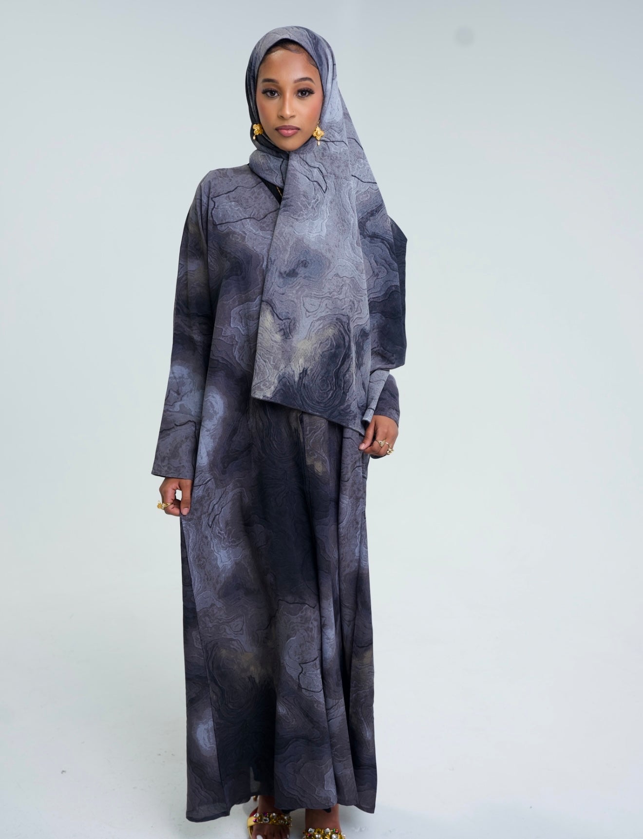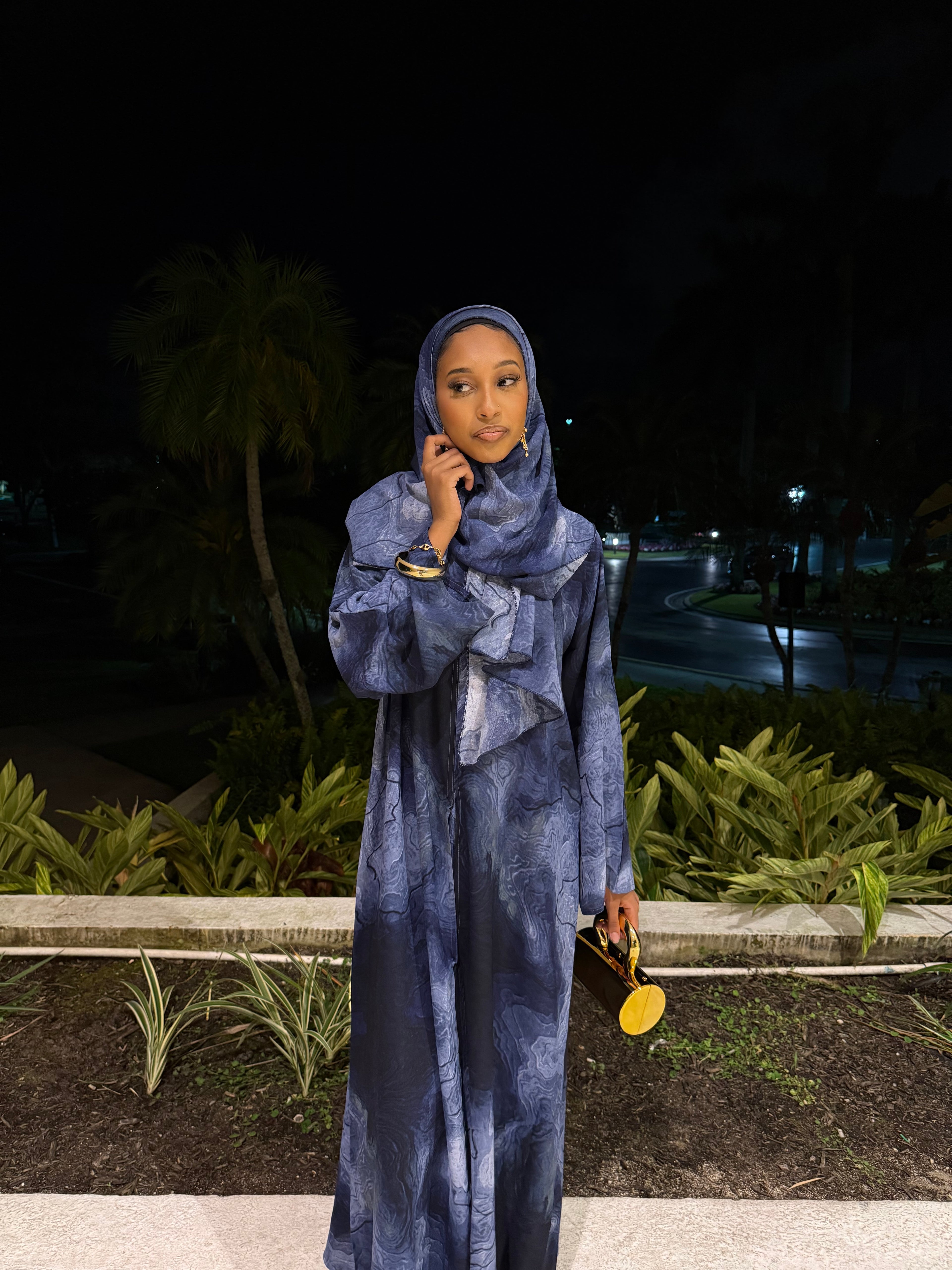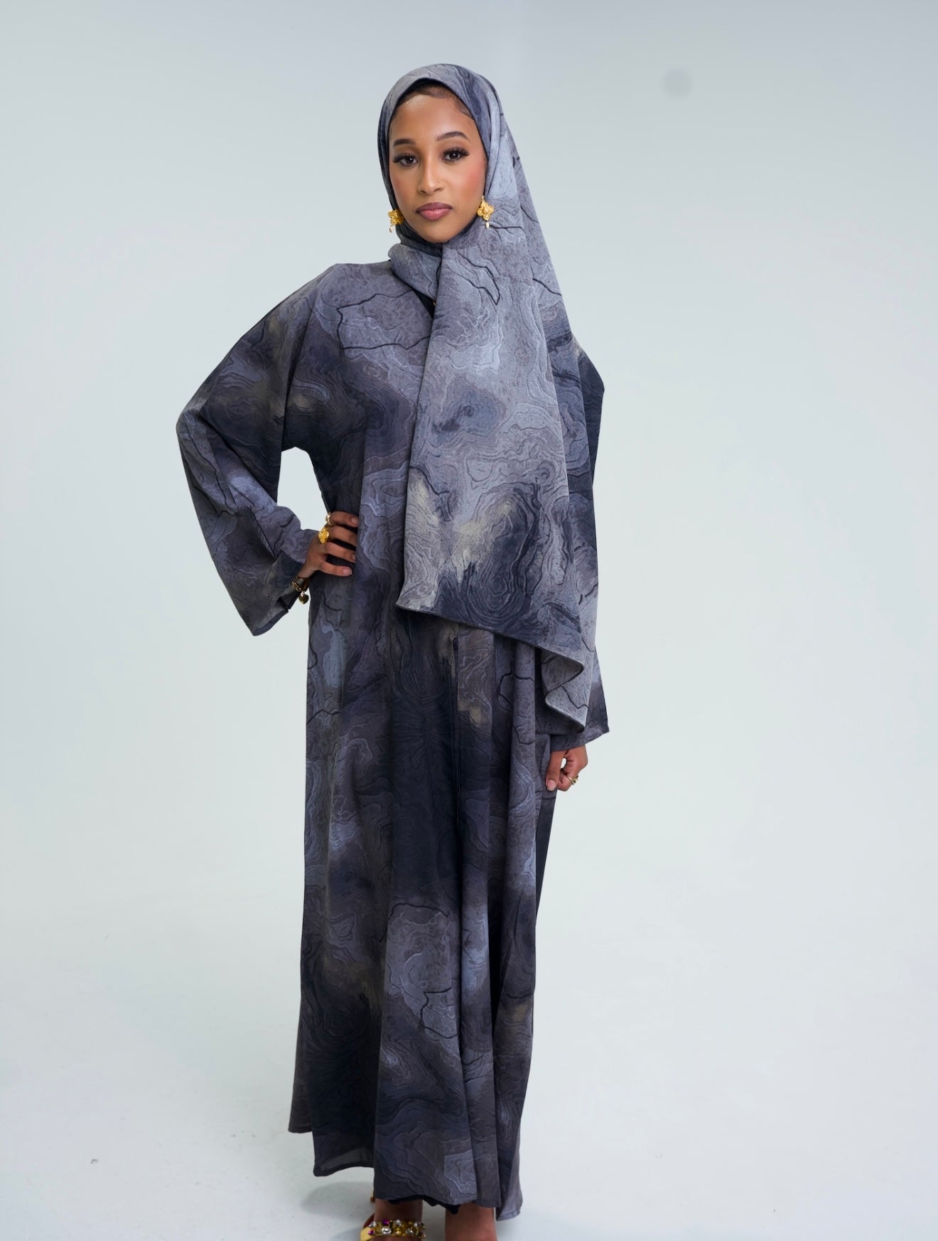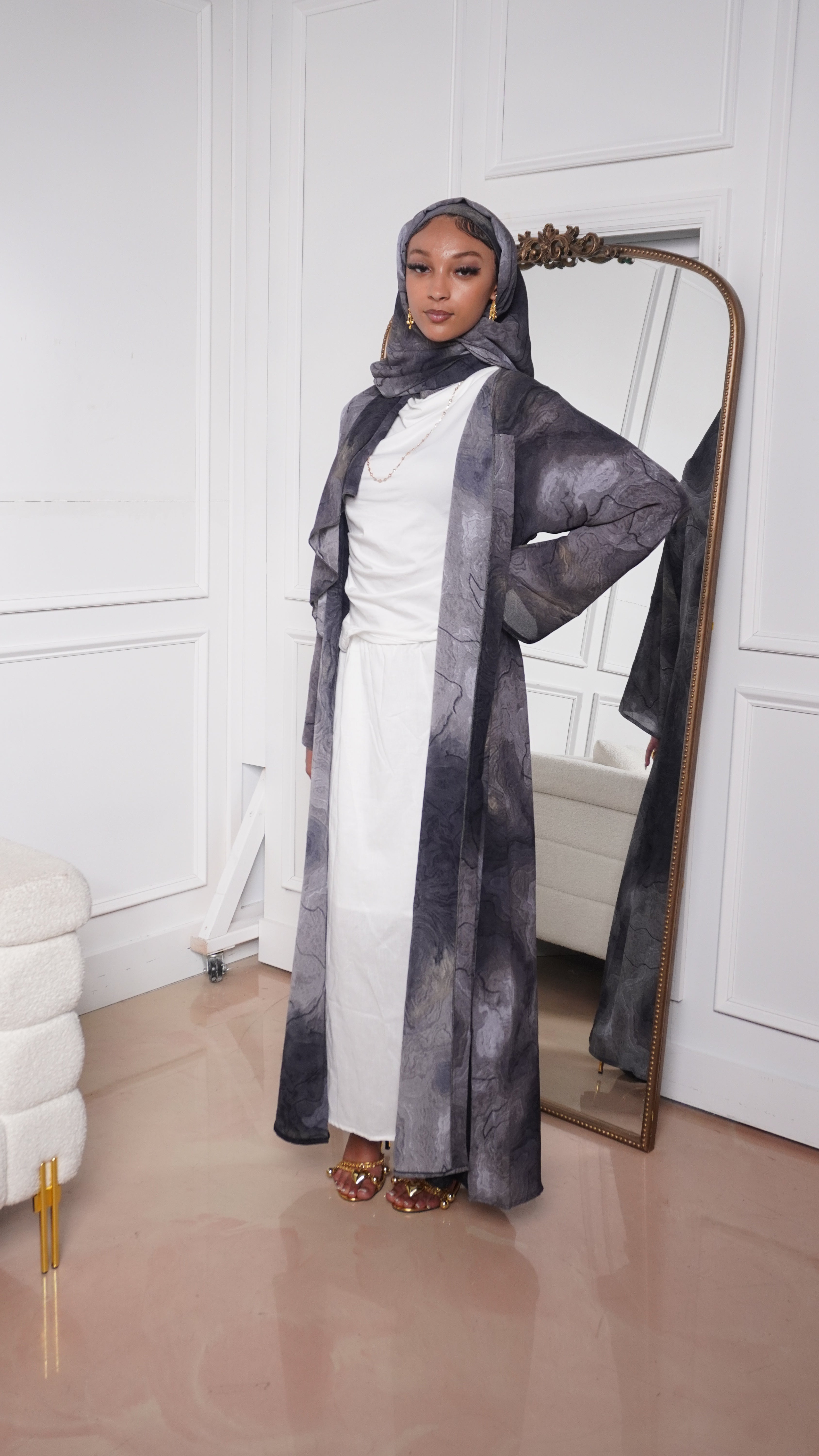 Experience the elegance of our Watercolor Printed Abaya Set, featuring a